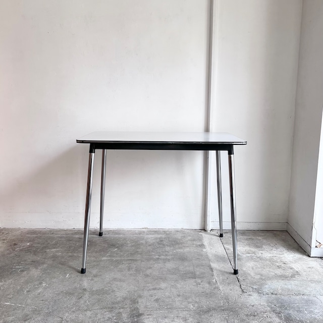 クロームのパイプフレームがモダンな フォーマイカ天板のコンパクトなキッチンテーブル。 1960年代頃からベルギーTAVO社をはじめとして、 フランスやドイツ、オランダ等でも同様のデザインが数多く生産、販売されました。 アパルトマン等の小さなキッチン、での使用を想定しているため 圧迫感を感じさせないミニマルな佇まい。 先細りの華奢な脚先、コンパクトなサイズ感で圧迫感がなく 構造もシンプルでしっかりとしています。 天板表面は水も弾く丈夫なメラミン素材。 幅広いインテリアに取り入れやすいベーシックなファブリック柄です。 ダイニングテーブルとしてはもちろん、デスクや作業台として 幅広い用途におすすめです。 ※表示価格はテーブルのみのお値段です。 今回サイズ違いで3台メンテナンスより上がってきています。 よろしければご覧になってください。 Condition / 1960-70年代ごろのヴィンテージ品になります。 天板には経年使用による線キズや擦れ、部分的な打痕、補修跡等ございます。 メタルフレームには経年のキズや部分的な錆等ございます。 詳細は画像をご確認ください。 商品の撮影環境の影響やご覧頂くモニター環境などで、画面の色が実際の色と異なっている場合がございます。詳細なコンディションはお気軽にお問い合わせください。 Country / オランダ Size(㎜) / W:905 D:605 H:745 Detail / フォーマイカ天板(メラミン素材) クロームパイプフレーム 脚部取り外し可能 Delivery / 別途送料が掛かります。 東京より、家財おまかせ便 Cランクで発送致します。 (脚部はそのままの状態でのお届けとなります。取り外して発送ご希望の方は、配送料が変わるためご購入前にお気軽にご相談ください。) Attention / サイズの大きな商品の場合、必ずご購入前に搬入経路をご確認下さい。 【 ご購入前に必ずお読みください 】 お支払い後の変更やキャンセルは承れませんので、 下記ご希望の方はご購入前にメール・お電話にてご相談下さい。 自社配送をご希望の方 / 東京都内近郊に限り、自社配送を承っております。 お届け先までの配送料、お支払い方法等ご案内いたしますので、メール・お電話にてお問い合わせください。 店頭ピックアップ(送料なし)をご希望の方 / 送料が設定されるシステムのため、別のお支払い方法をご案内いたします。 お気軽にご相談ください。 他商品と合わせてご購入・複数ご購入希望の方 / 商品一点ごとに送料がかかるシステムとなっています。 宅急便の場合送料が変わりますので、メールにて別途お見積もり、お支払い方法をご案内いたします。 家財おまかせ便の場合、商品ごとに送料がかかりますので変更はございません。 その他不明な点などございましたら お気軽にお問い合わせください。 お問合わせ先 : [email protected] まで 営業時間 12:00-19:00 (金曜定休 / 木曜予約制) 木曜は予約制となっております。 前日19:00までに電話またはメールにてご予約ください。