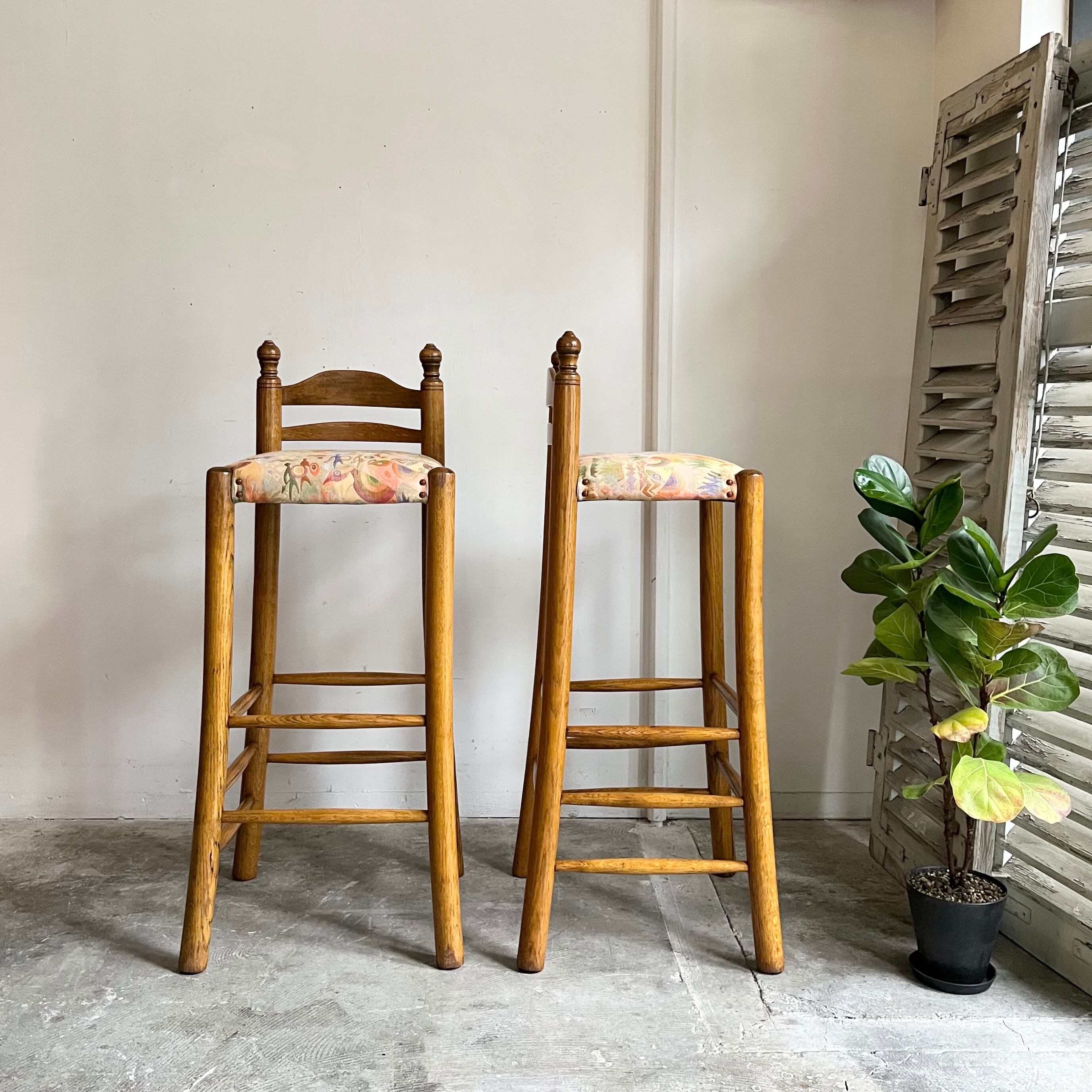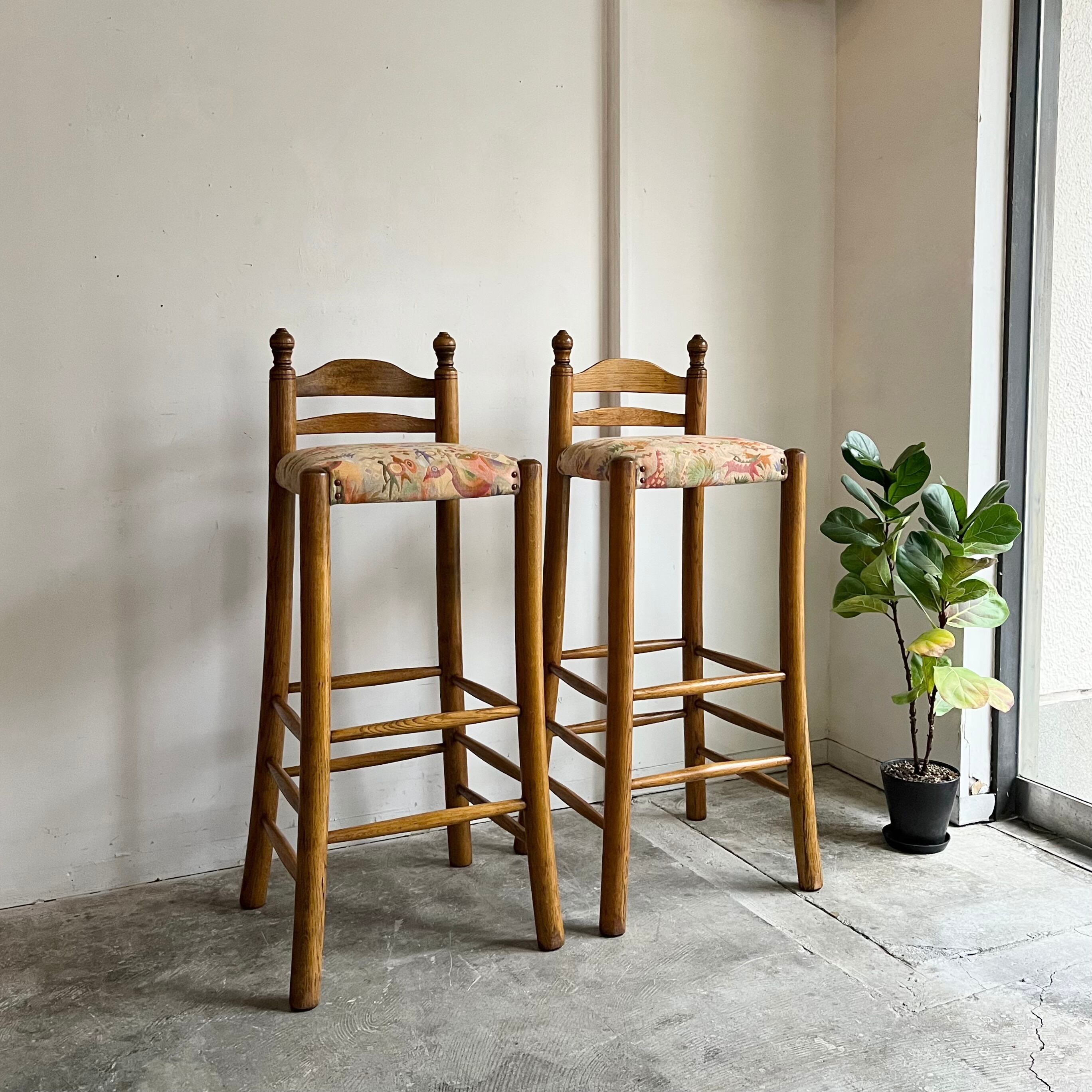 Oak Frame × Jacquard Seat Bar Stool 1960's オランダ