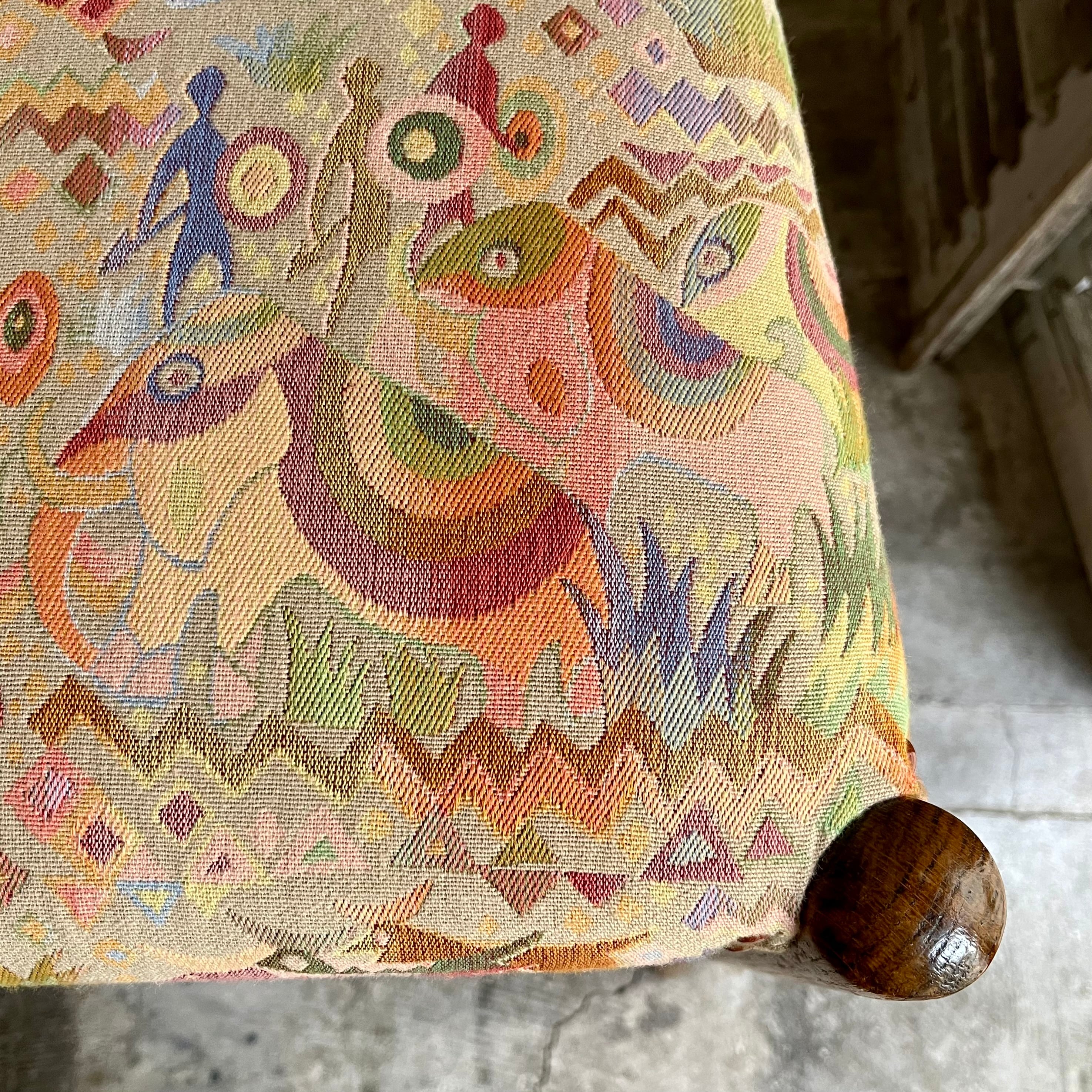 座面はヴィンテージのジャカード生地で張り替え済みです。