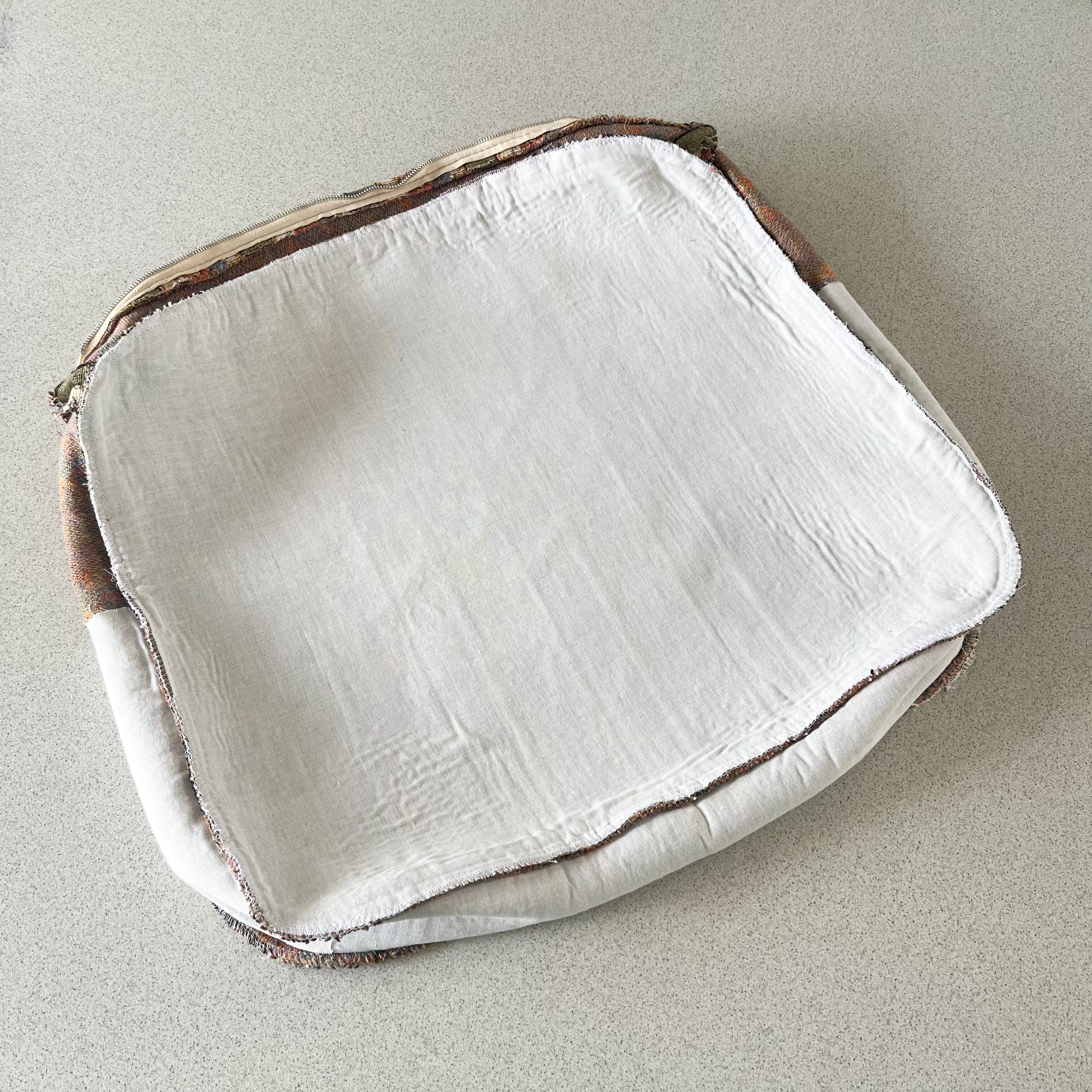 座面クッション表面には部分的なダメージも見受けられますが、ジャカード生地は肉厚で耐久性も高く、接着芯にて補強もしていますので末永くお使いいただけると思います。