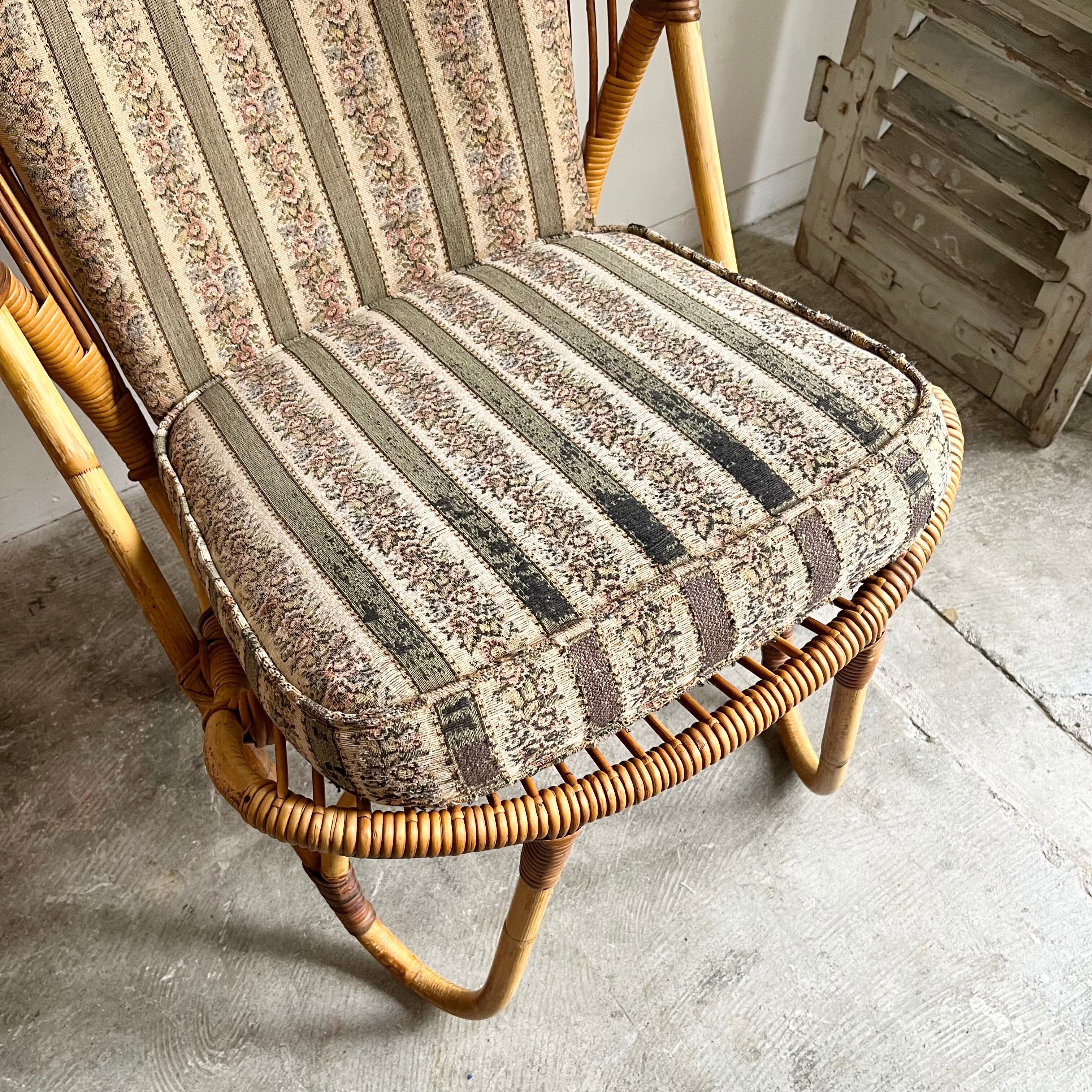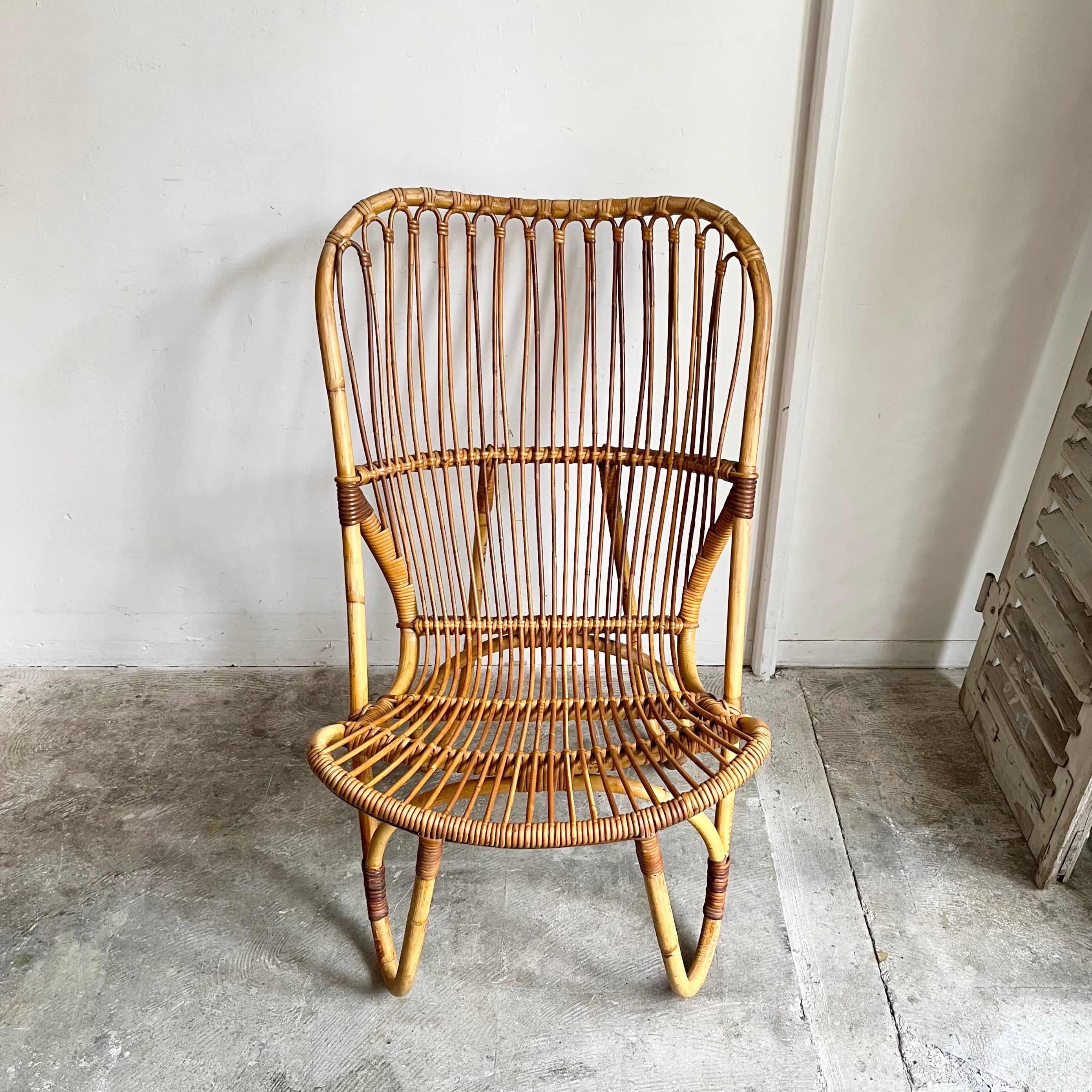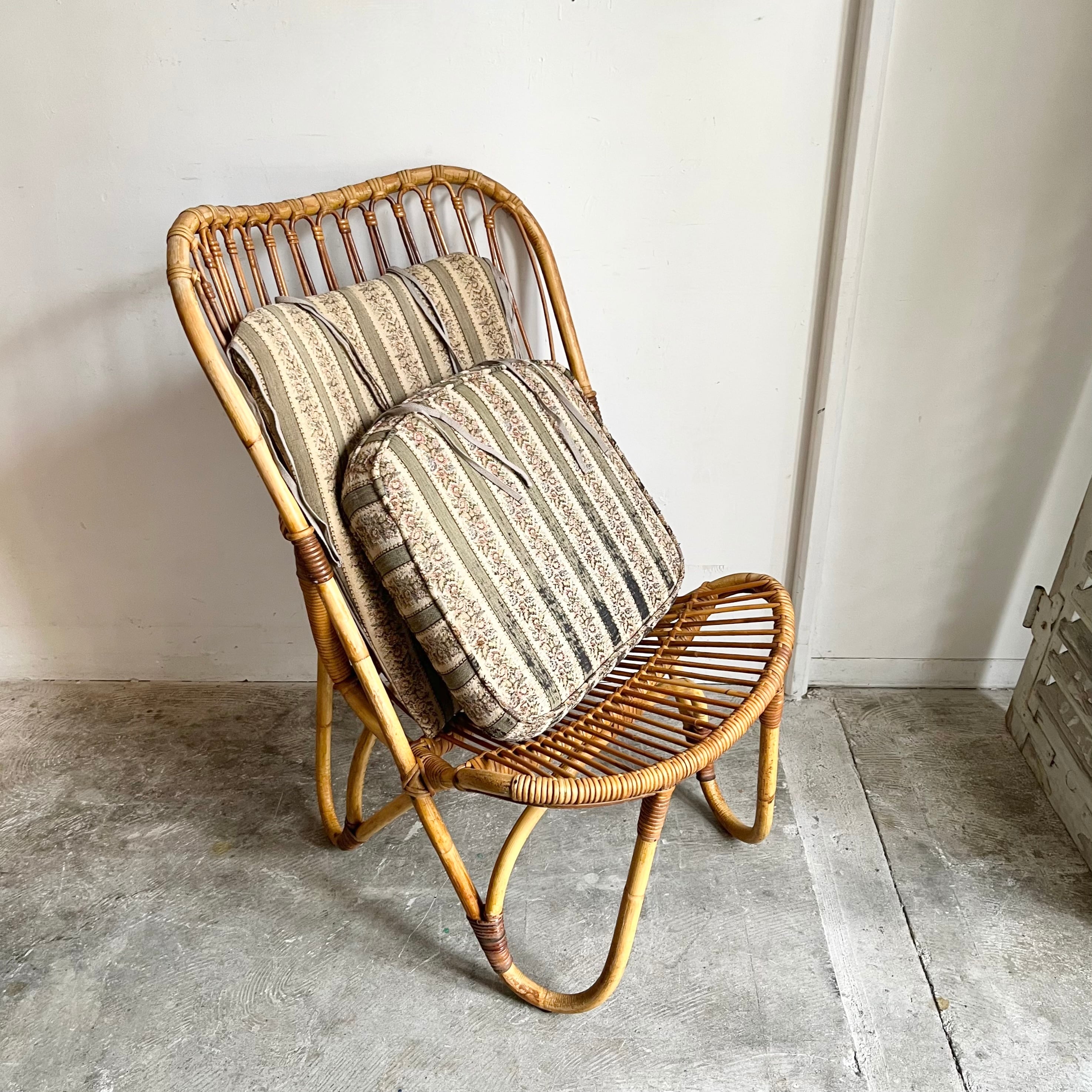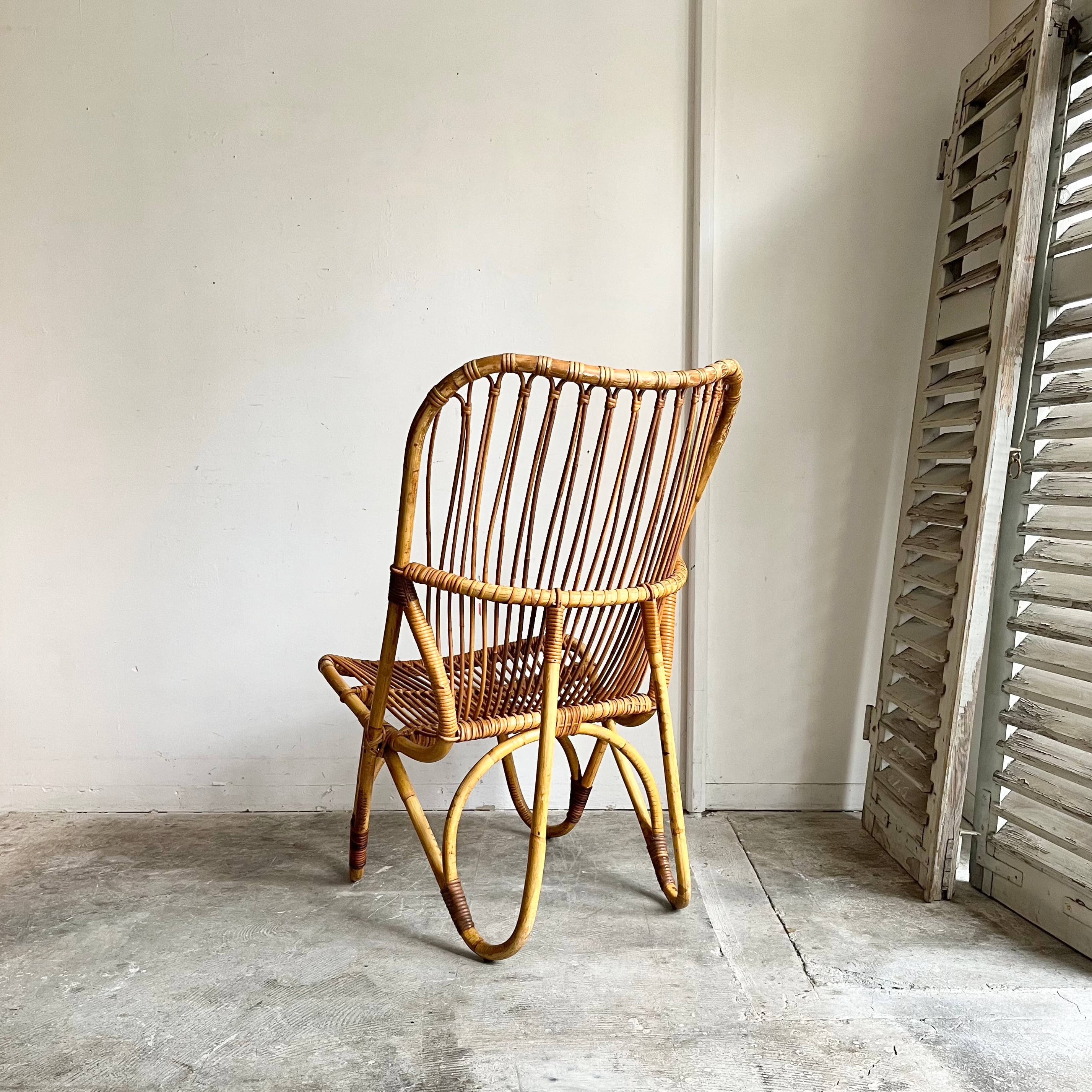 Vintage Rattan Hi-Back Lounge Chair with Cushion 1960's オランダ
