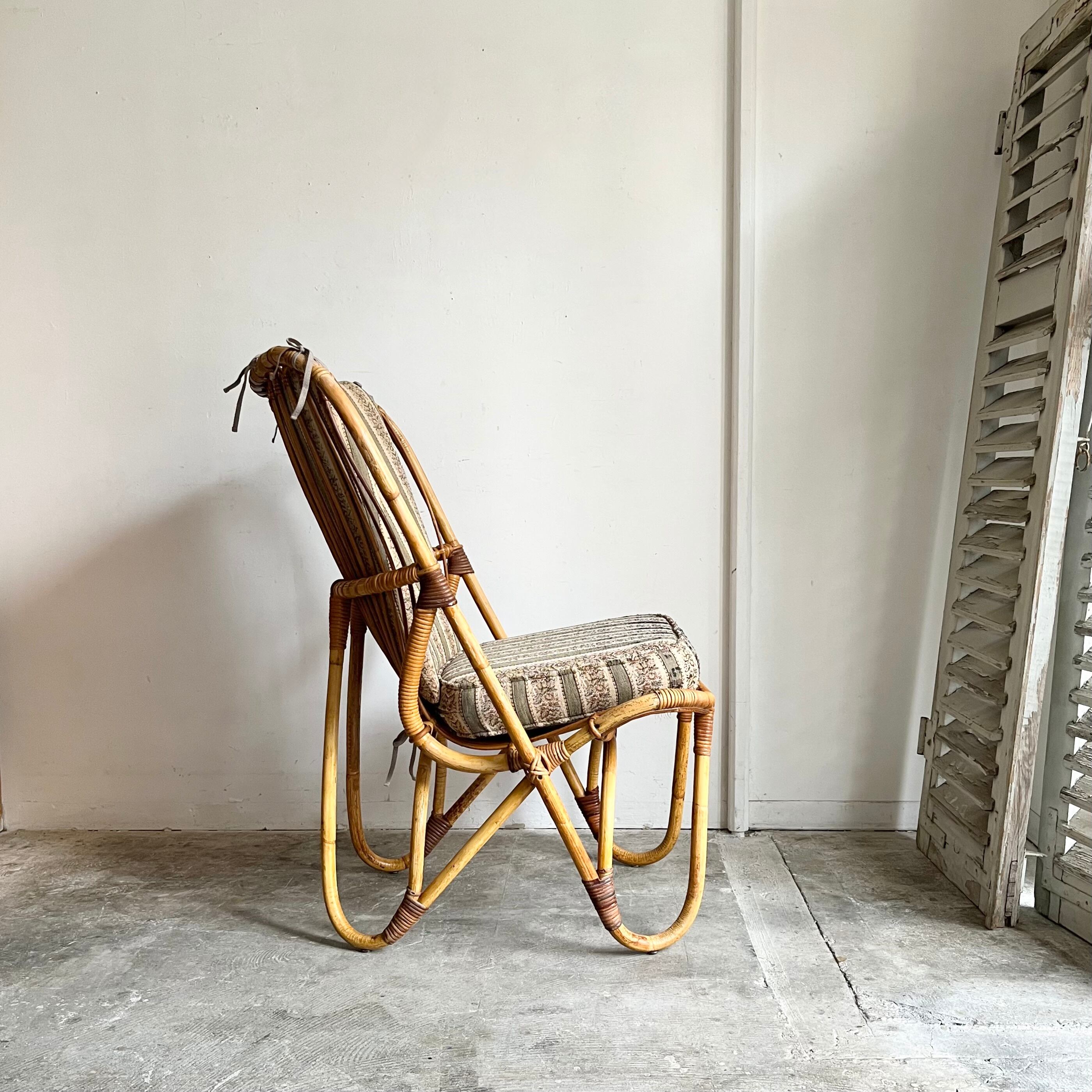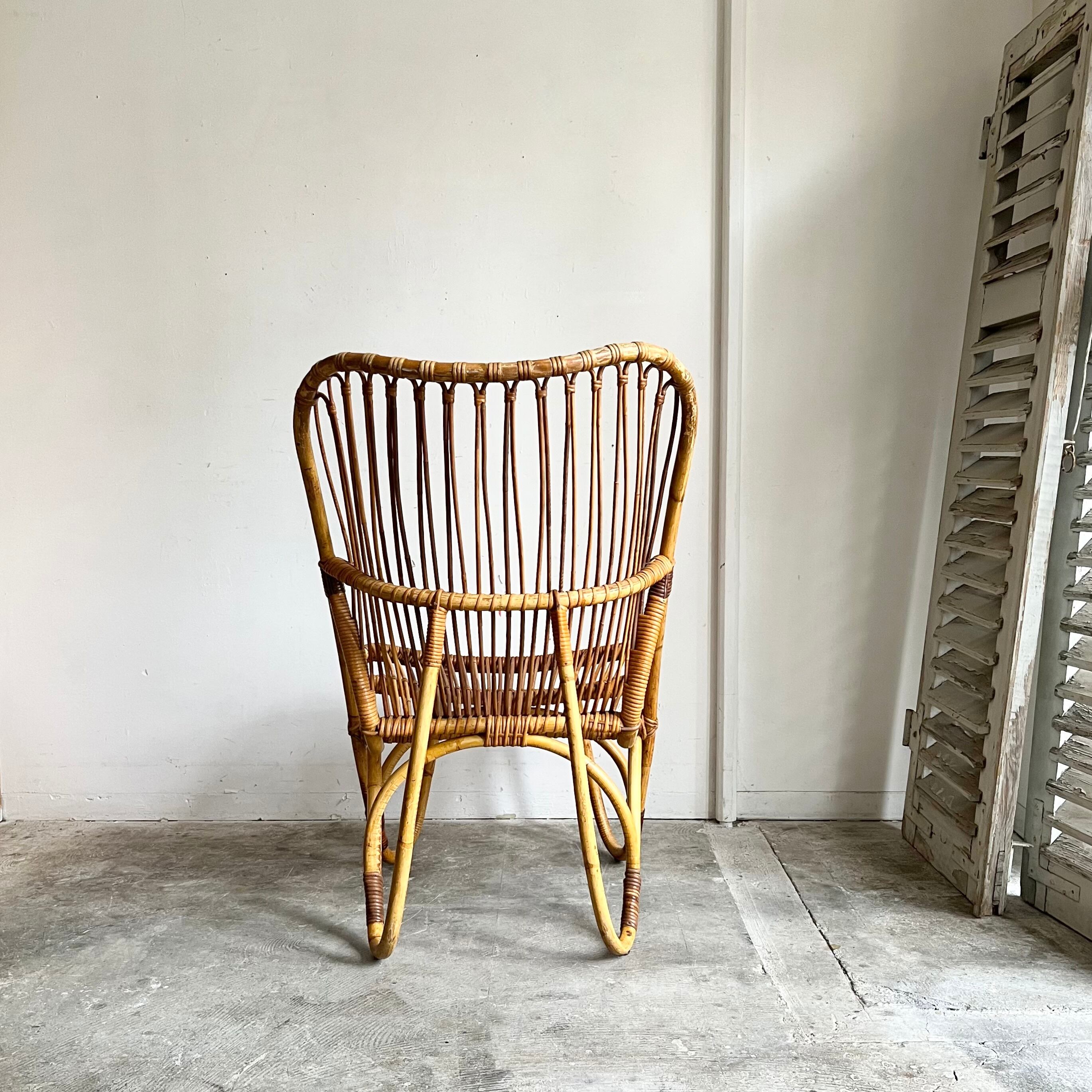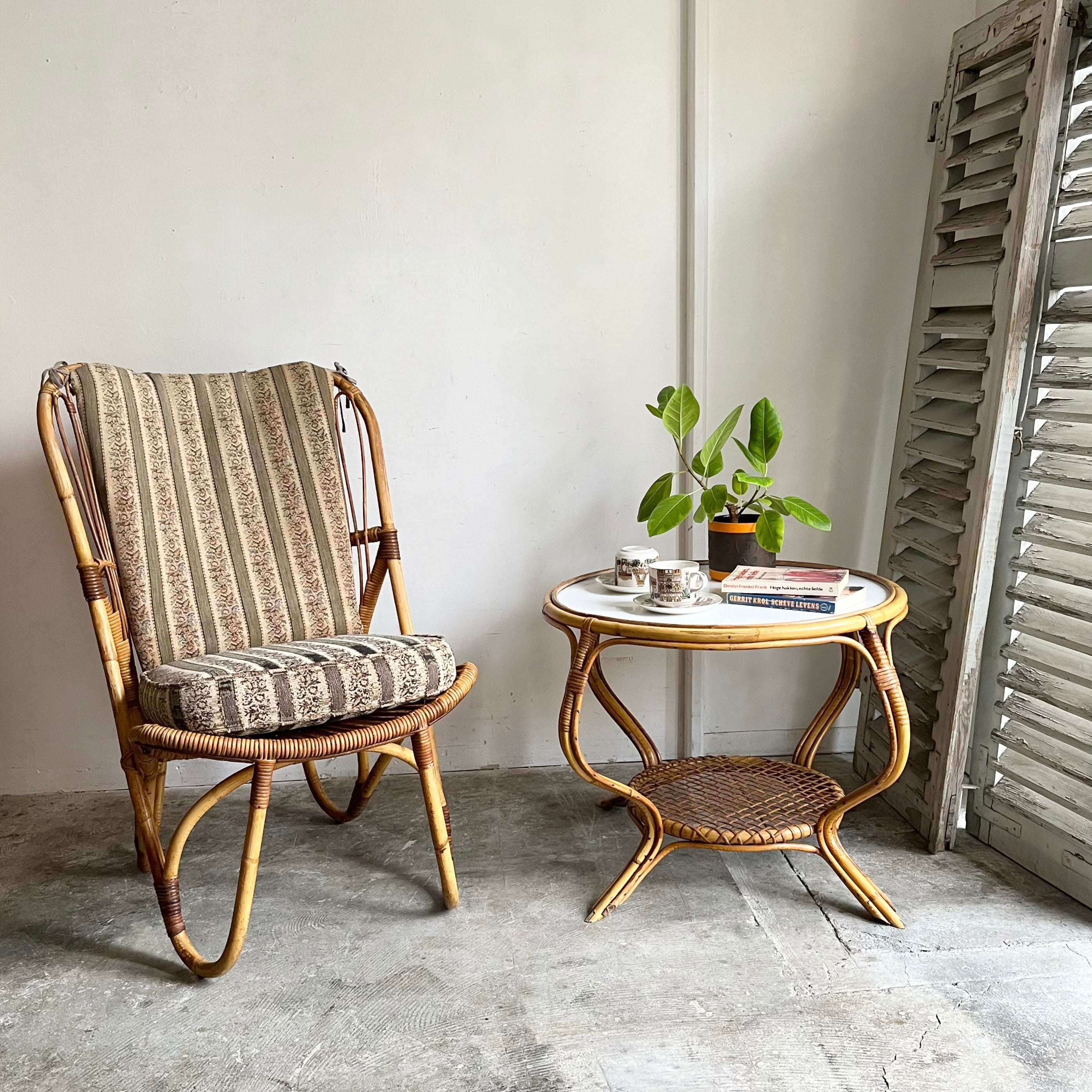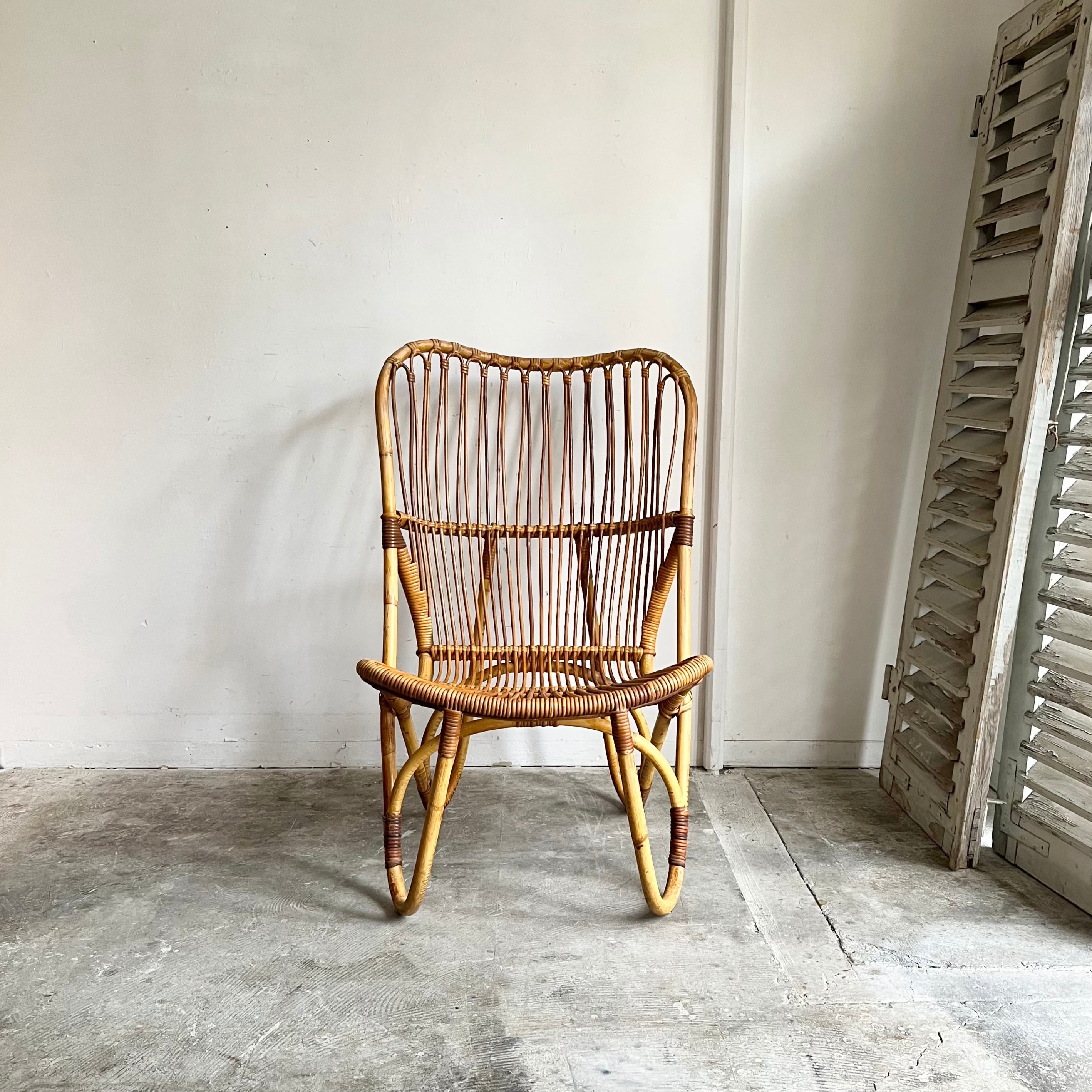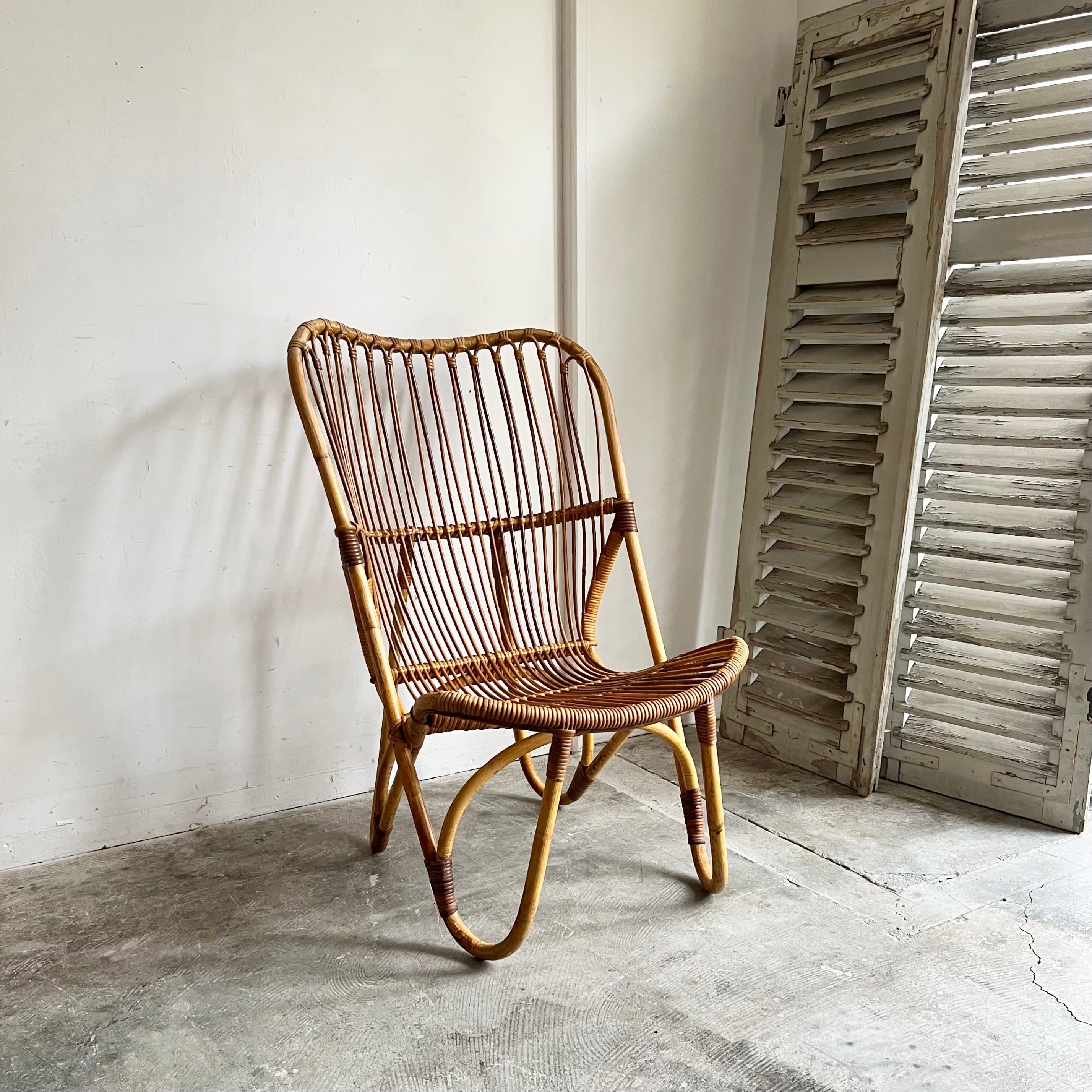 Vintage Rattan Hi-Back Lounge Chair with Cushion 1960's オランダ