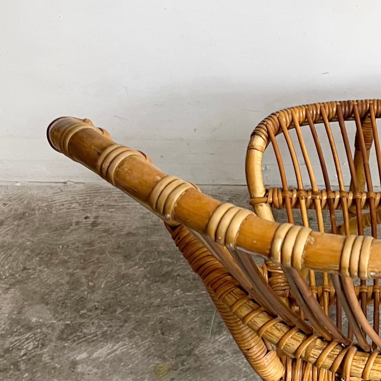 経年により綺麗な飴色に変化したラタンには破損もなく、極めて良好なコンディションです。