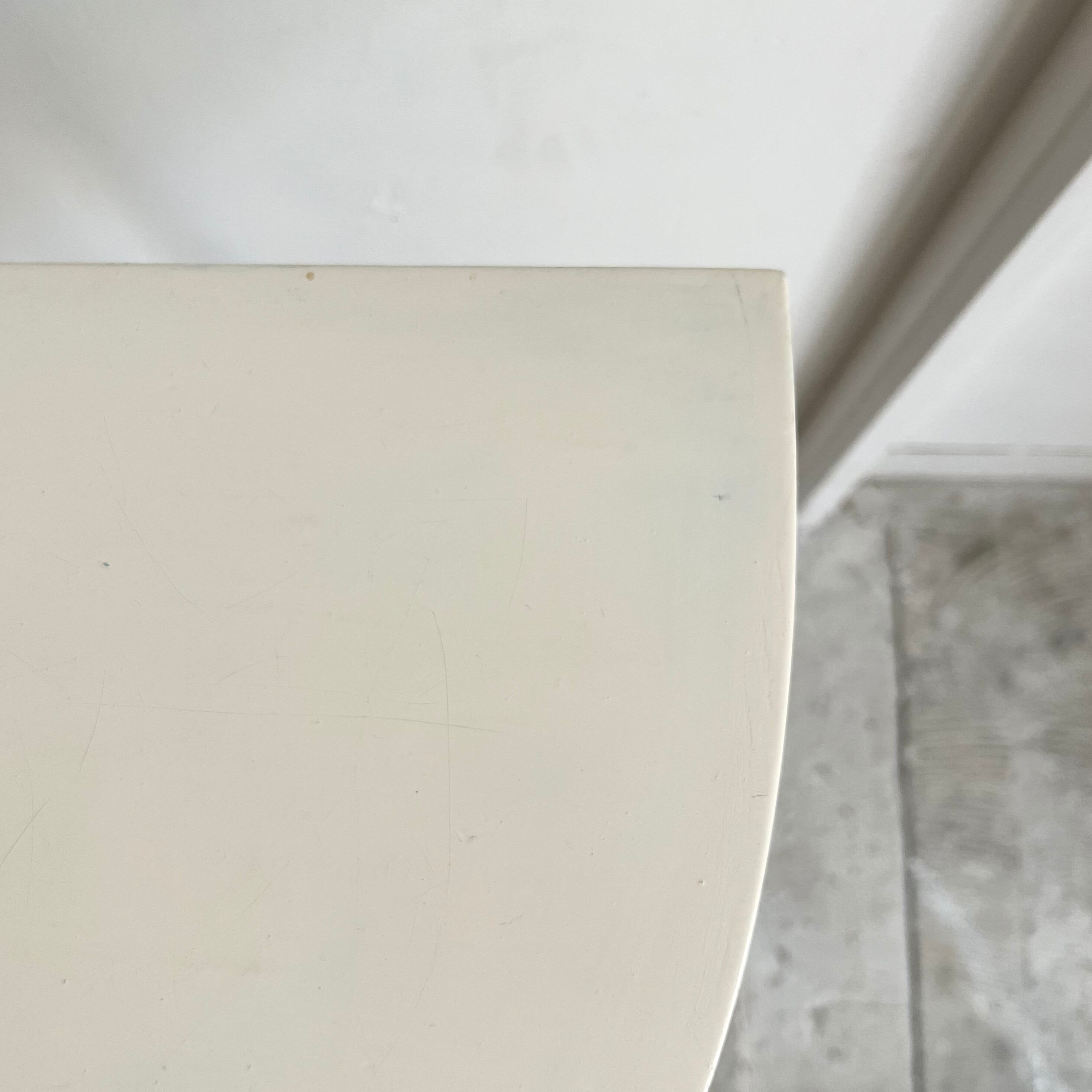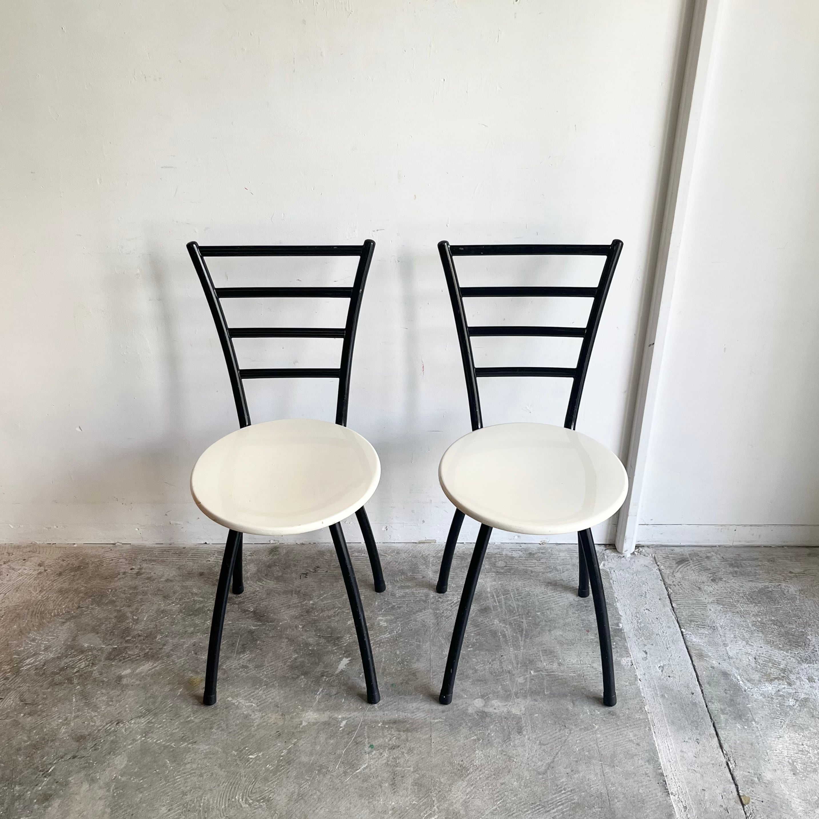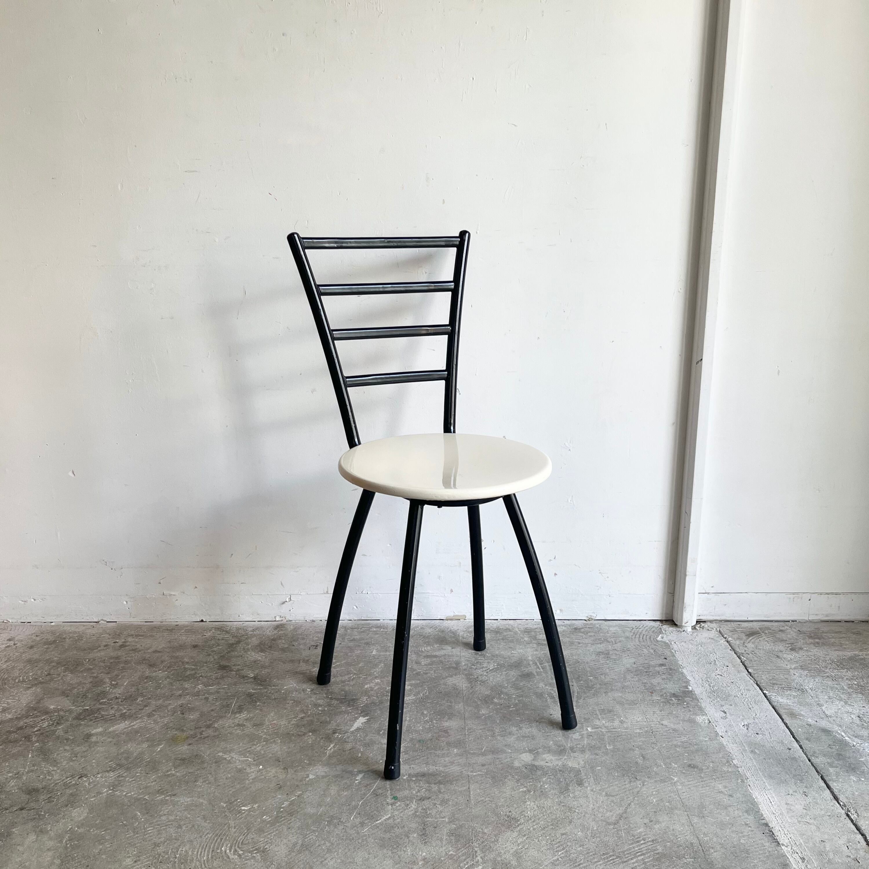 チェアの座面には木製のラウンドプレートを用い、ホワイト塗装で柔らかな光沢をまとわせています。