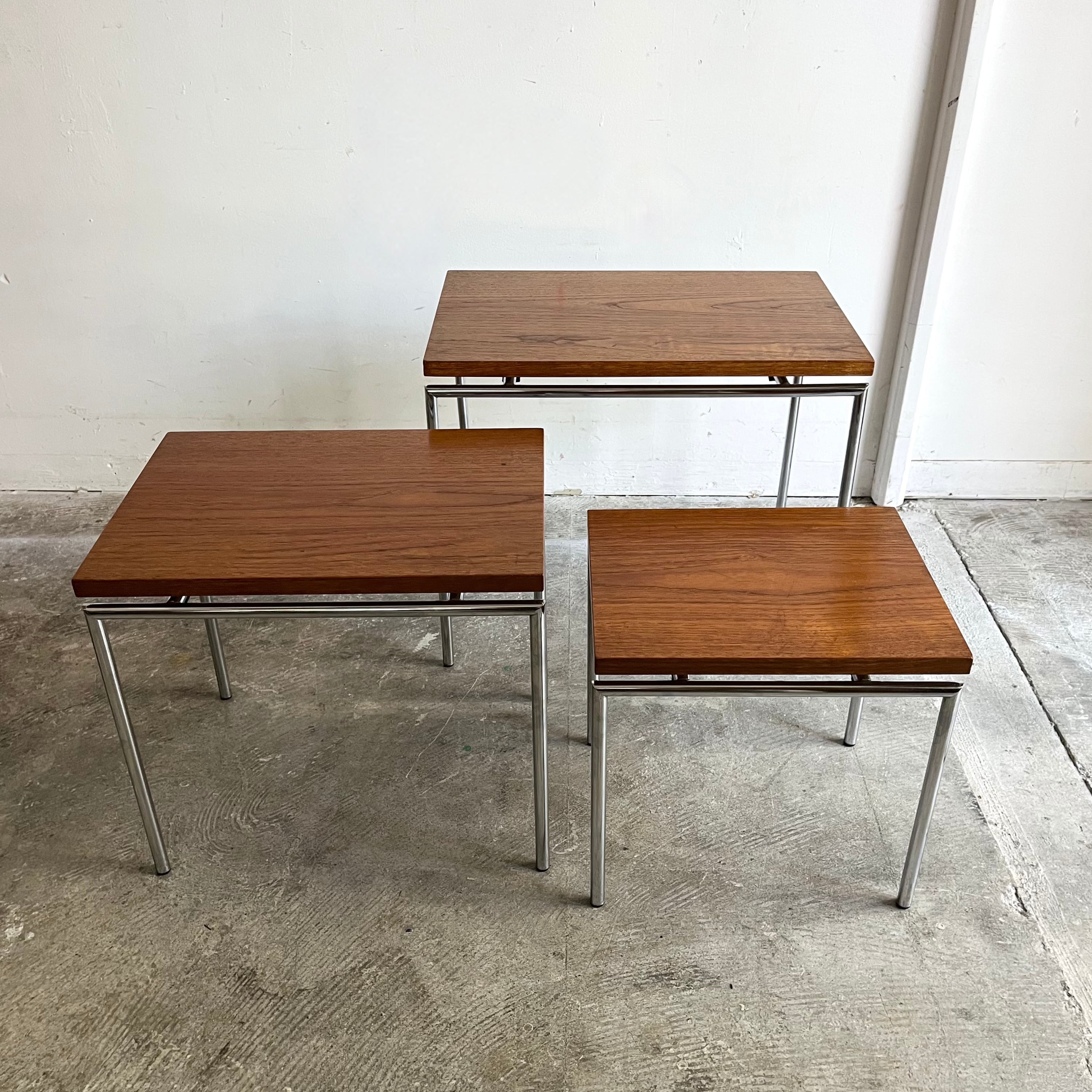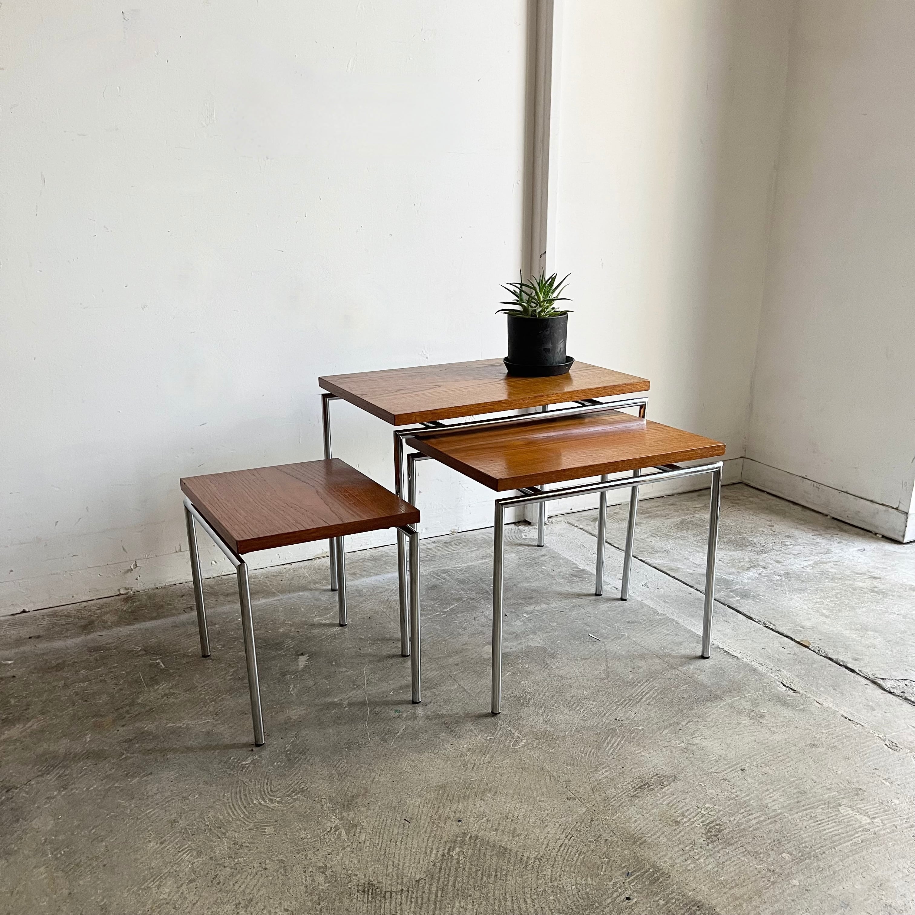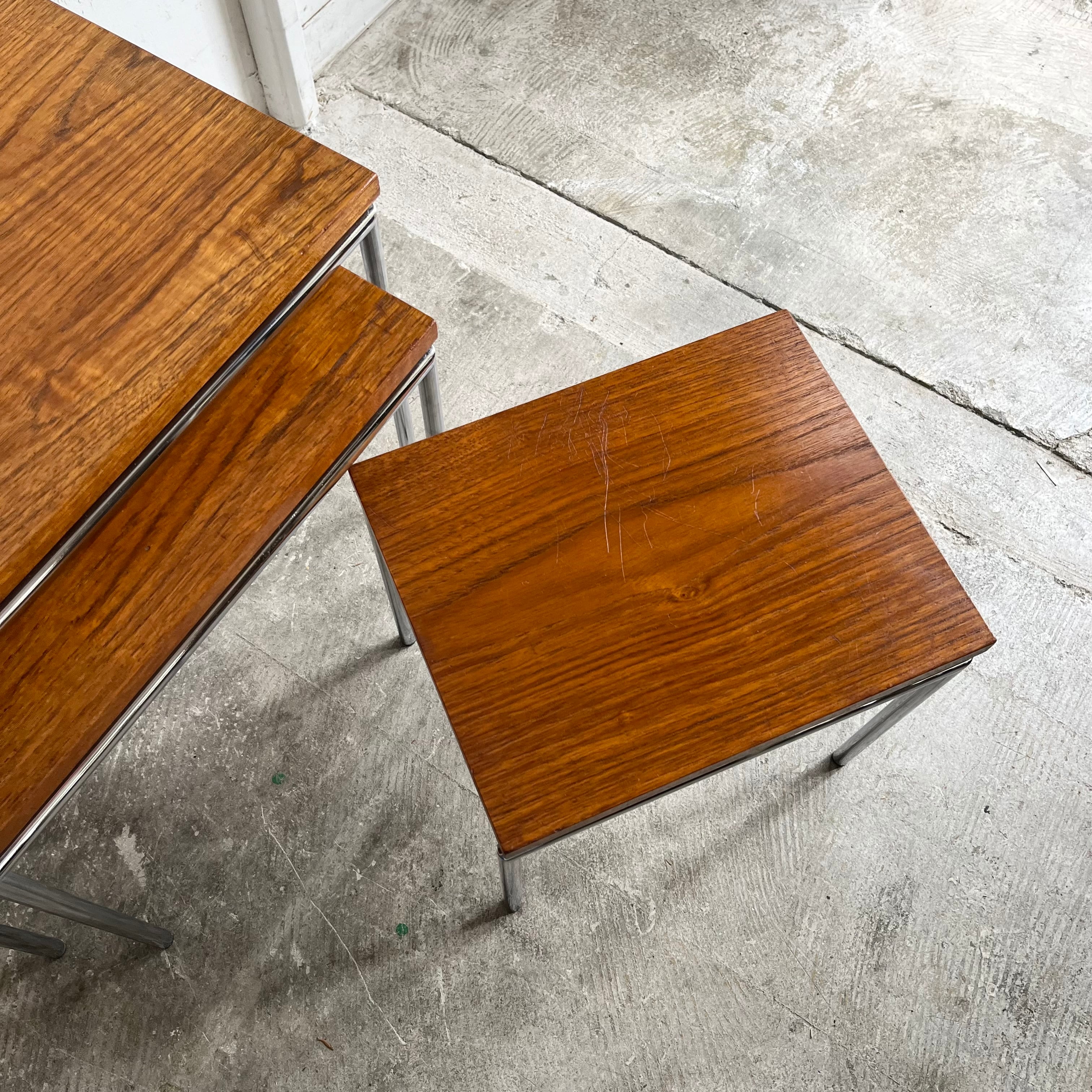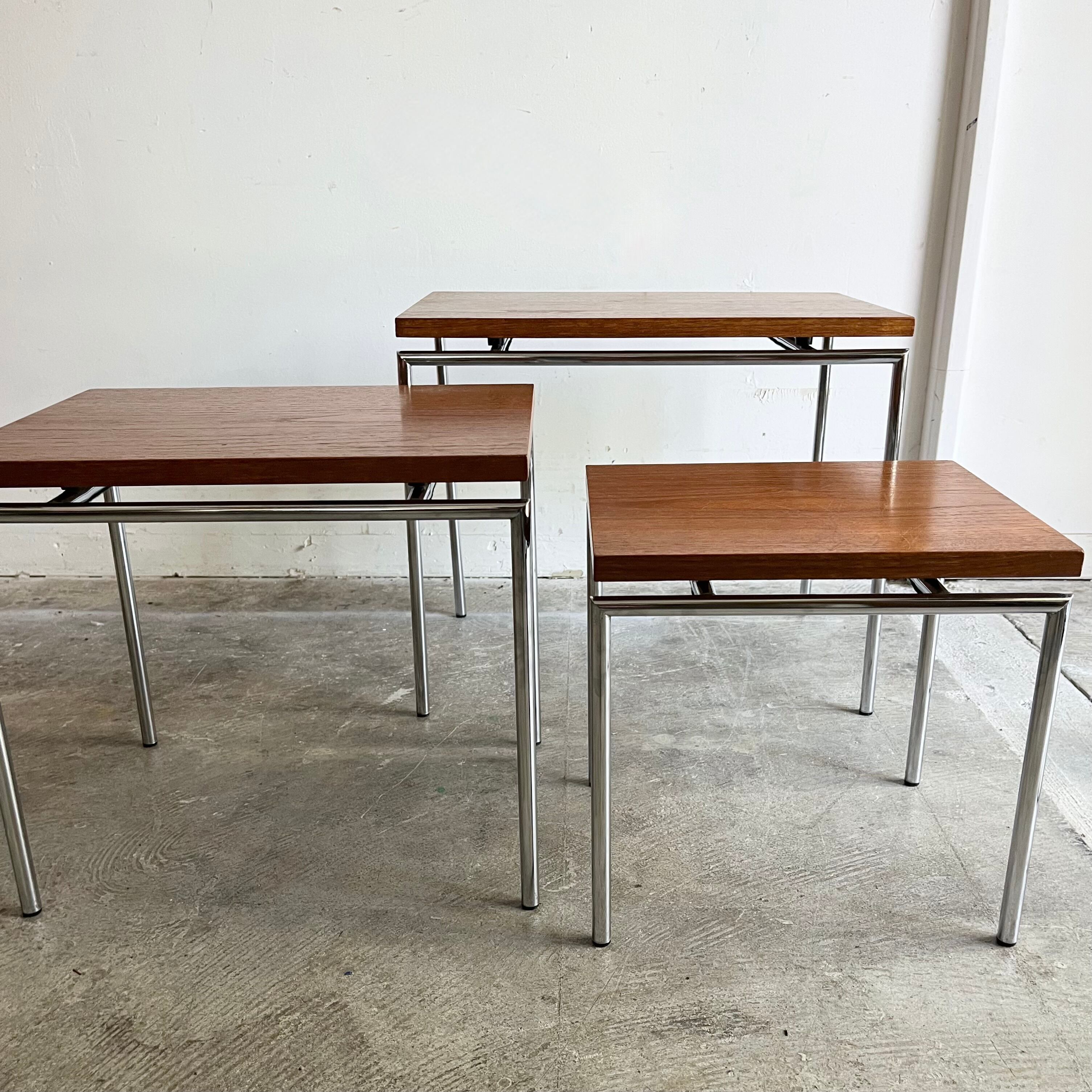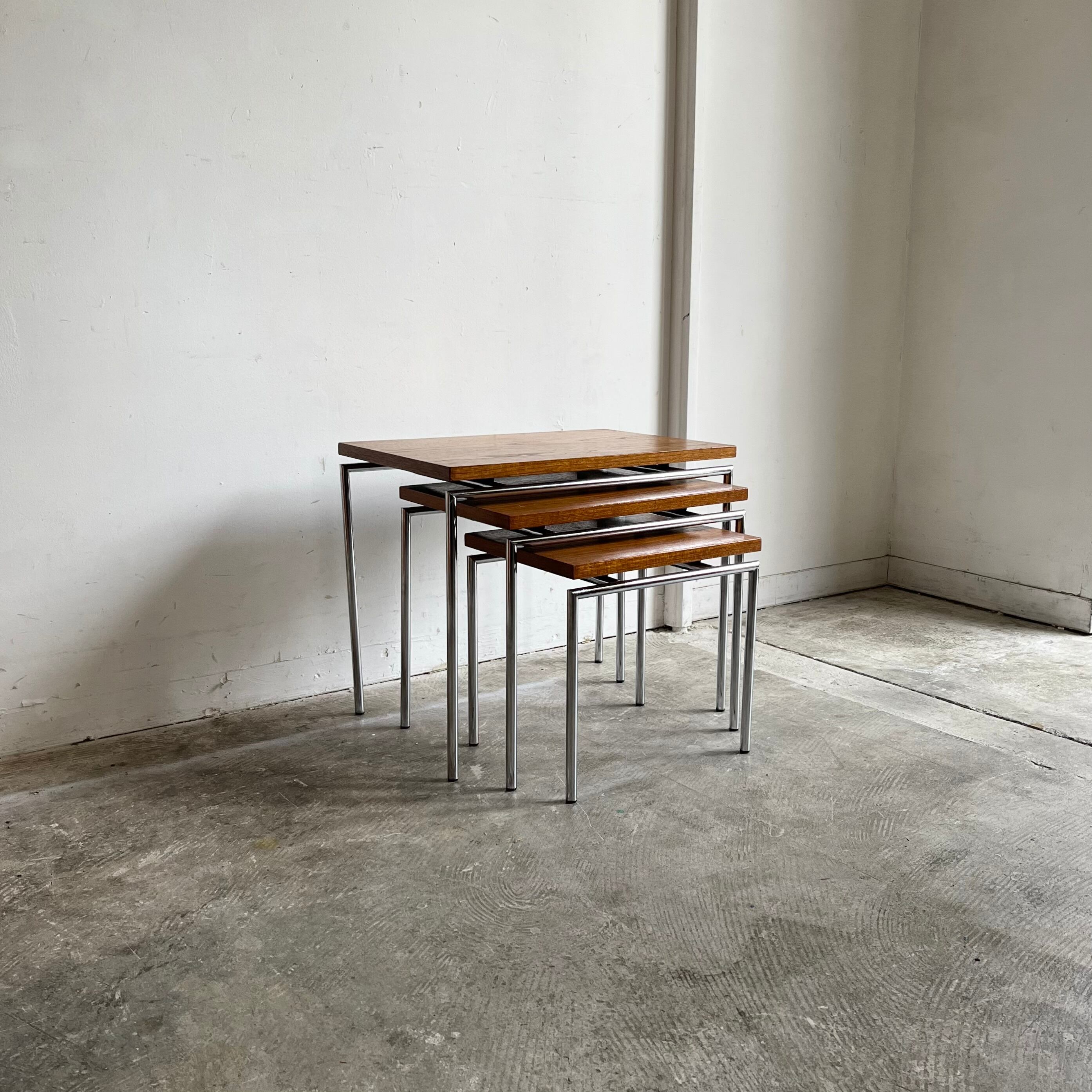 Dutch Vintage Teak & Chrome Nest Table (set of 3) 1960's オランダ