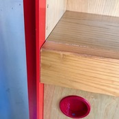 下段に棚板に付いている4枚付属する赤いメタルの仕切りは左右に移動が可能です。
