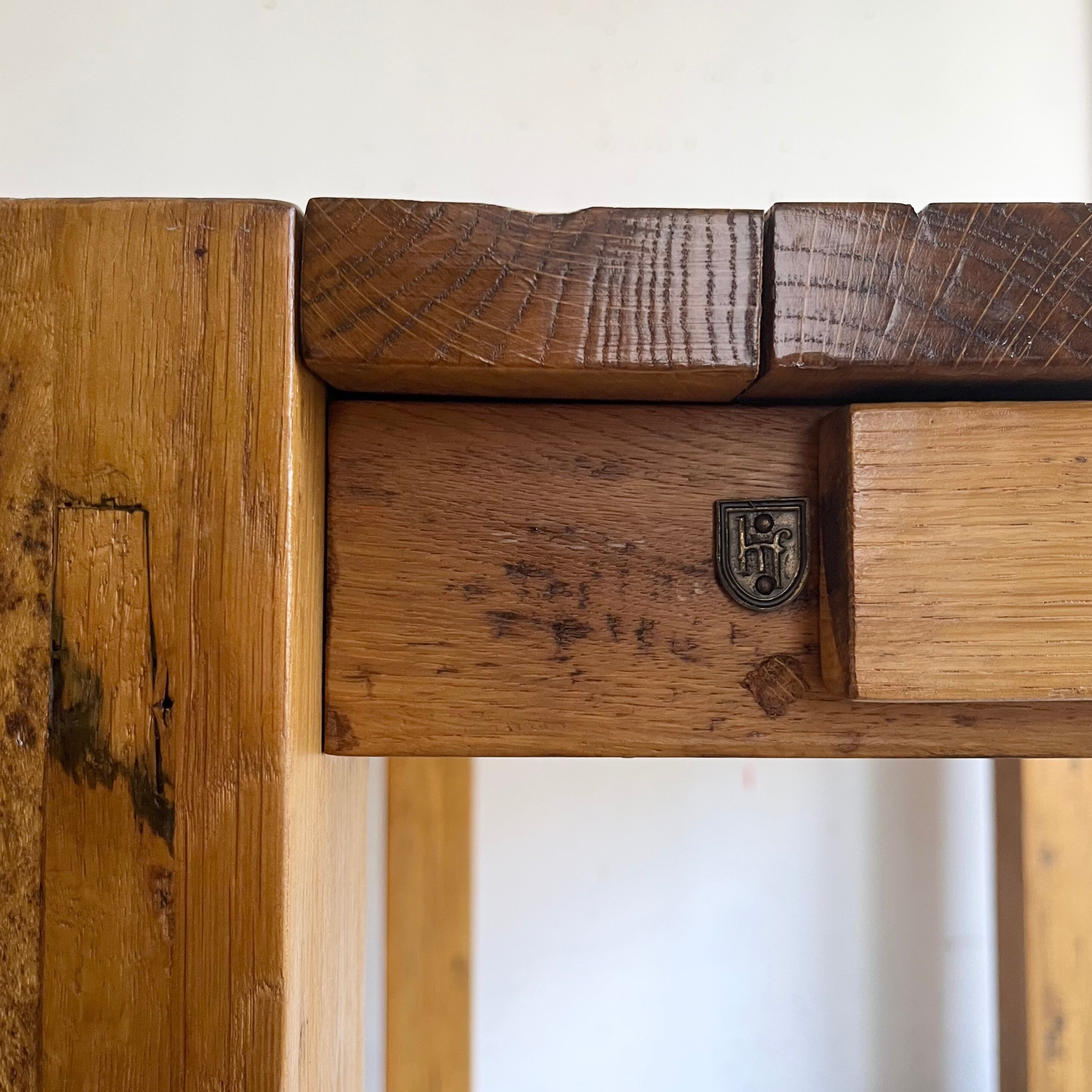 Solid Oak Wood Brutalist Dining Table 1980's オランダ