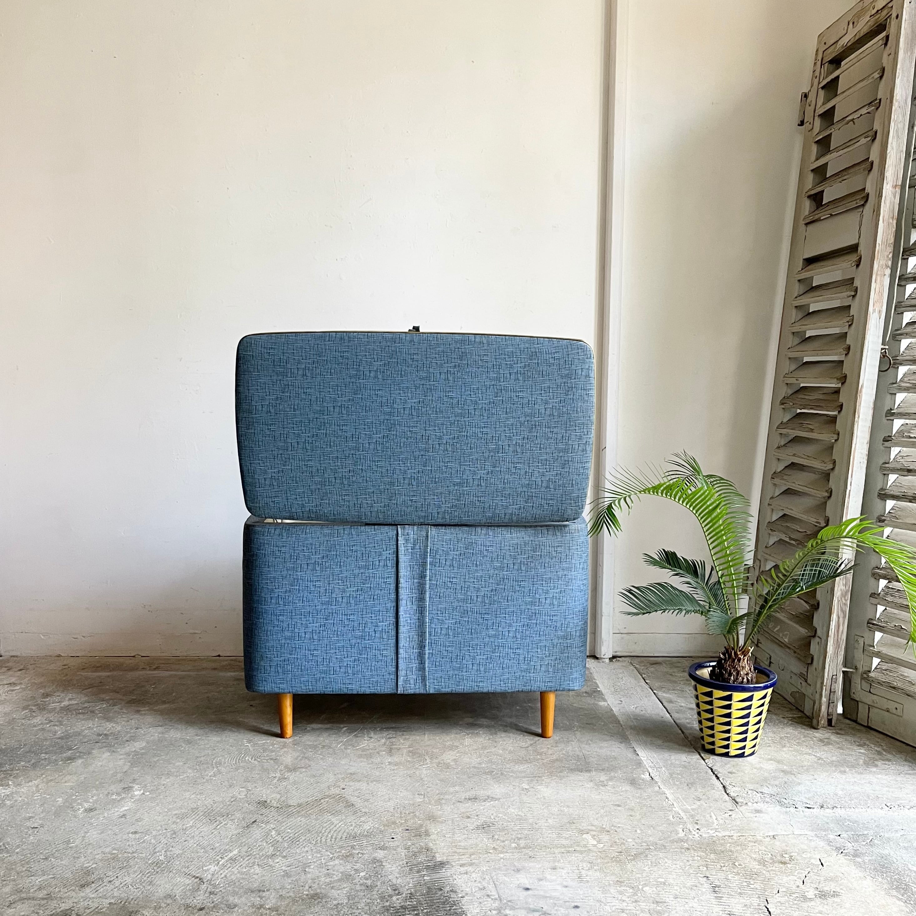ブルーのPVC生地は当時のキッチンチェアやスツールのシートにも多く用いられており、
