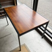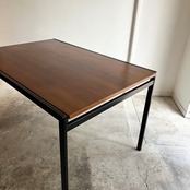 シンプルかつ洗練された直線的なデザインに、チーク材突板の温かみとメタルフレームの無骨さが調和した一台です。