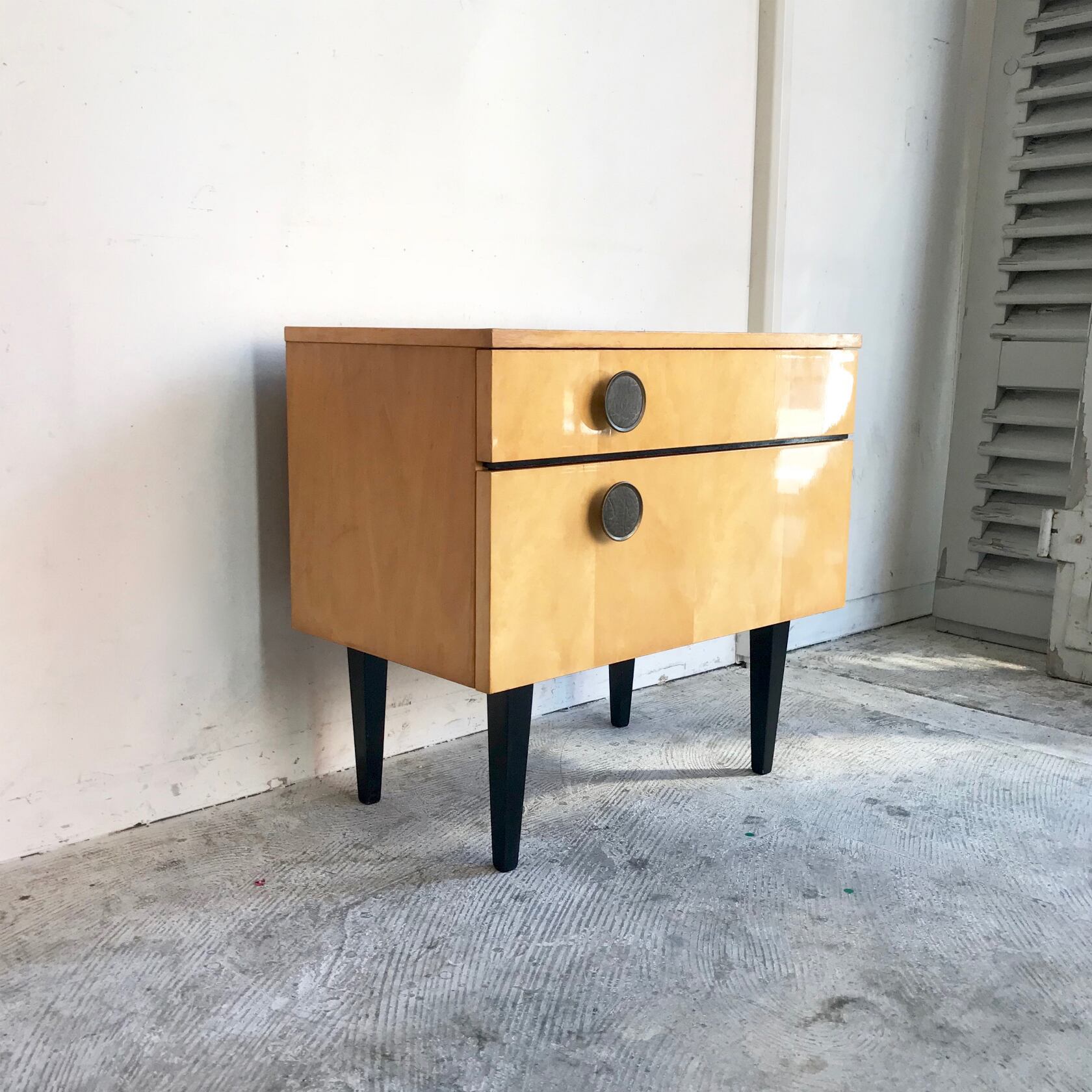 Detail / 引き出し×1、レザー使いメタル製ハンドル、黒ペイントの脚