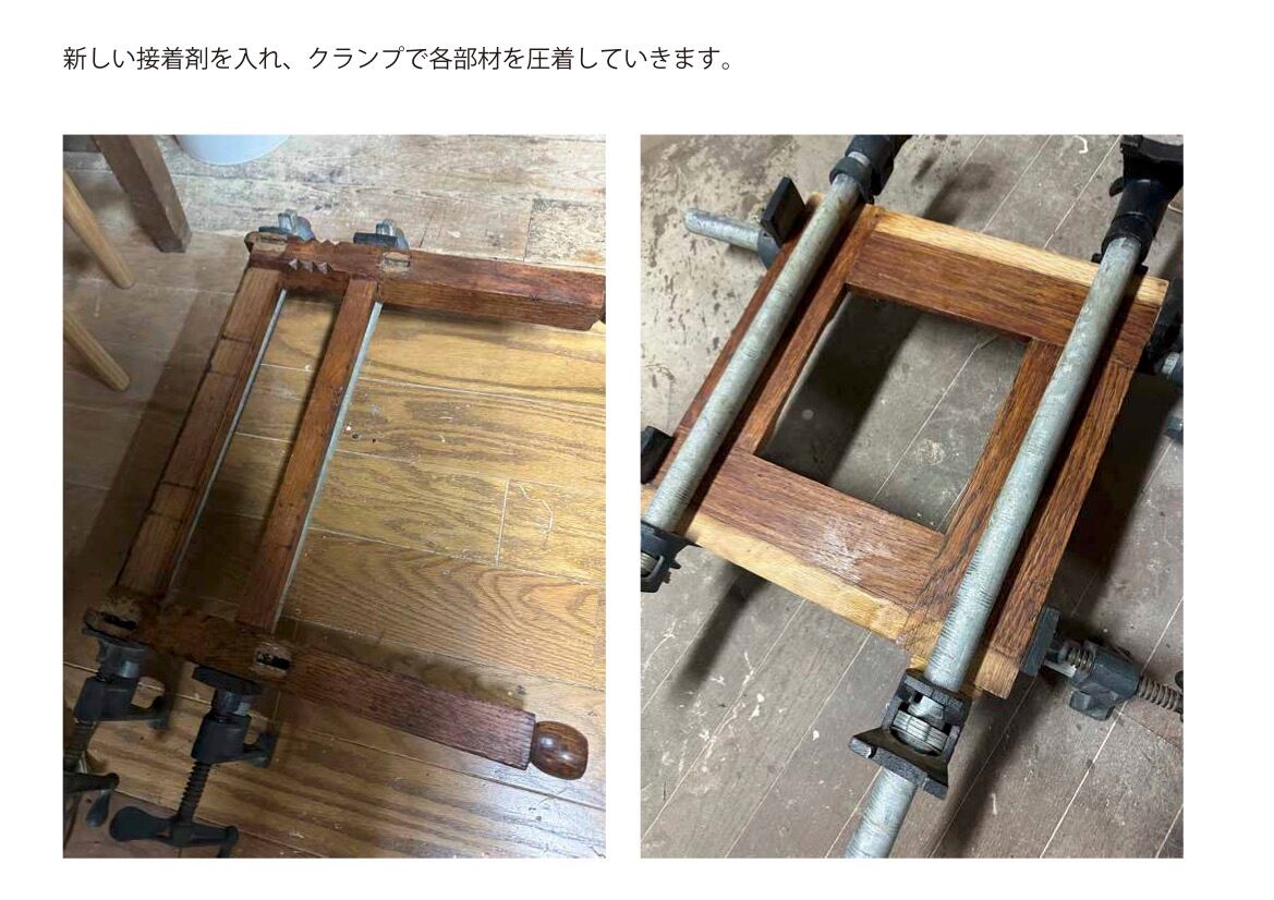 日本にて木工職人のもと、全脚を一度完全に分解し、再構築しています。