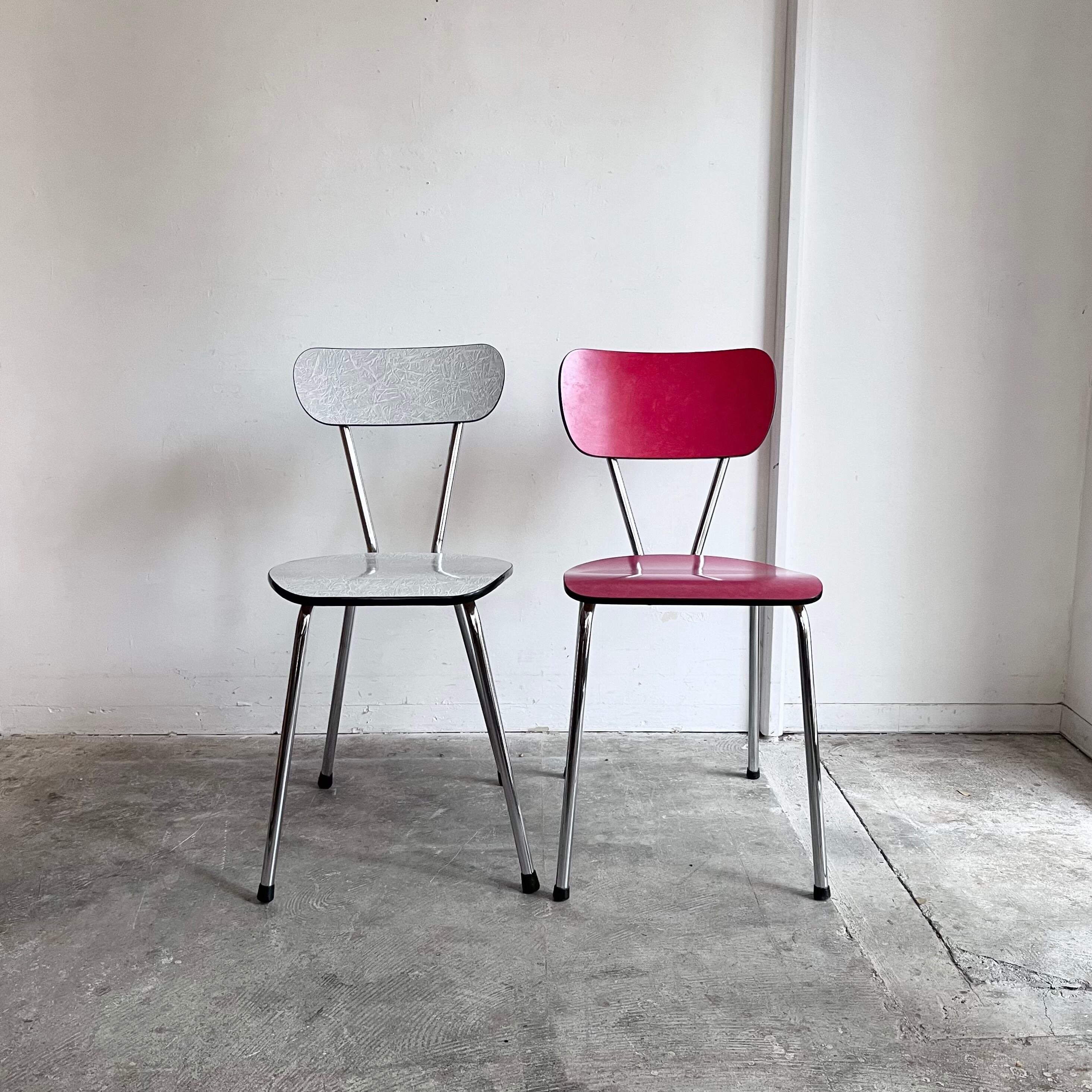 クロームのパイプフレームがモダンなキッチンチェア。