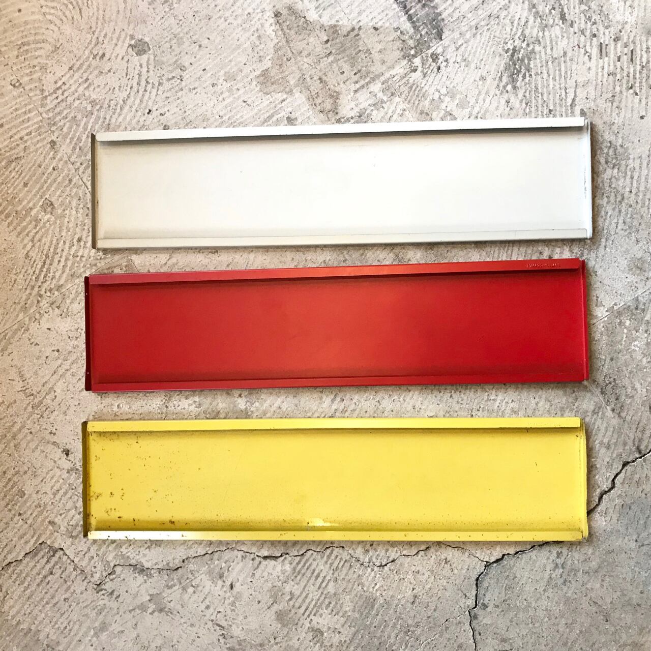 各色棚板には経年使用による小キズや擦れ、塗装剥がれ、若干の曲がり部分的な錆等ございます。