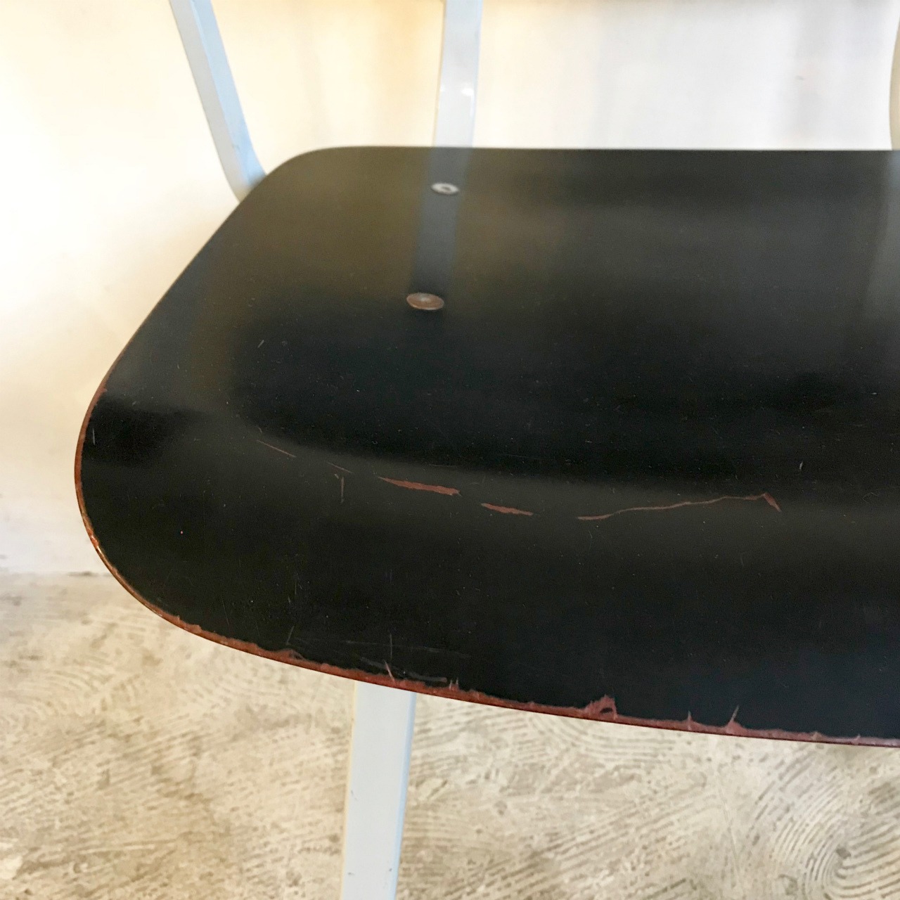 薄くミニマルなシートとメタルフレームの意匠、ダッチインダストリアル独特のコントラストは、いつまでも眺めていたくなる雰囲気のある佇まいをしています。