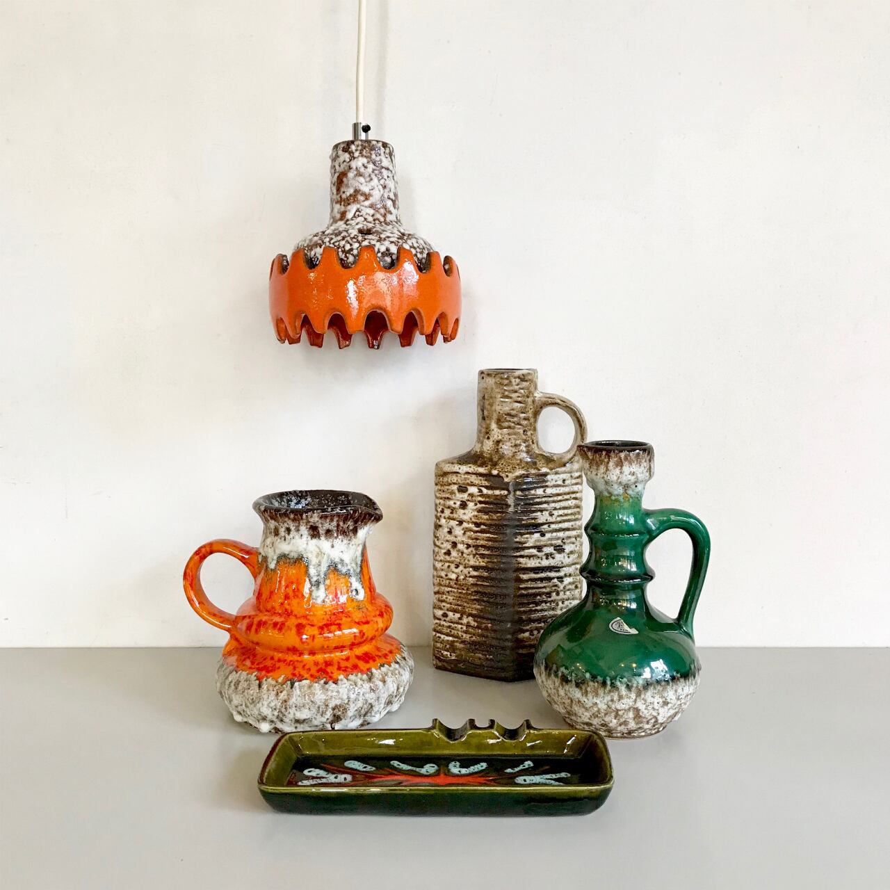 Vintage W.Germany Pottery Pendant Lamp 西ドイツ 欠けあり1点