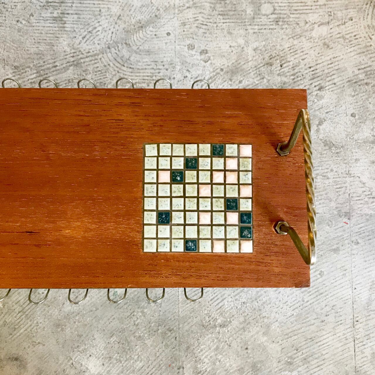 モザイクタイル使いのチーク天板、マガジンラック付きメタルフレーム