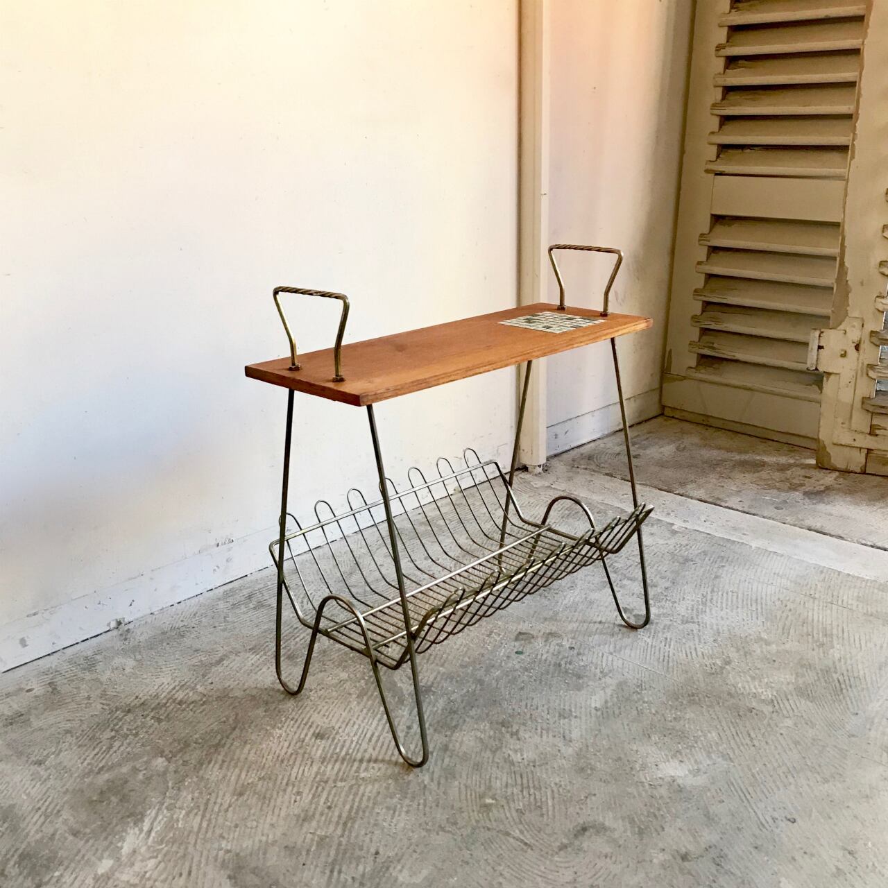 オランダで買い付けたチーク材天板のマガジンラックです。