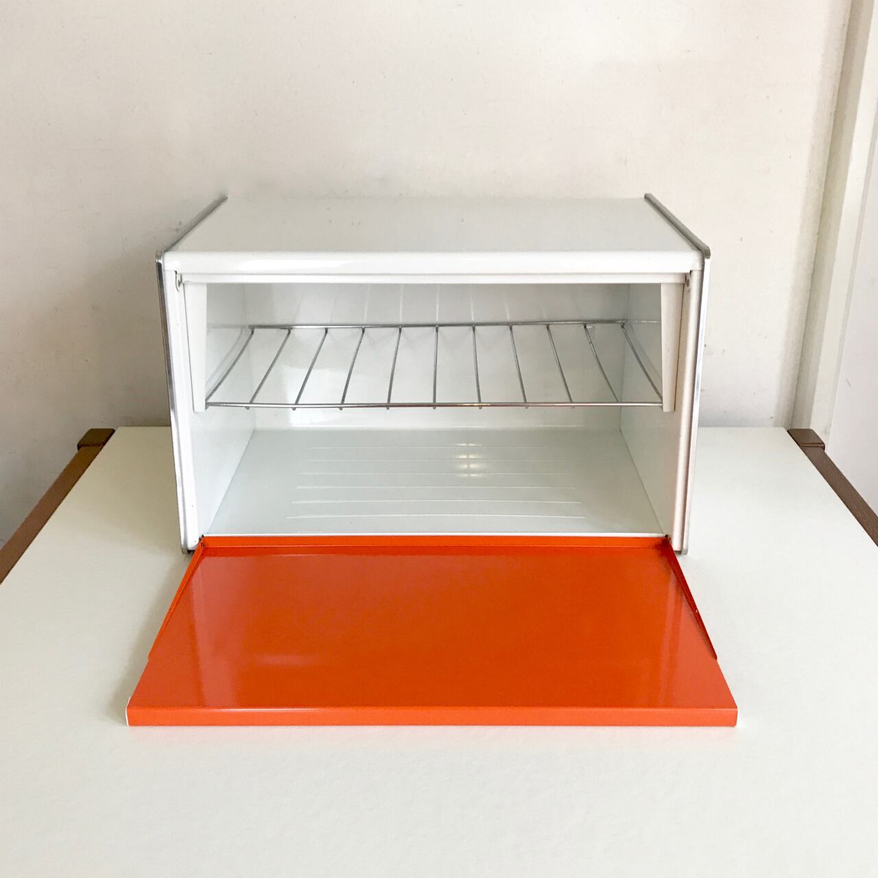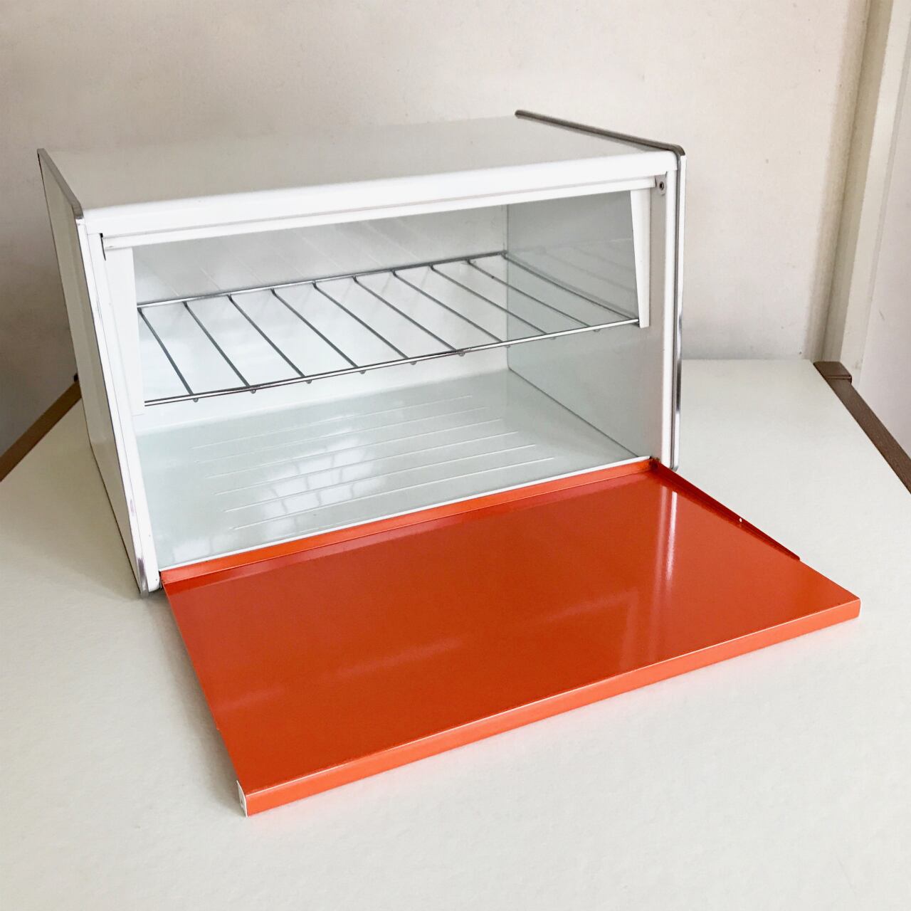 定番のブレッドケースよりも高さがあり、内部には取り外し可能な棚板付き。