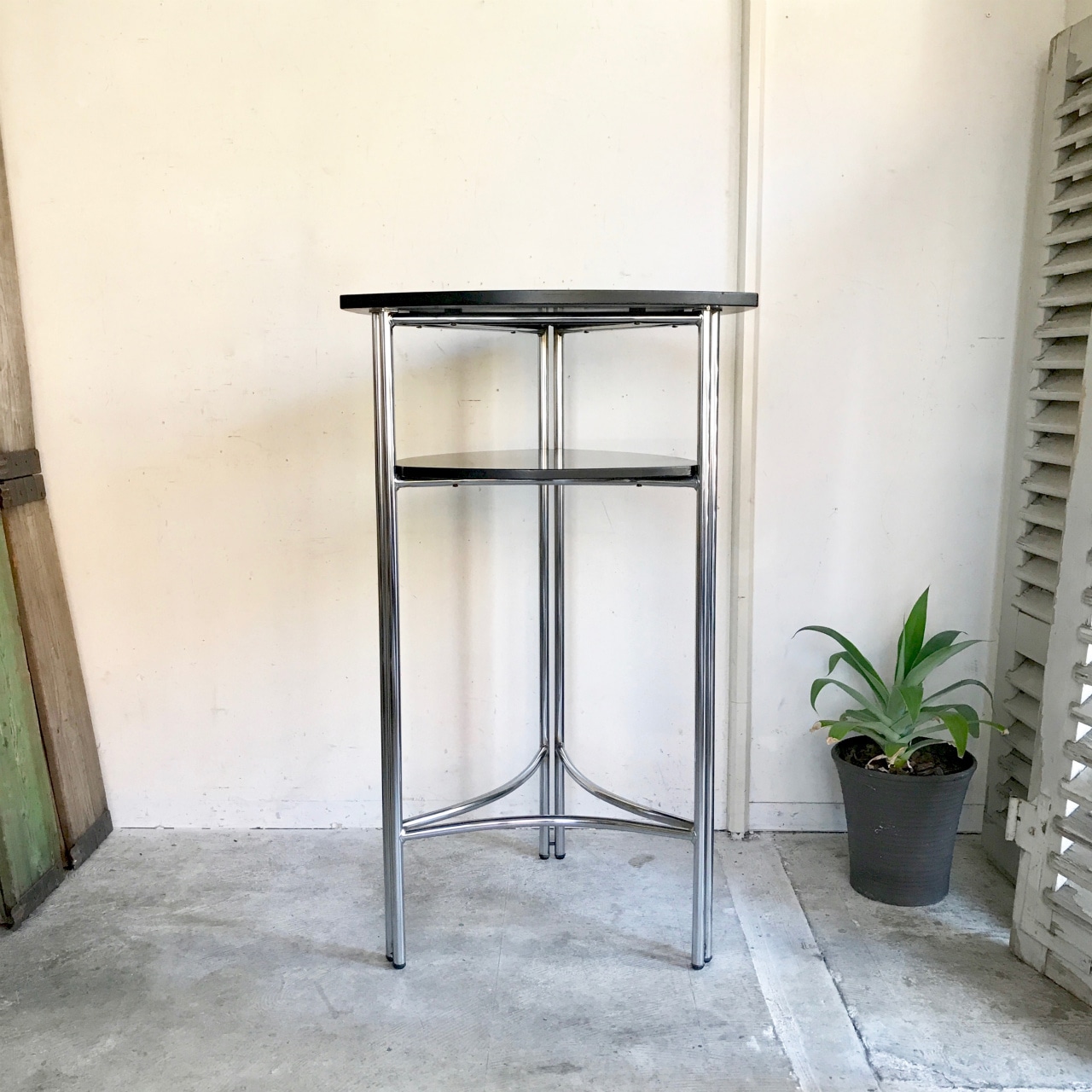 バーテーブル・ハイチェア×2脚 のセット、クロームフレーム、ペイントウッド