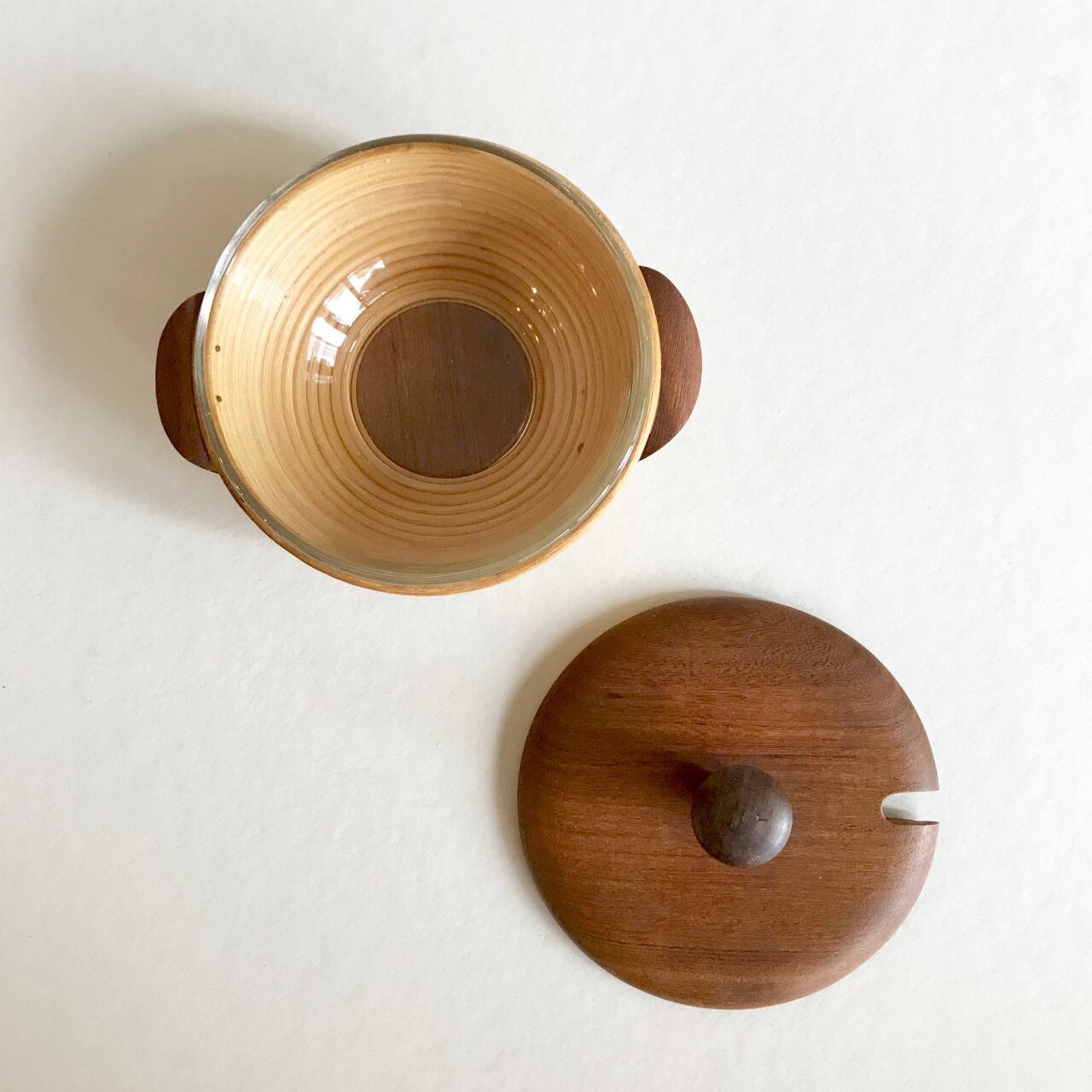 Teak Lid & Inner Glass Bowl Sugar Canister 70's オランダ