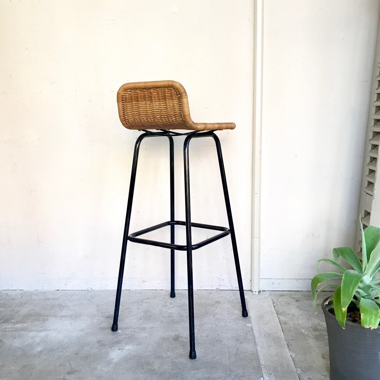 "Rohé" Vintage Rattan Bar Stool "Dirk Van Sliedrecht" 60's オランダ A(SH:830)