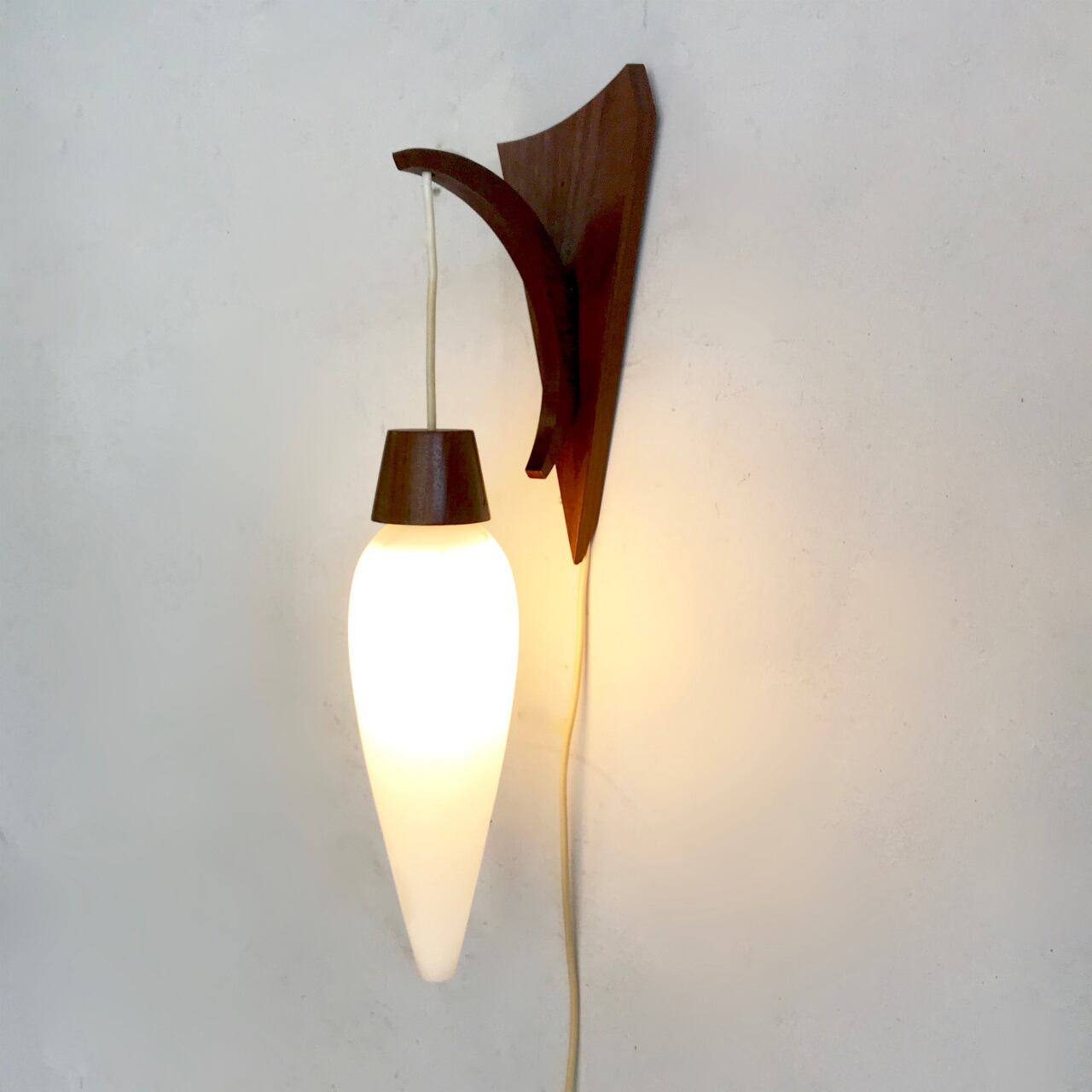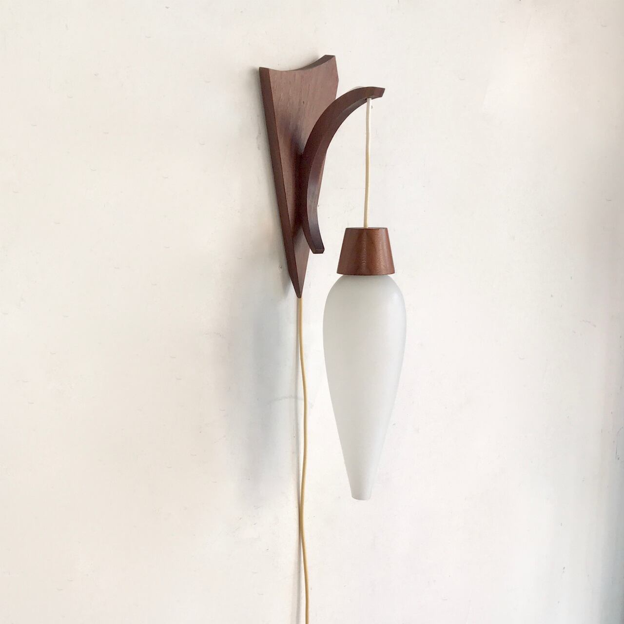 Glass & Teak Hanging Wall Lamp 70's オランダ