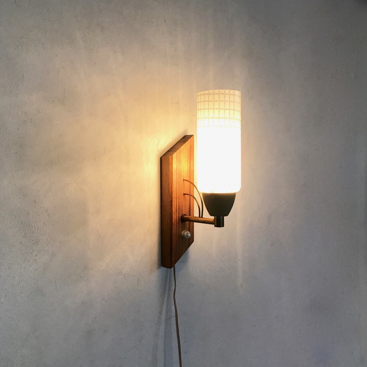 Teak × Brass Frame Glass Wall Lamp 1960's オランダ