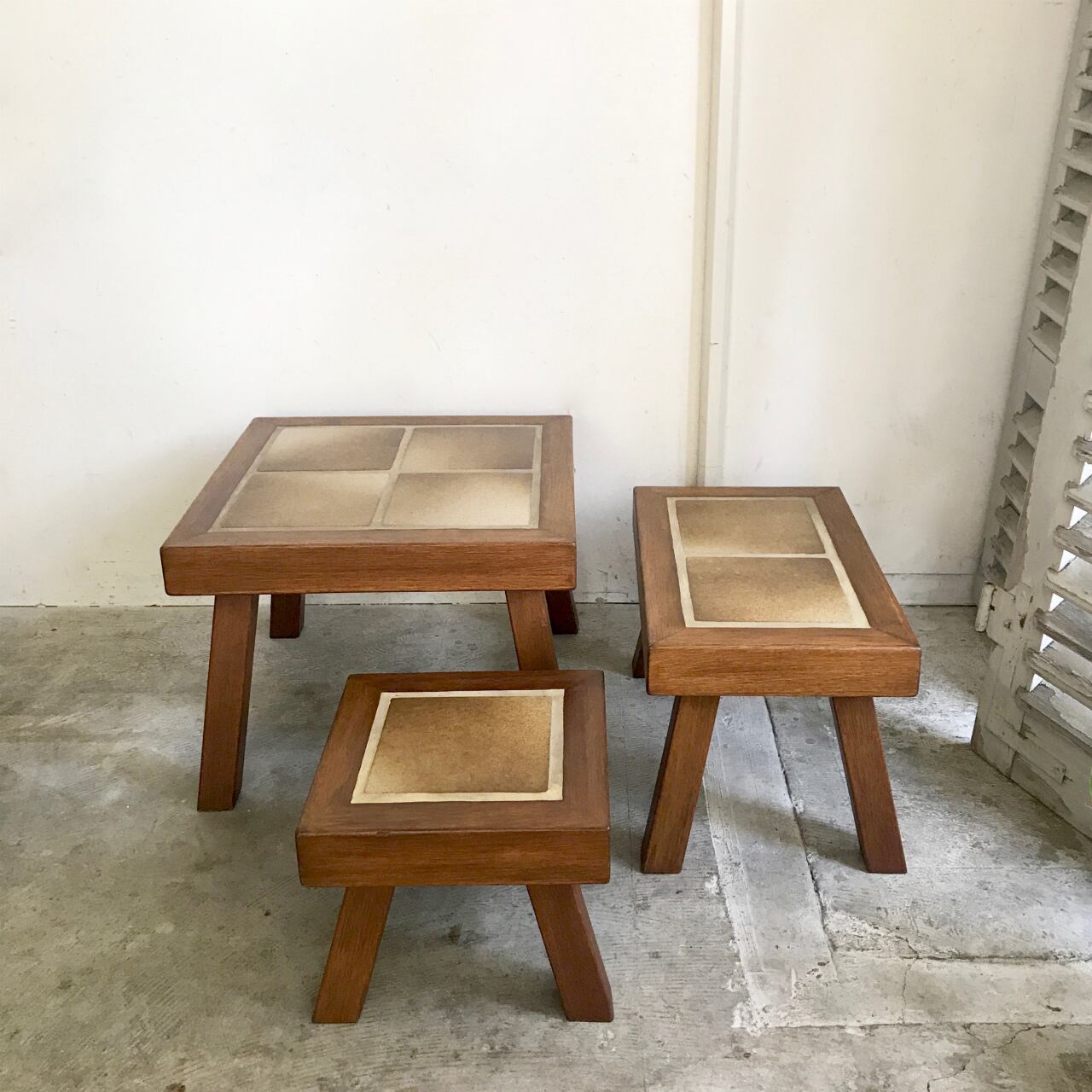 ★自社配送/店頭ピックアップ限定商品★ Tile Top × Oak Frame Side Table / Medium 70's オランダ