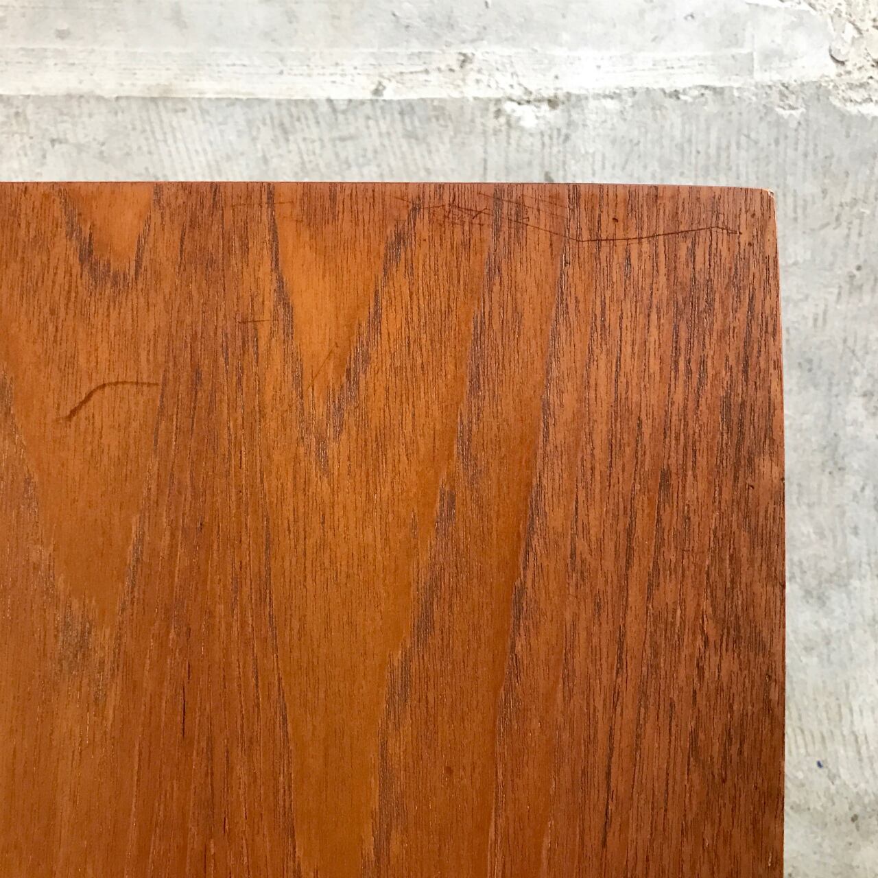 無垢チーク材の脚に反りが出ています。画像をご確認ください。