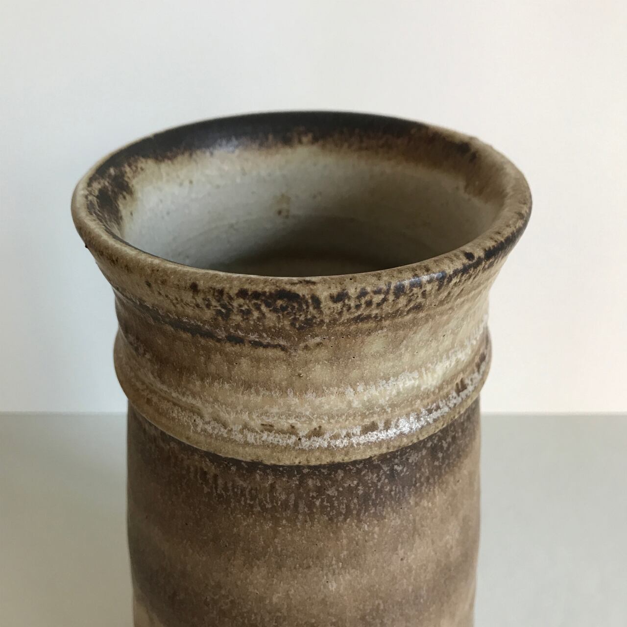 Vintage Pottery Vase / B.Brown × Gray 1960's オランダ