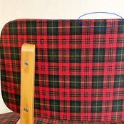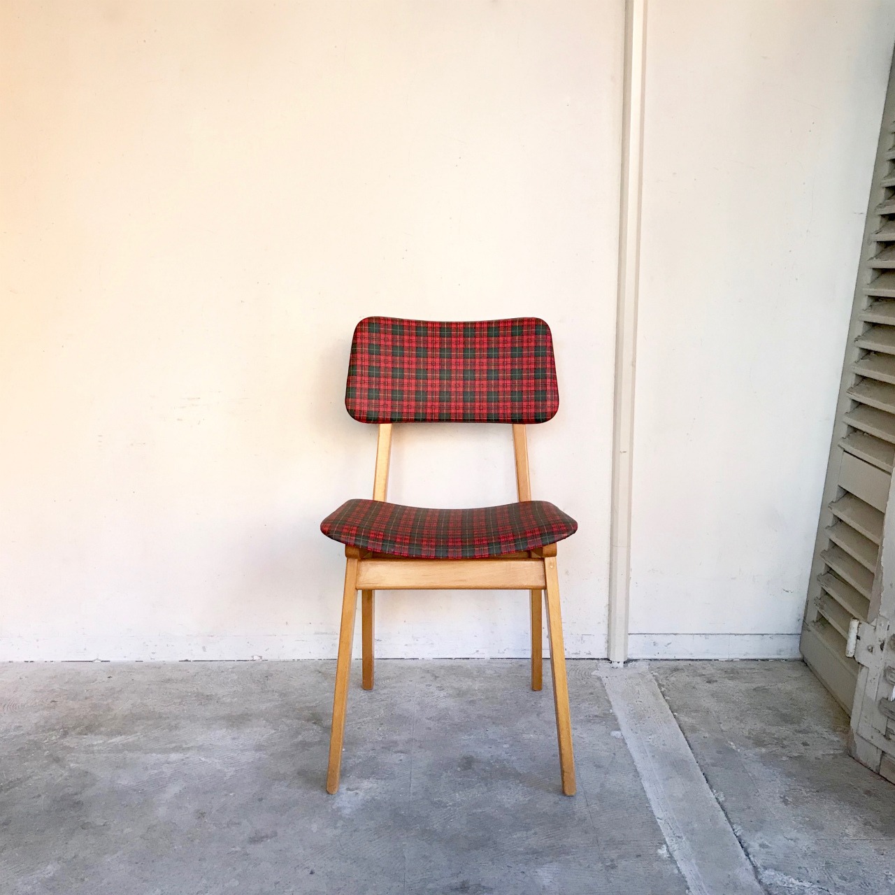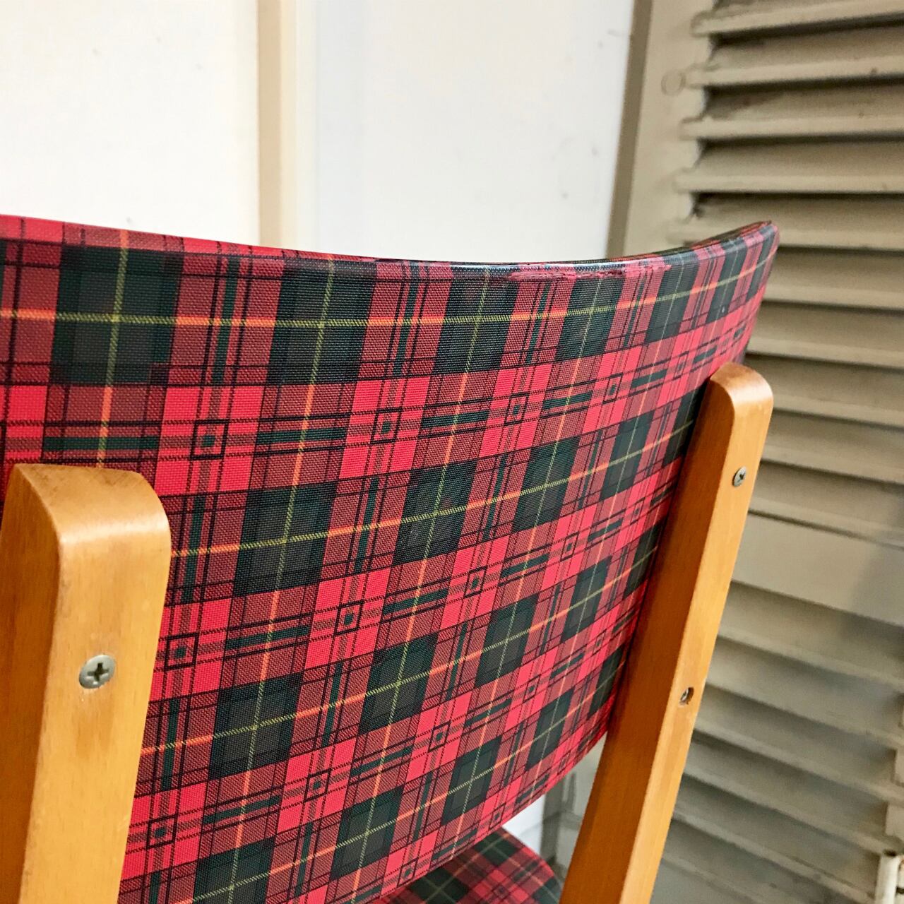 ドイツらしい直線的なウッドフレームに、パッと目を引く赤いチェック柄シート。