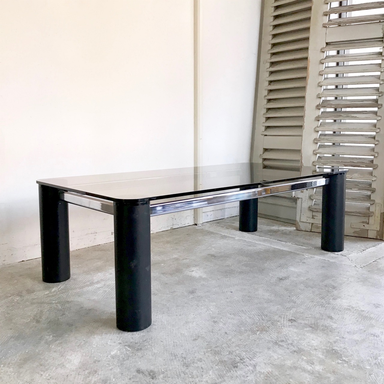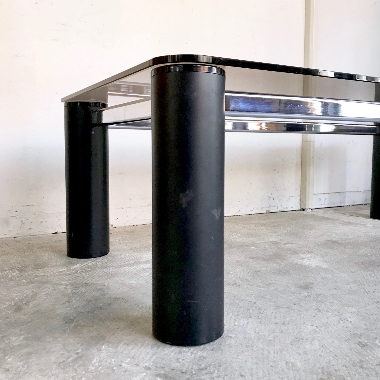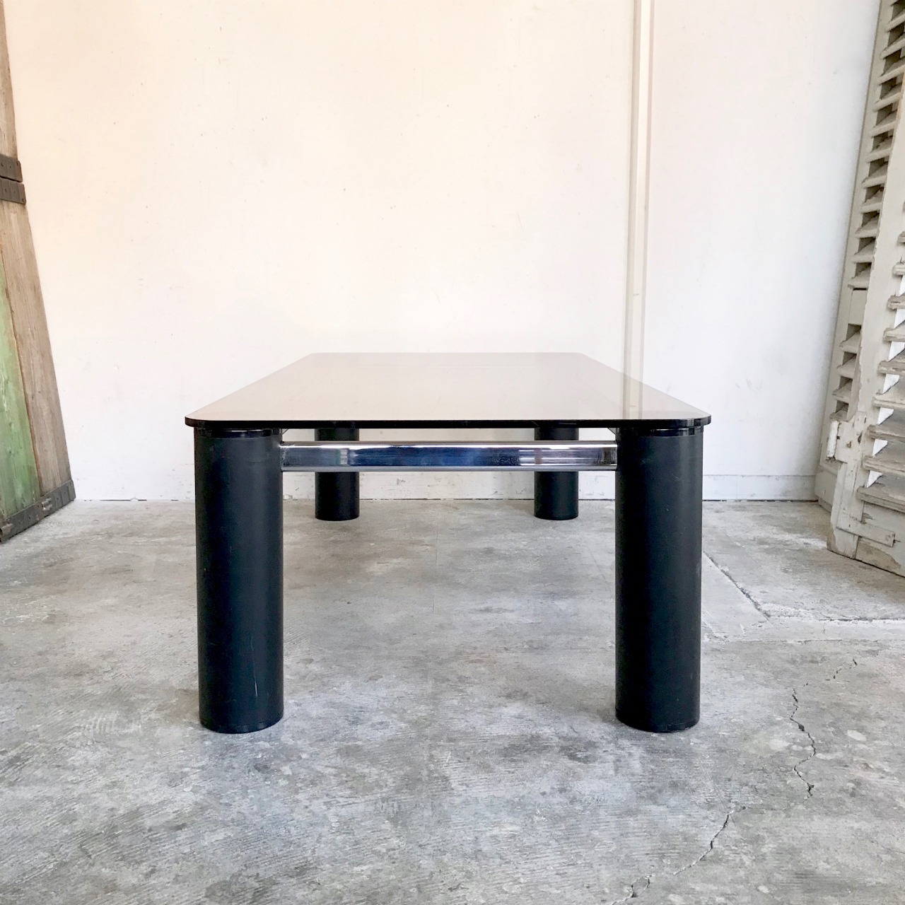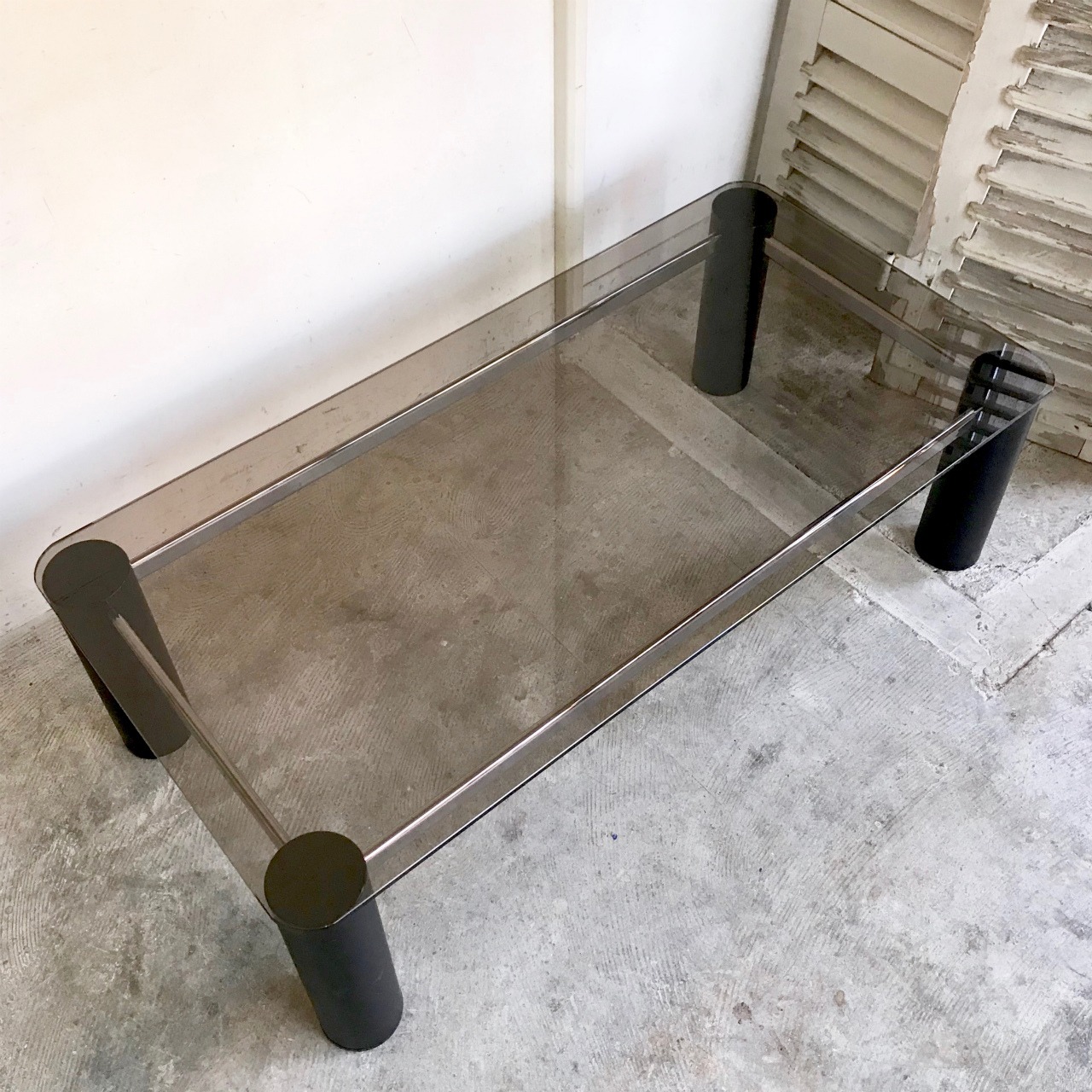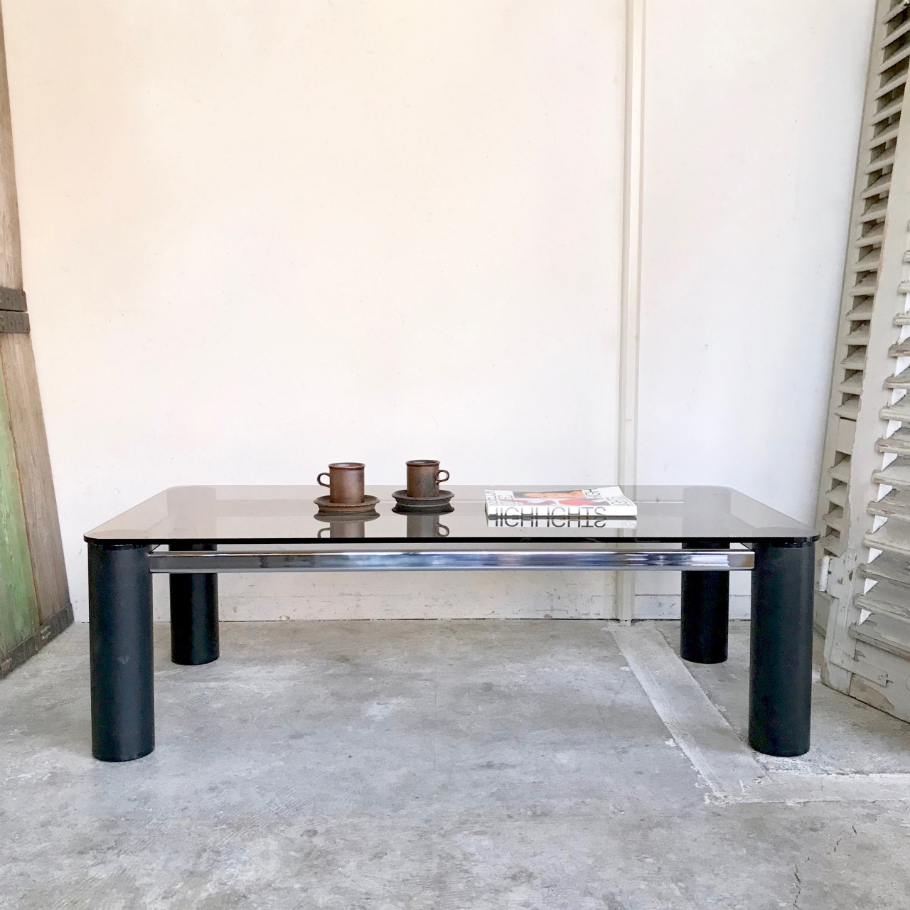 スモークガラス天板、黒い鉄脚(上部プラスチックキャップ)