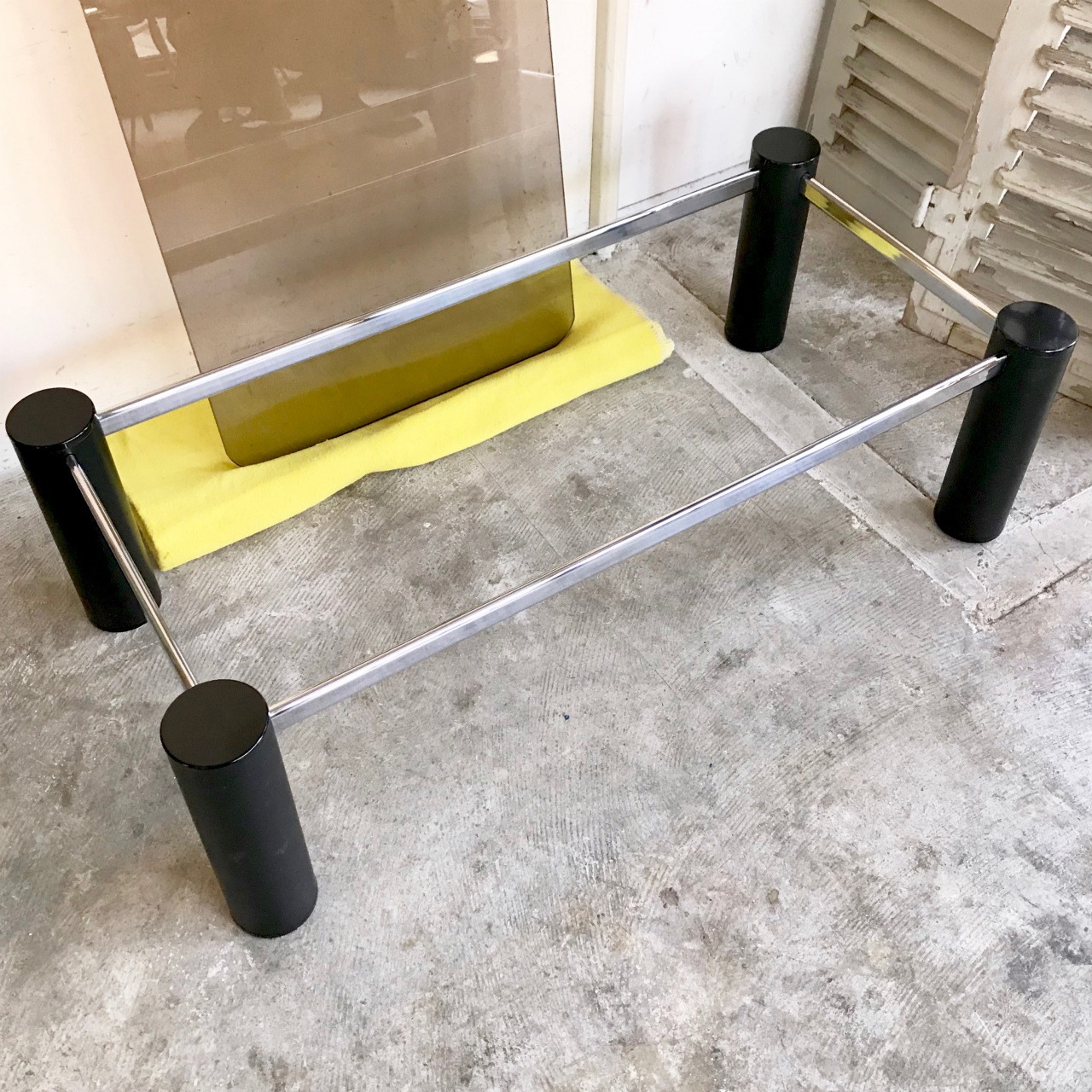 80's Postmodern Style Glass Top × Iron Leg Coffee Table