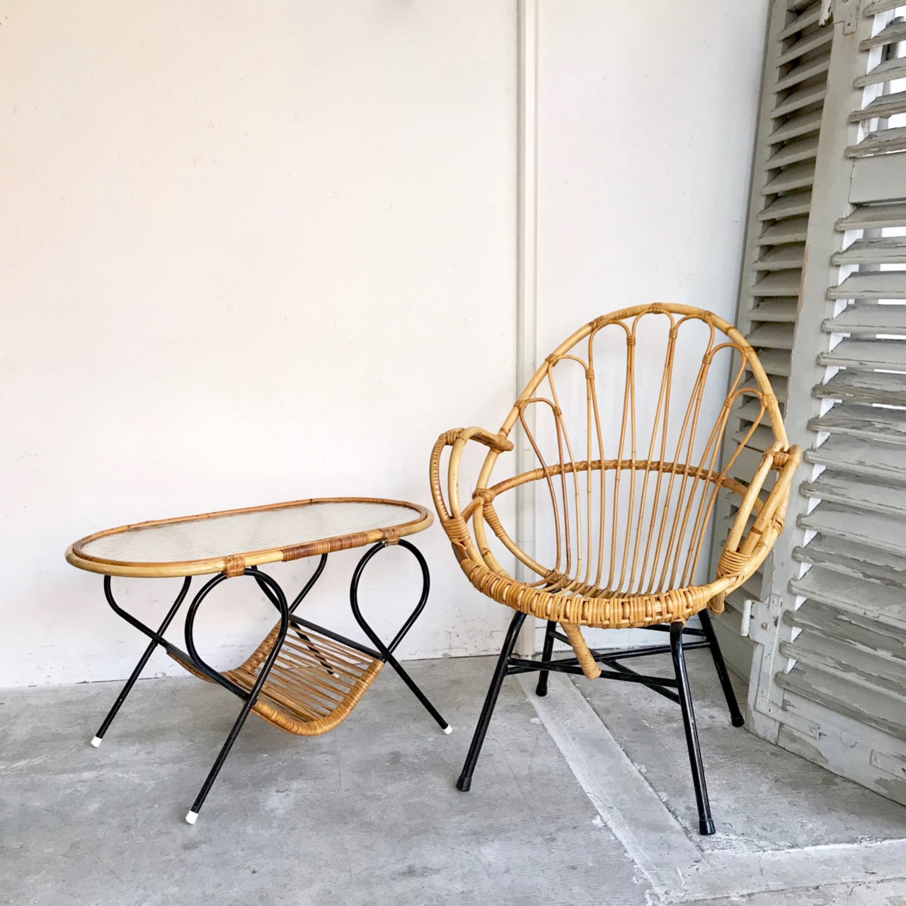 "Rohé" Rattan Lounge Arm Chair 1960's オランダ A