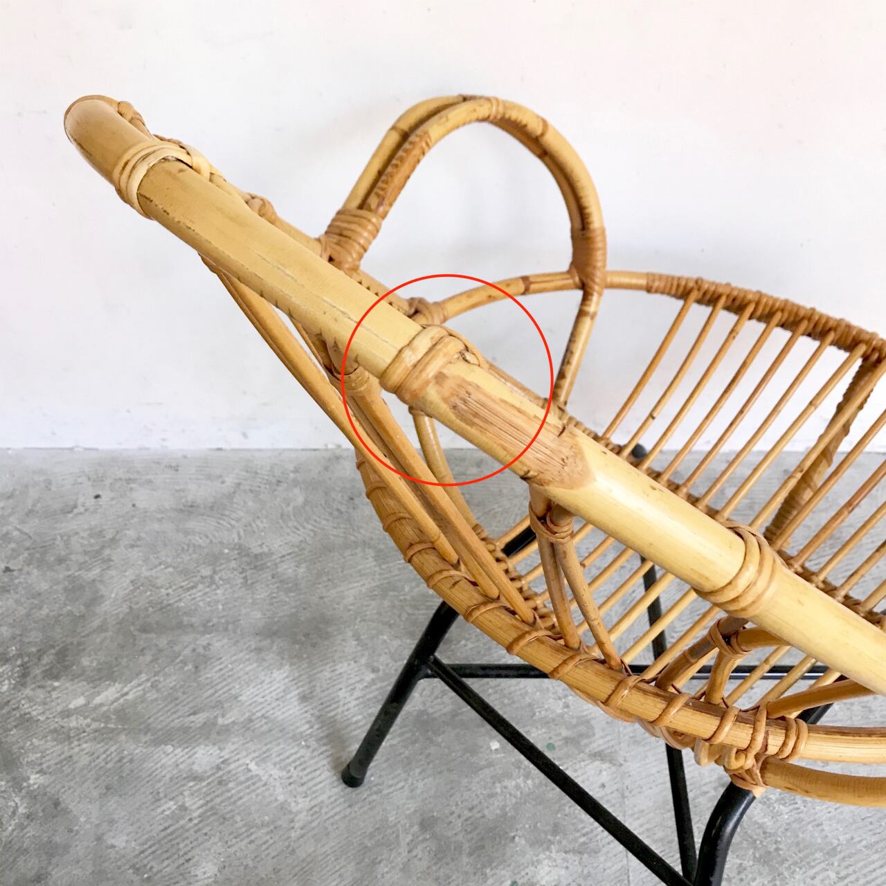ベースとなるラタンフレーム自体はしっかりと固定されており、ラタンピールも補修で固定されていますのでご使用に問題ありませんが、画像をご確認ください。