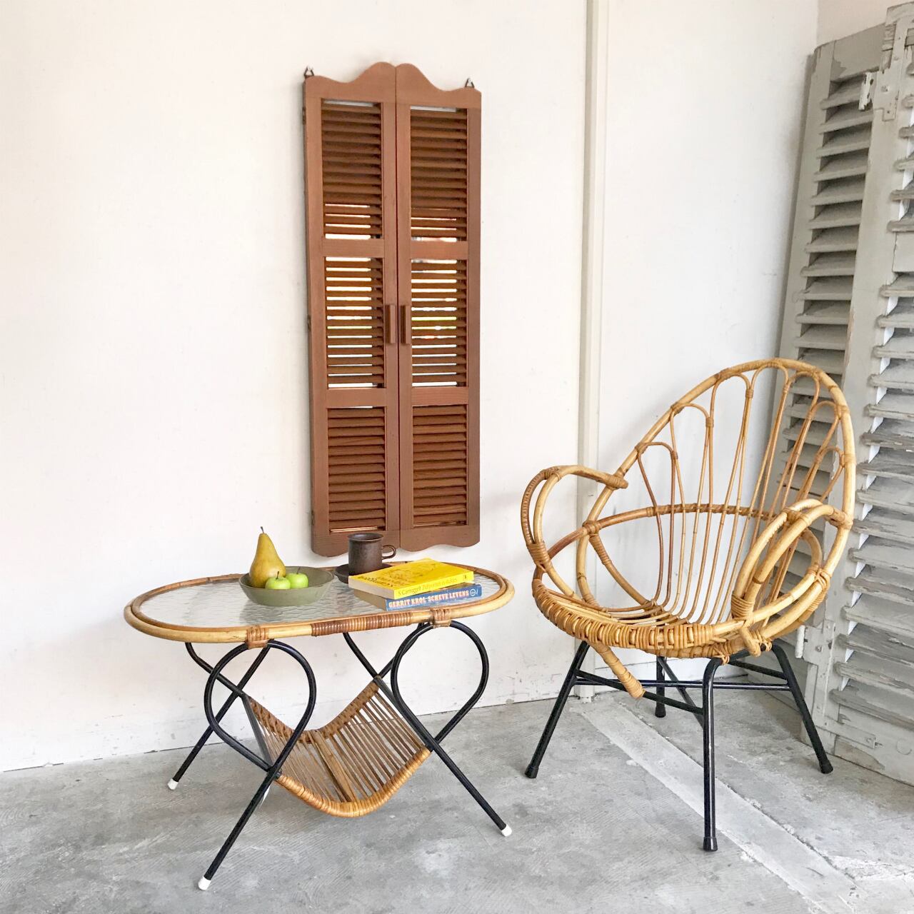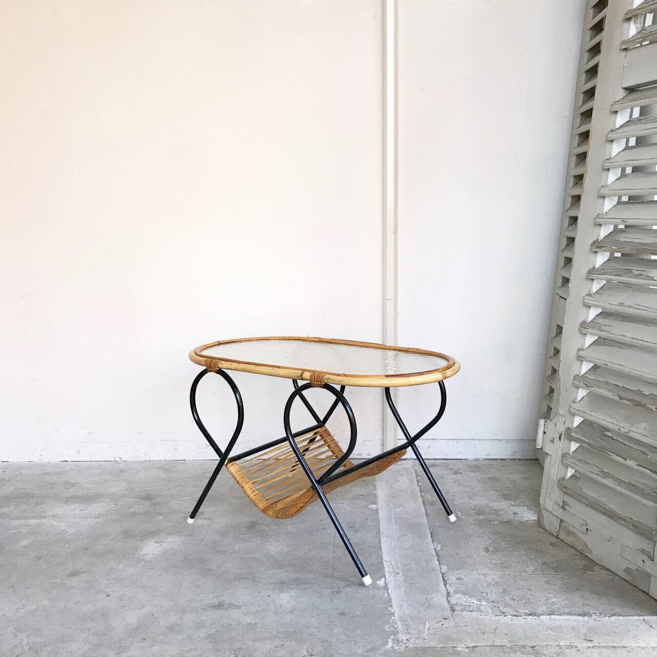 ★自社配送/店頭ピックアップ限定商品★“Rohé” Glass Top × Rattan Side Table 1960's オランダ