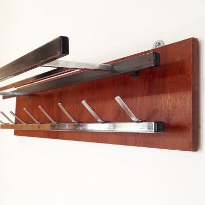 チーク材のベースには、クロームとマット塗装2色のメタルフレームが並び、