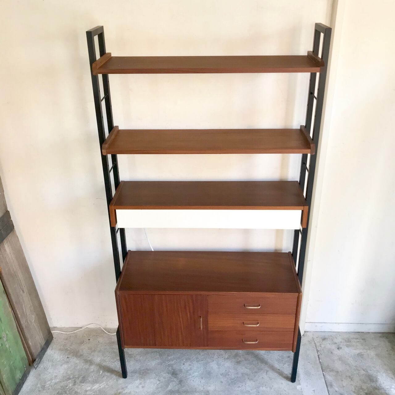 本体: チーク材棚板×2、ランプ付き棚板×1、キャビネット