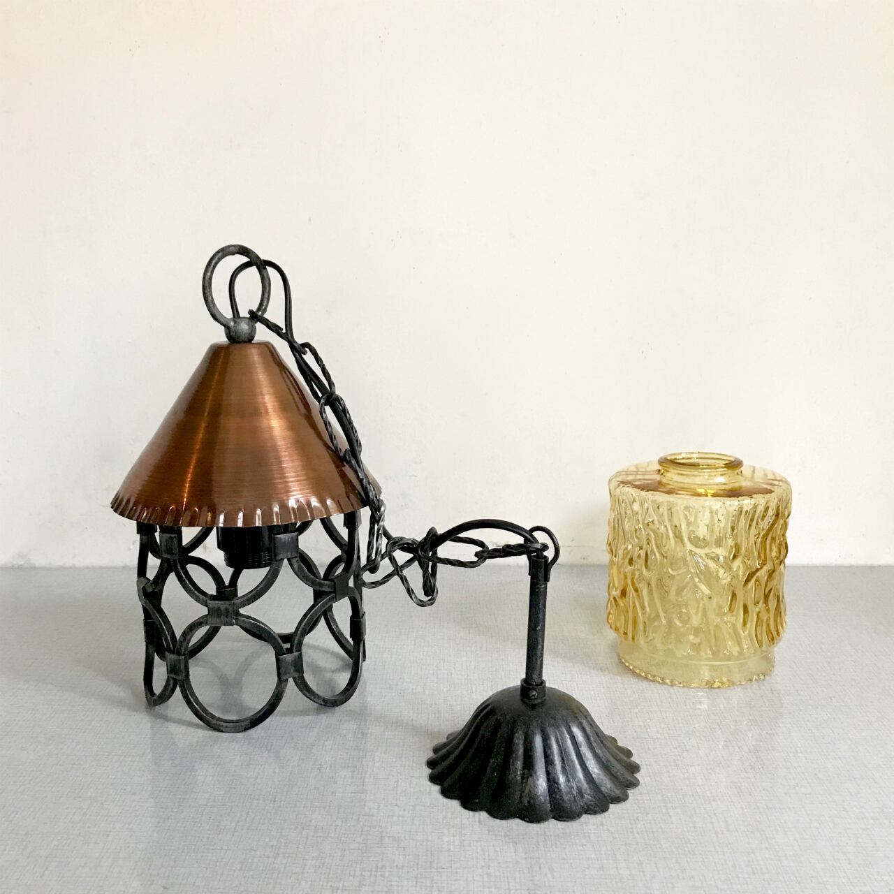 Copper Plate × Amber Glass Pendant Lamp / Dead Stock 1970's オランダ