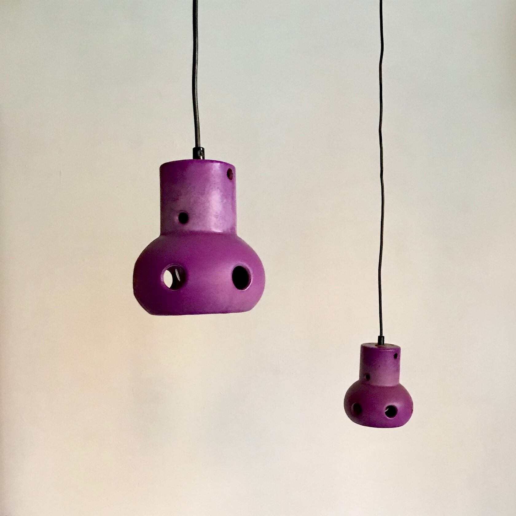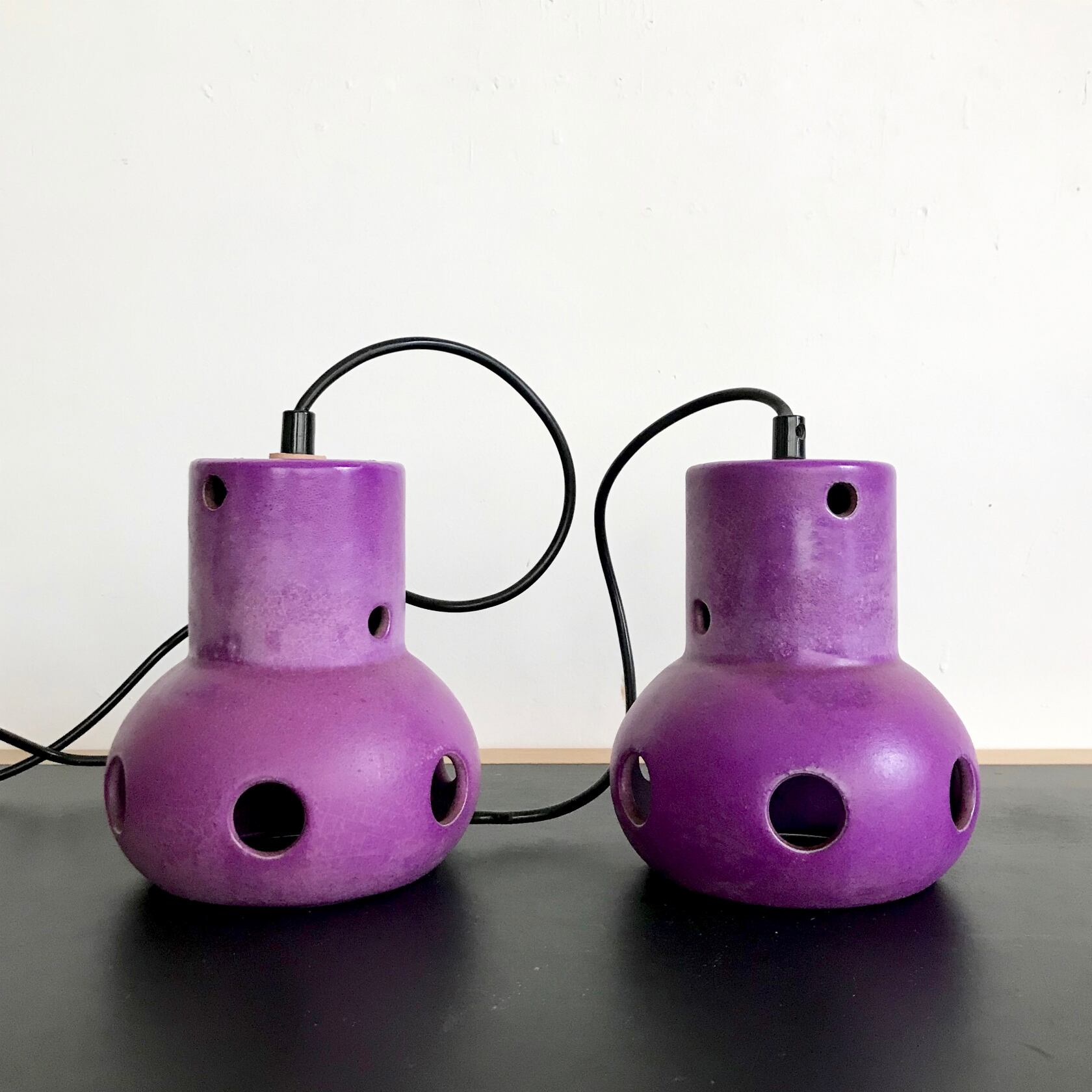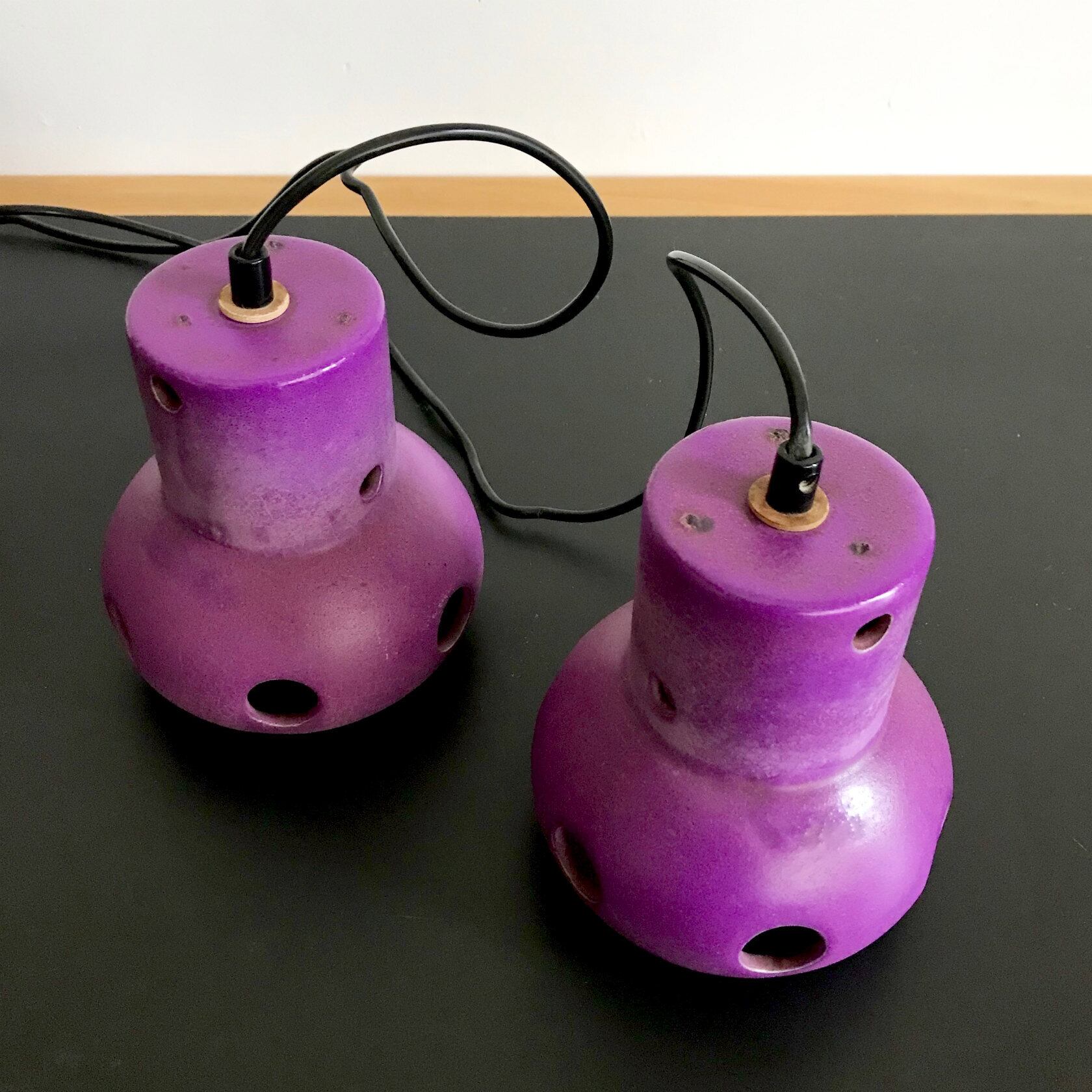 Vintage Pottery Pendant Lamp / PURPLE 1970's オランダ