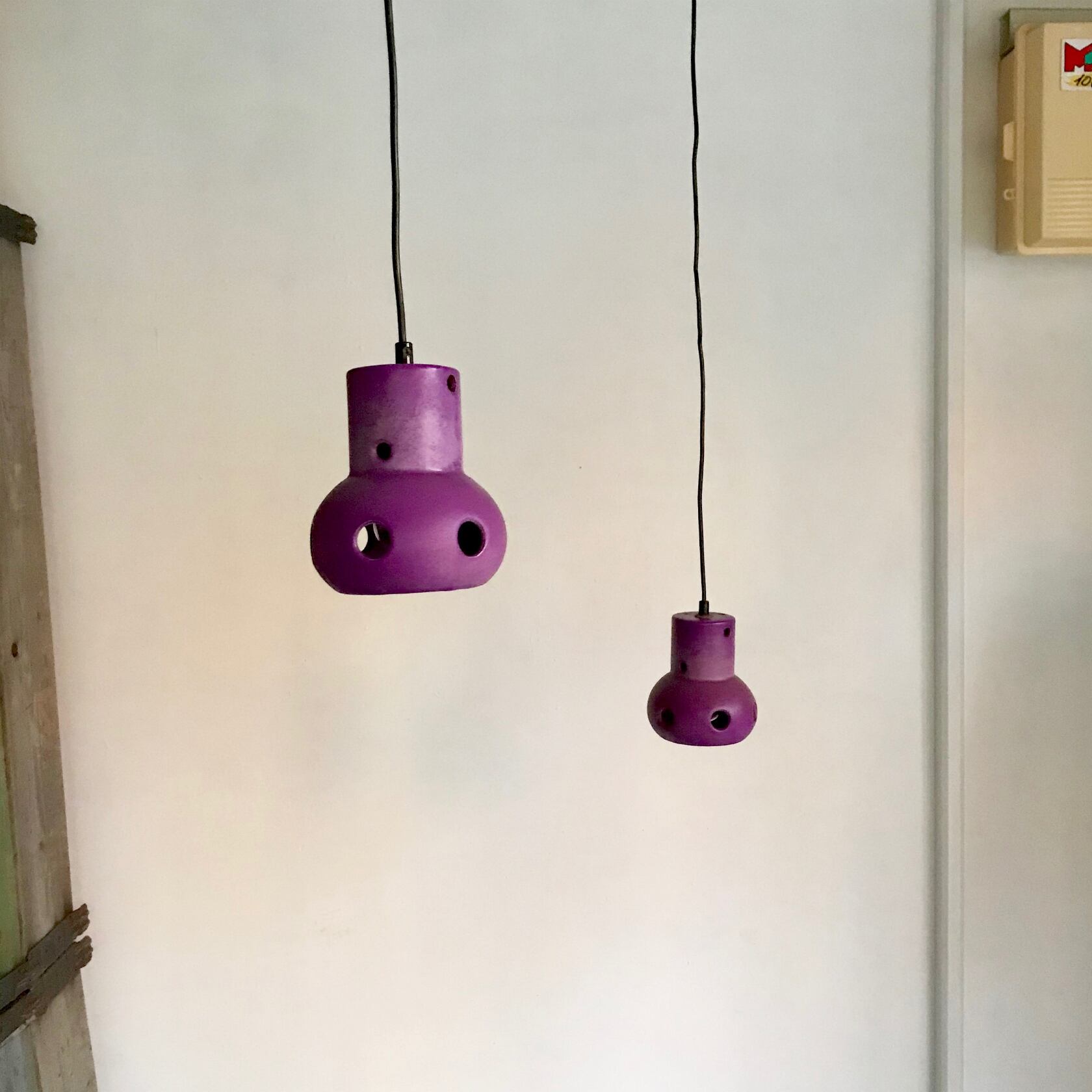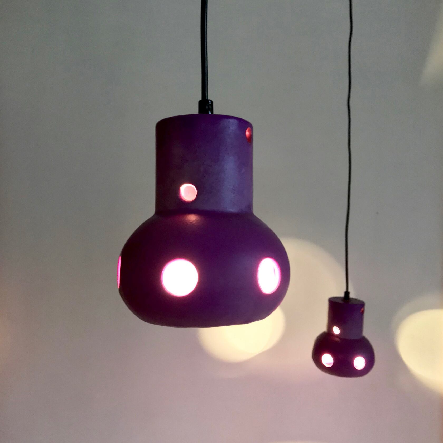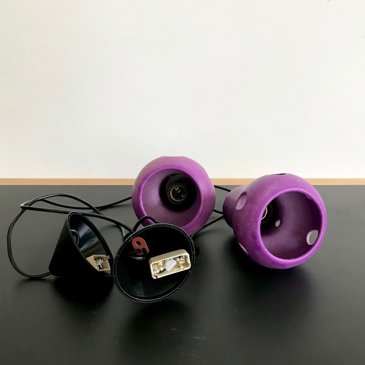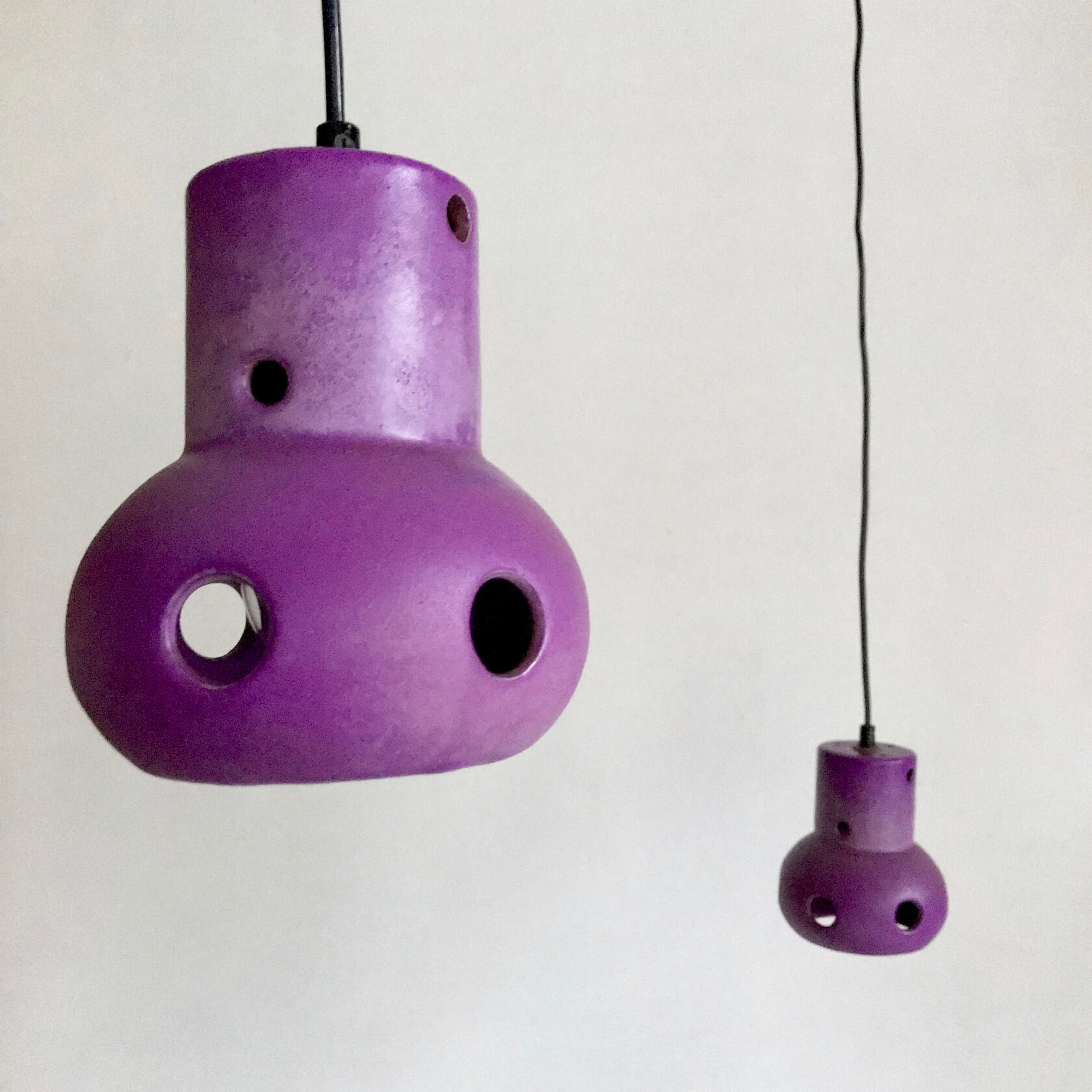 Vintage Pottery Pendant Lamp / PURPLE 1970's オランダ