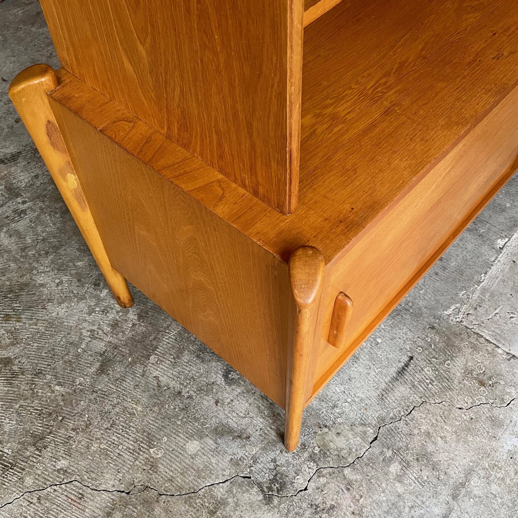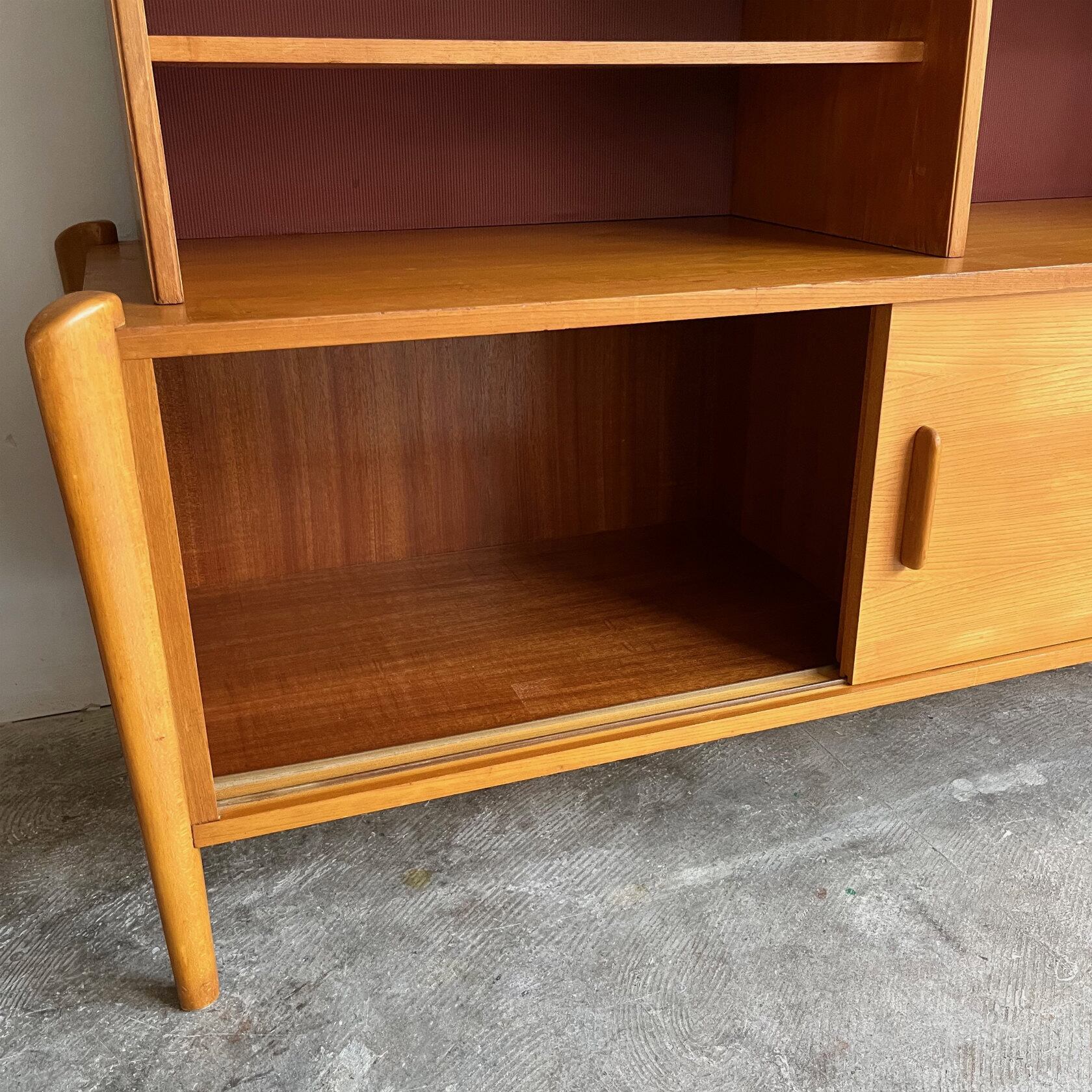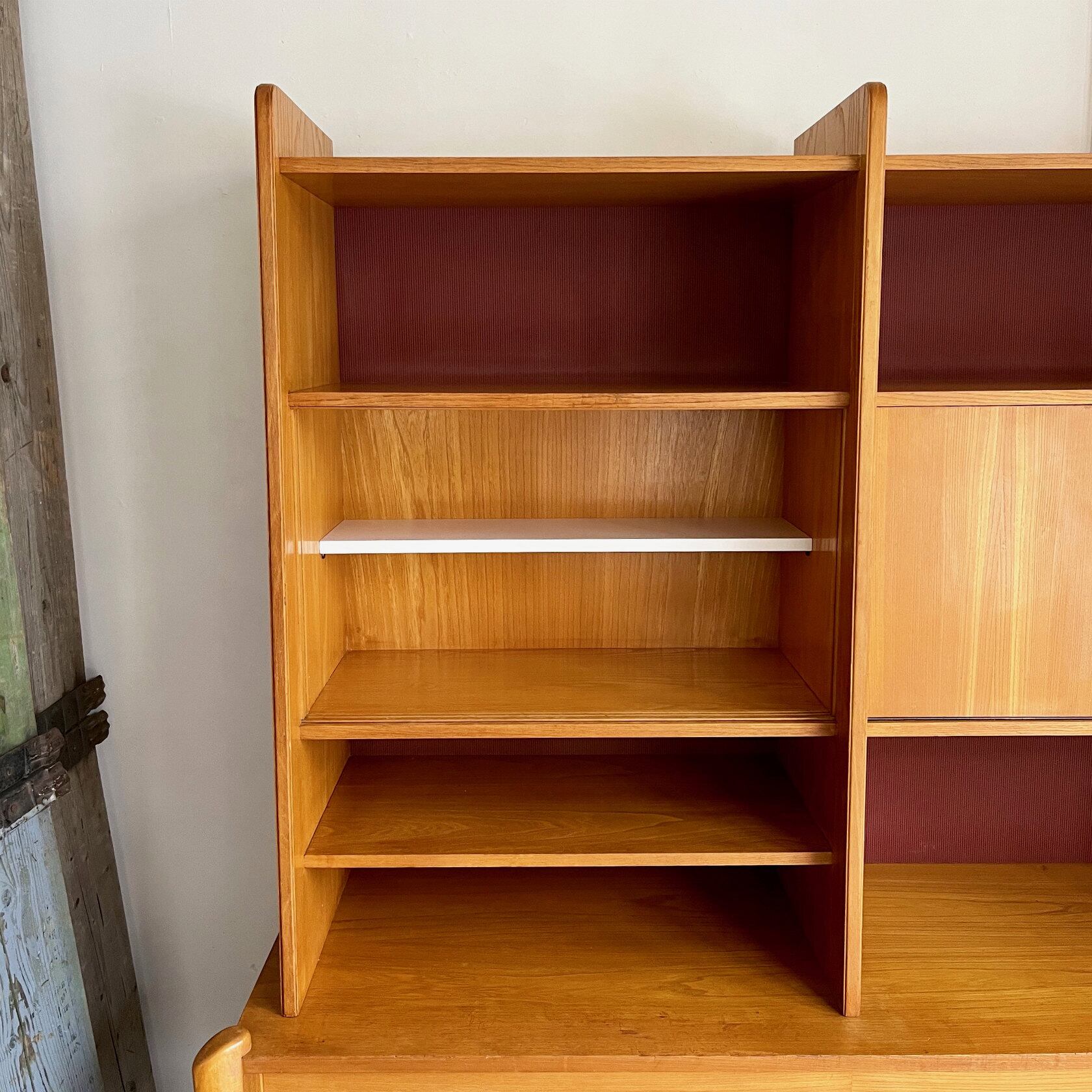 上部は棚板で細かく仕切られ、片側には扉付き。