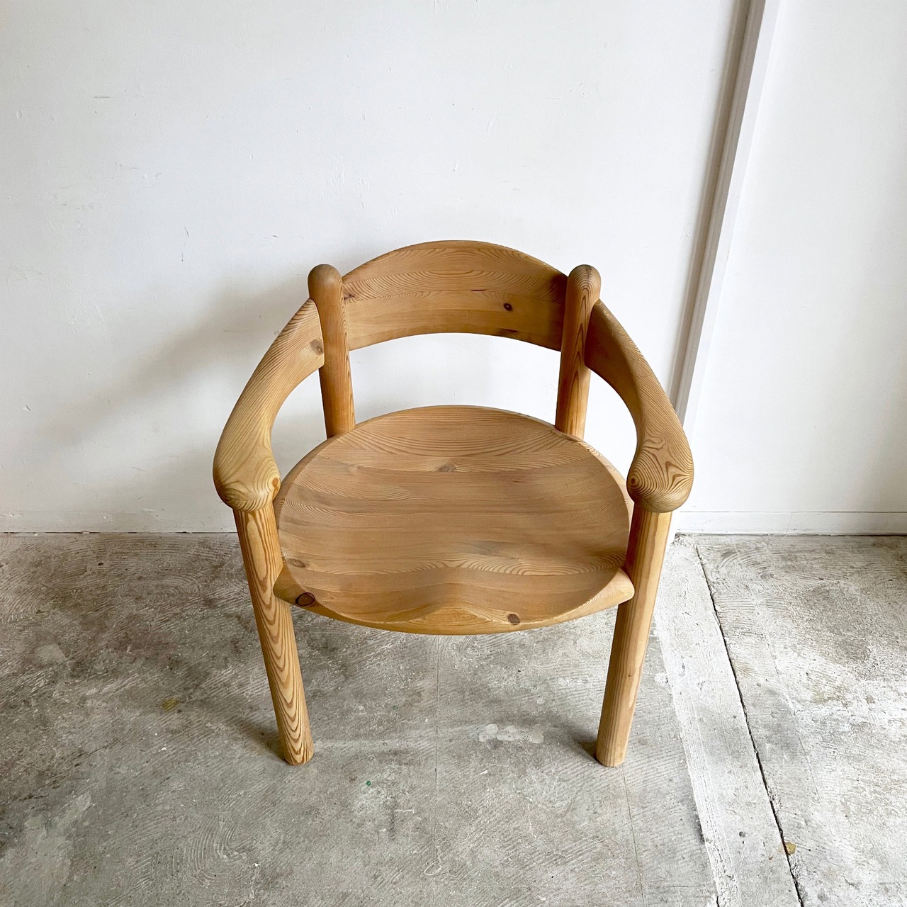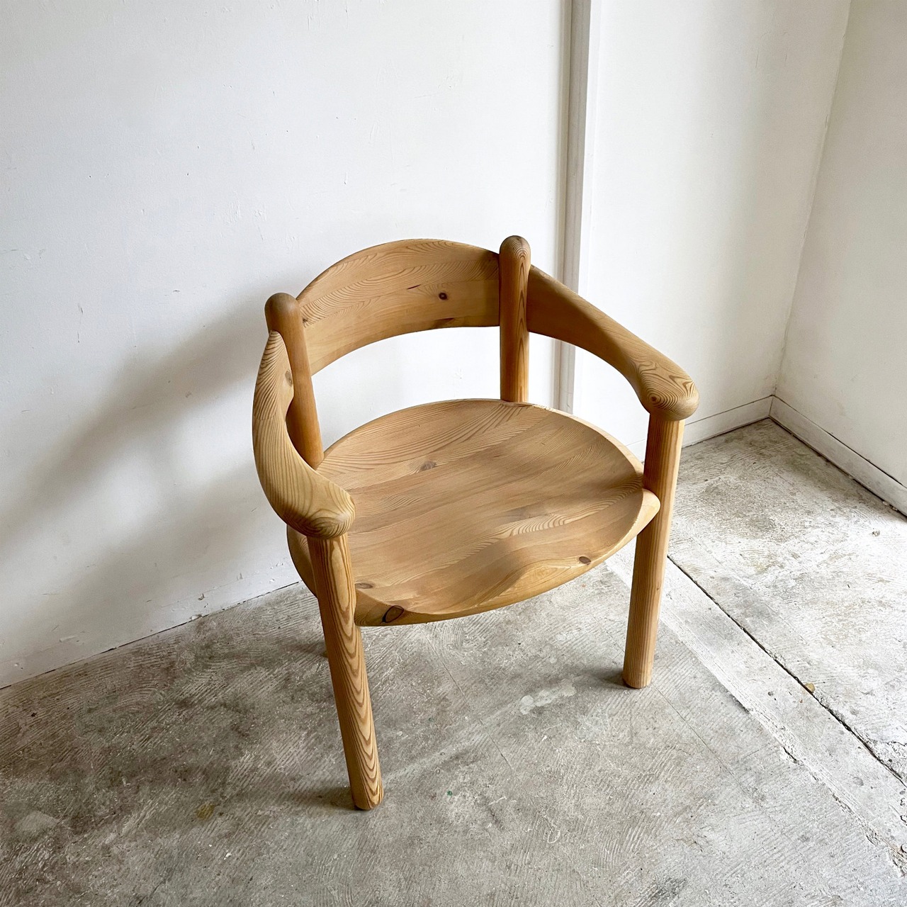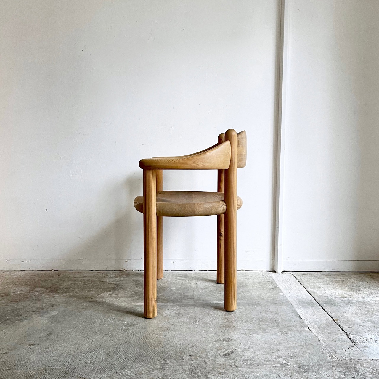 厚く丸みを帯びた柔らかなフォルムはパインウッドの温かみを直に感じられ、