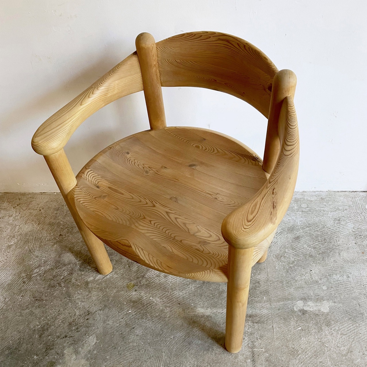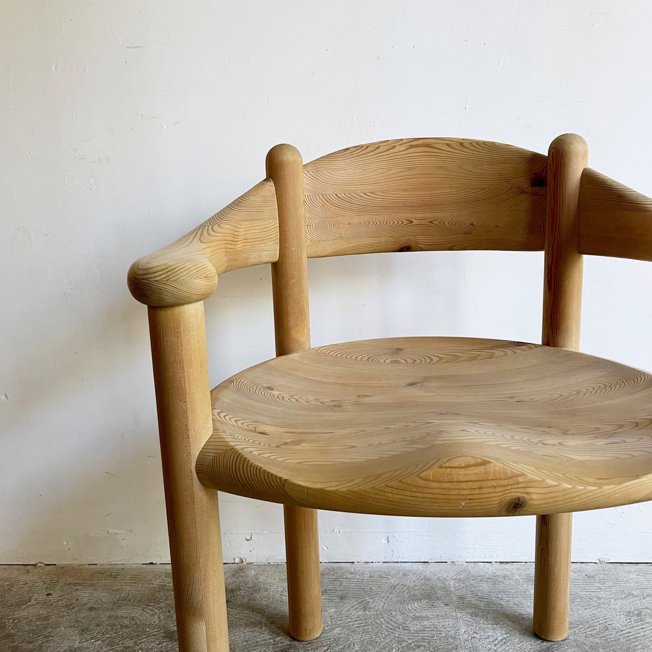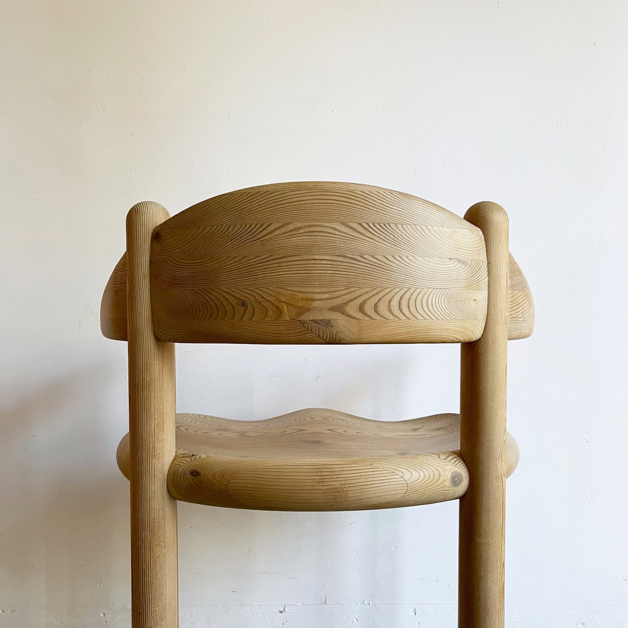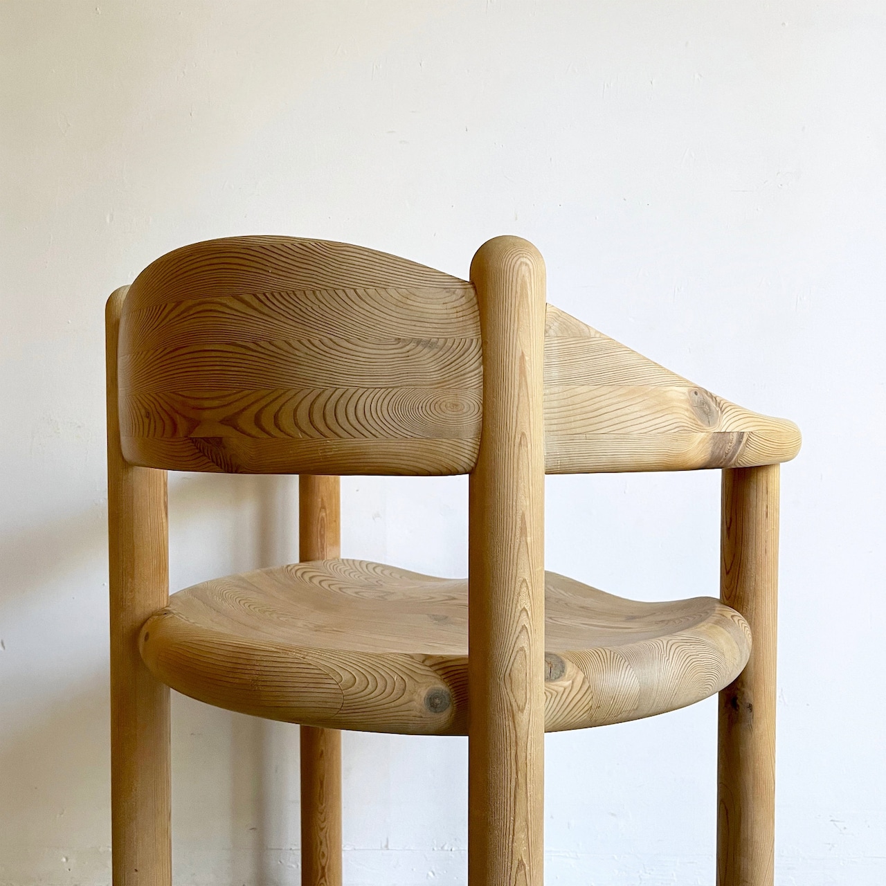 厚く丸みを帯びた柔らかなフォルムはパインウッドの温かみを直に感じられ、