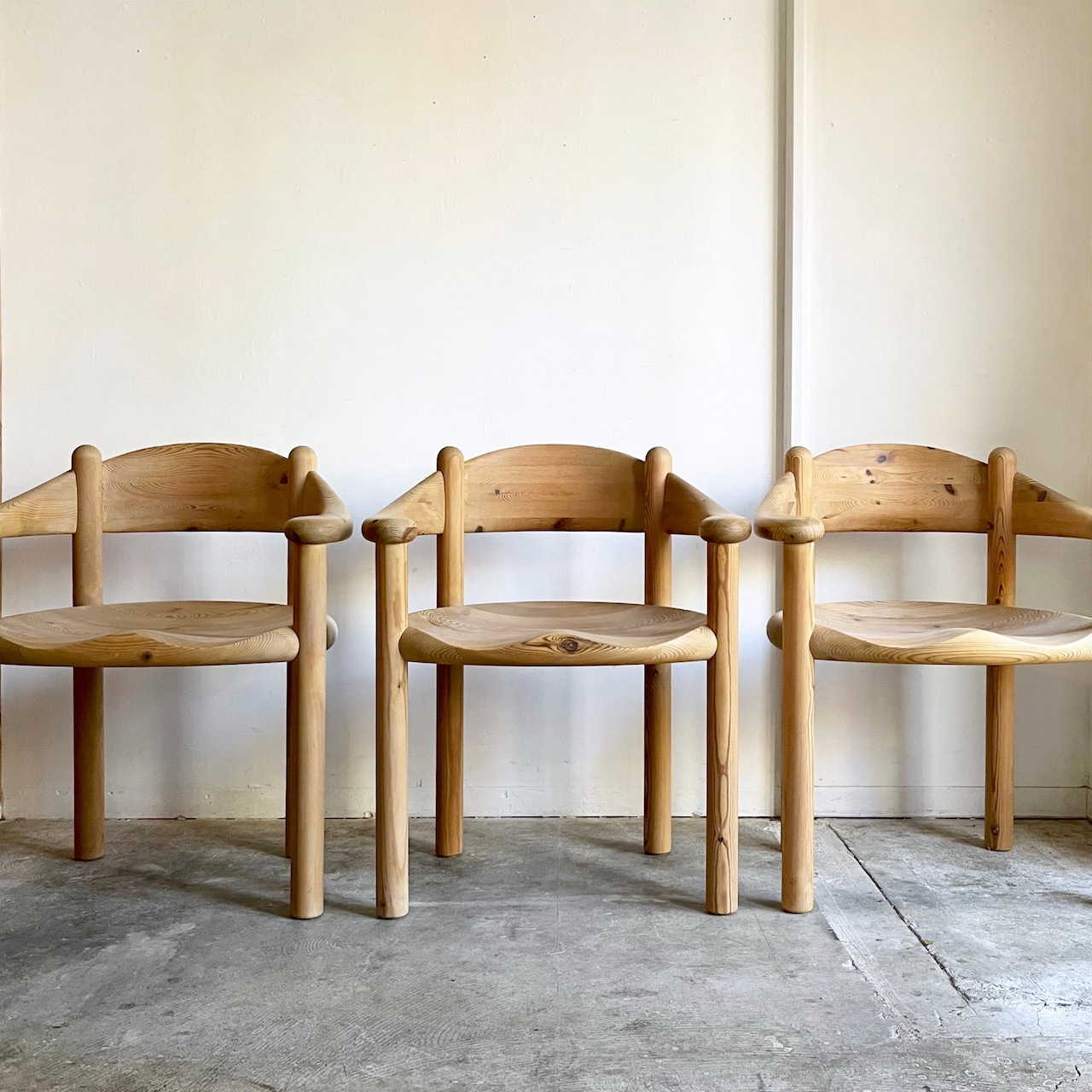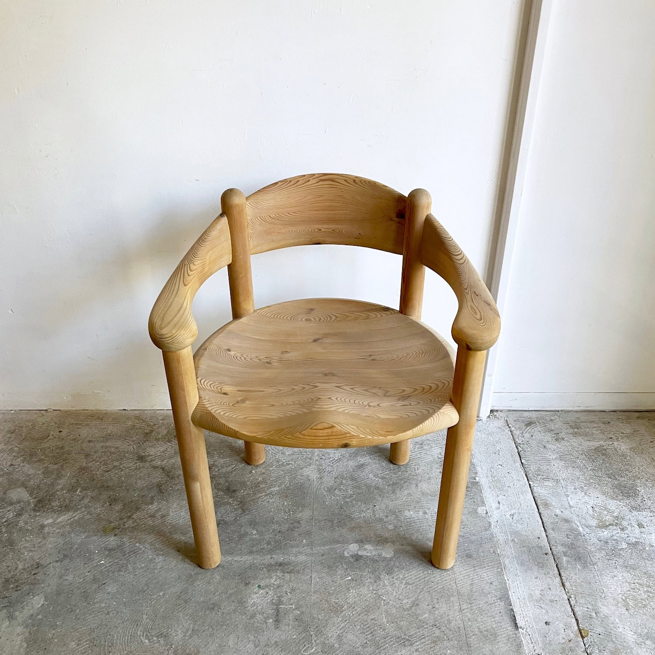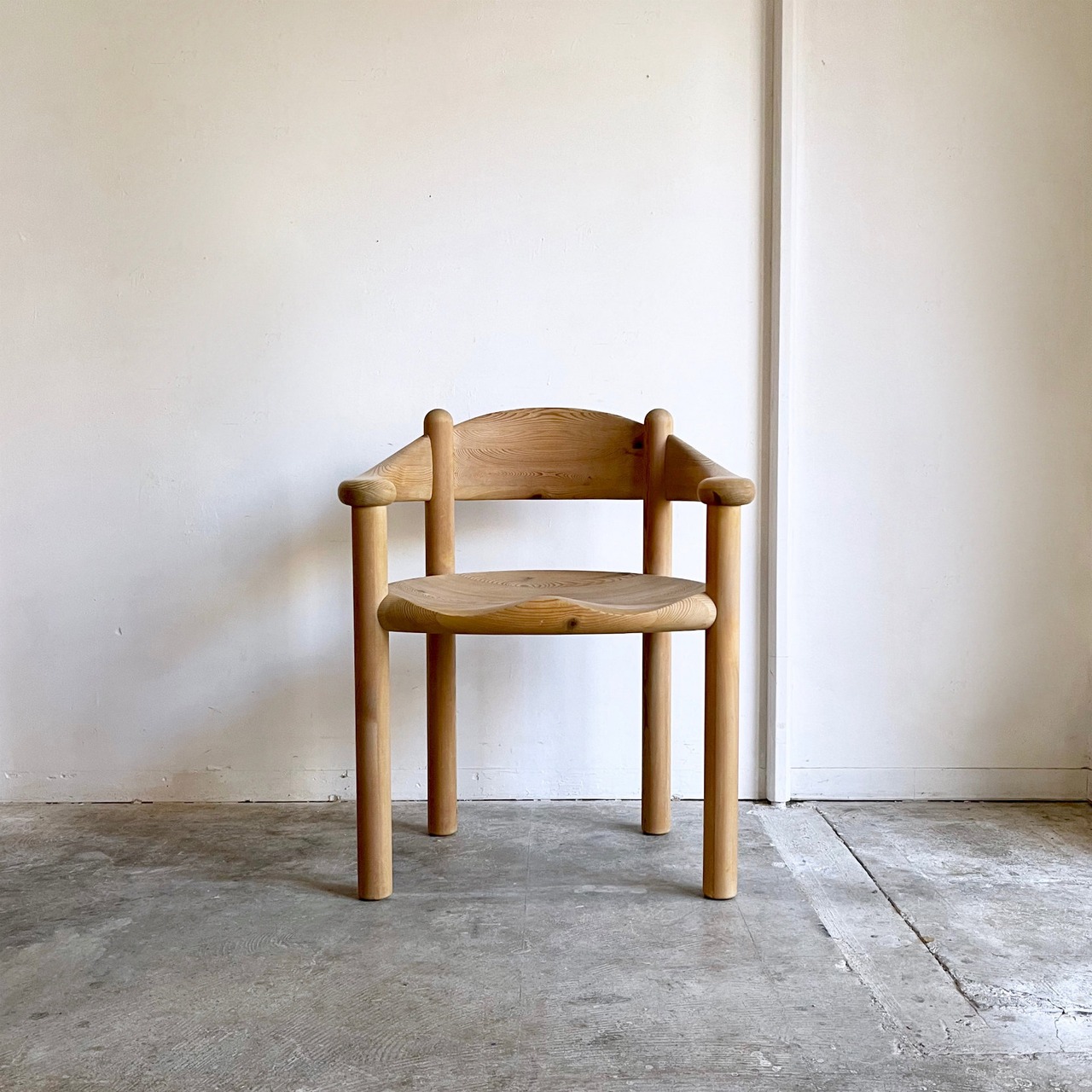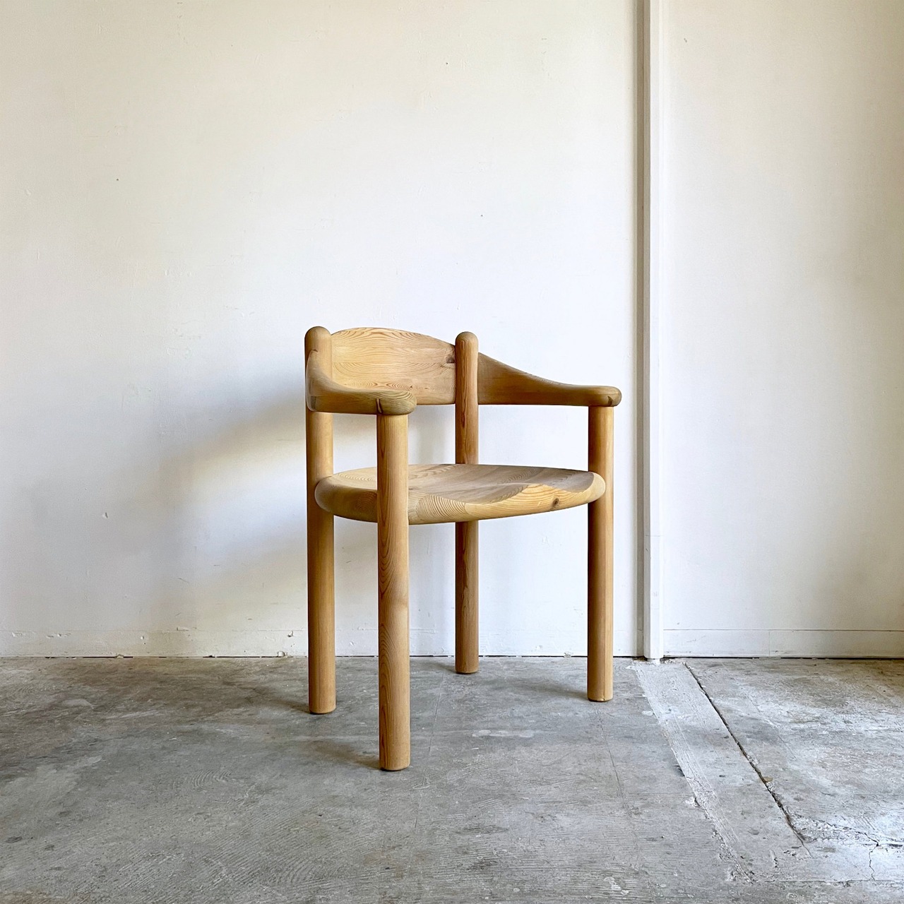 厚く丸みを帯びた柔らかなフォルムはパインウッドの温かみを直に感じられ、