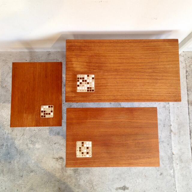 Teak Wood × Mosaic Tile Vintage Nest Table オランダ