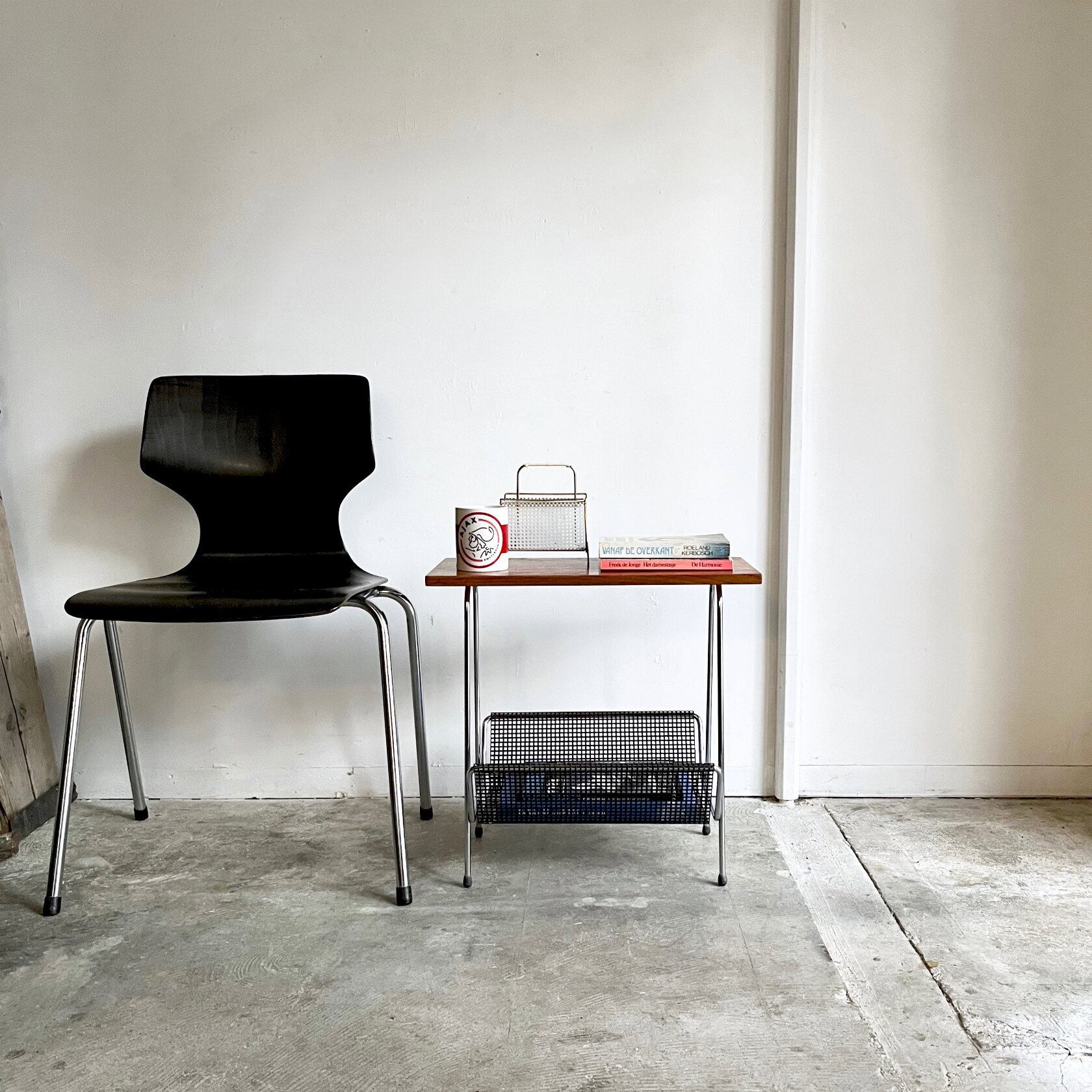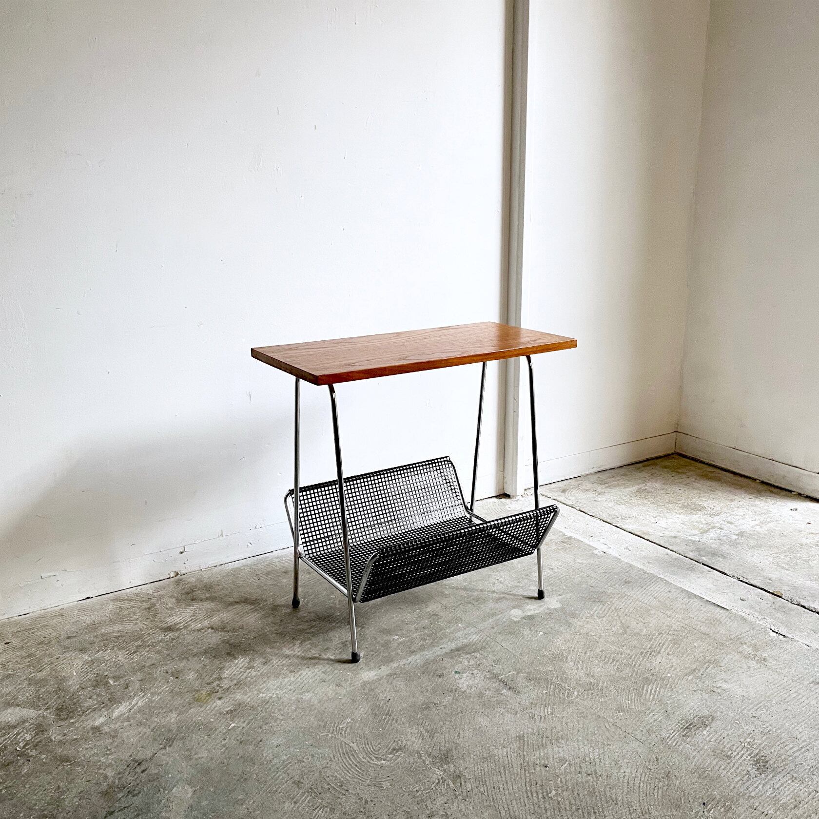Teak Top Side Table with Punching Metal Magazine Rack 1960's オランダ