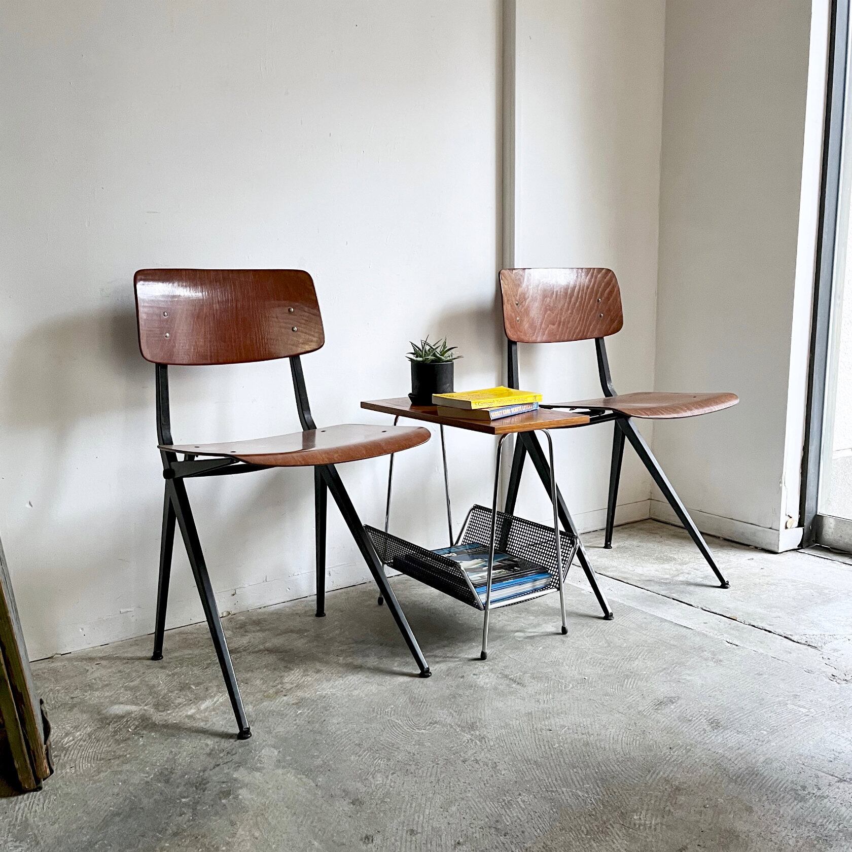 オランダで買い付けしたチーク天板のマガジンラック付きサイドテーブルです。