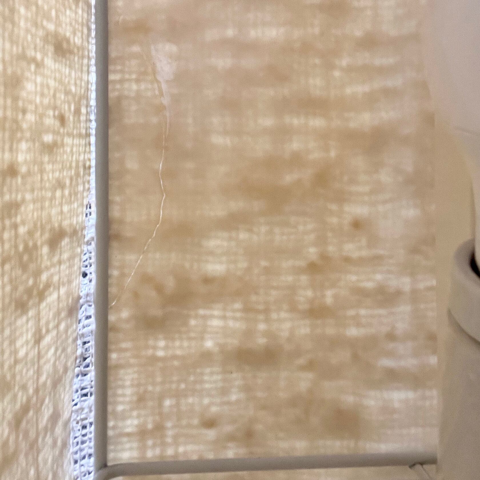 ファブリックシェード表面には経年のシミ、内側のプラスチックシートには部分的な割れ、補修跡等のダメージがございます。