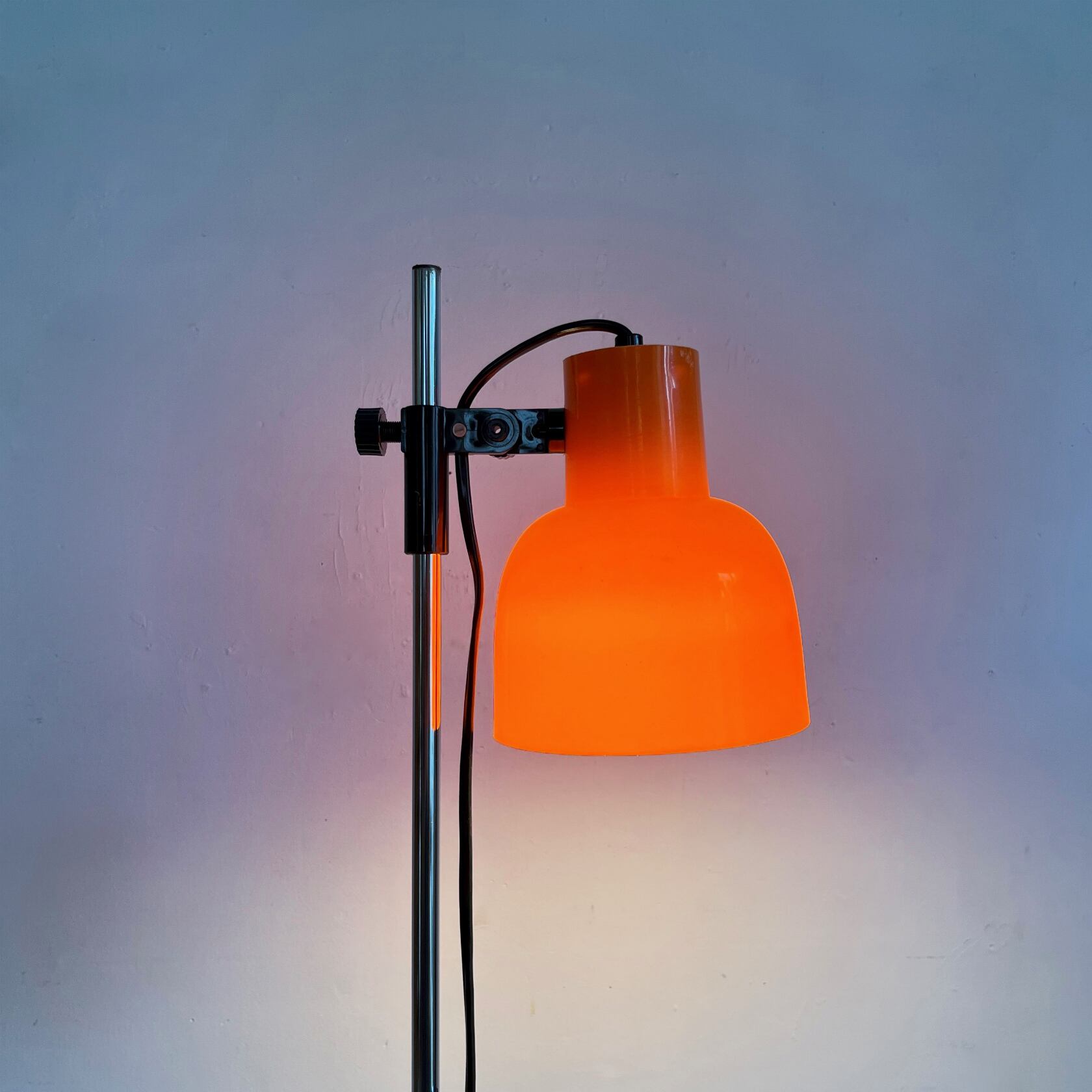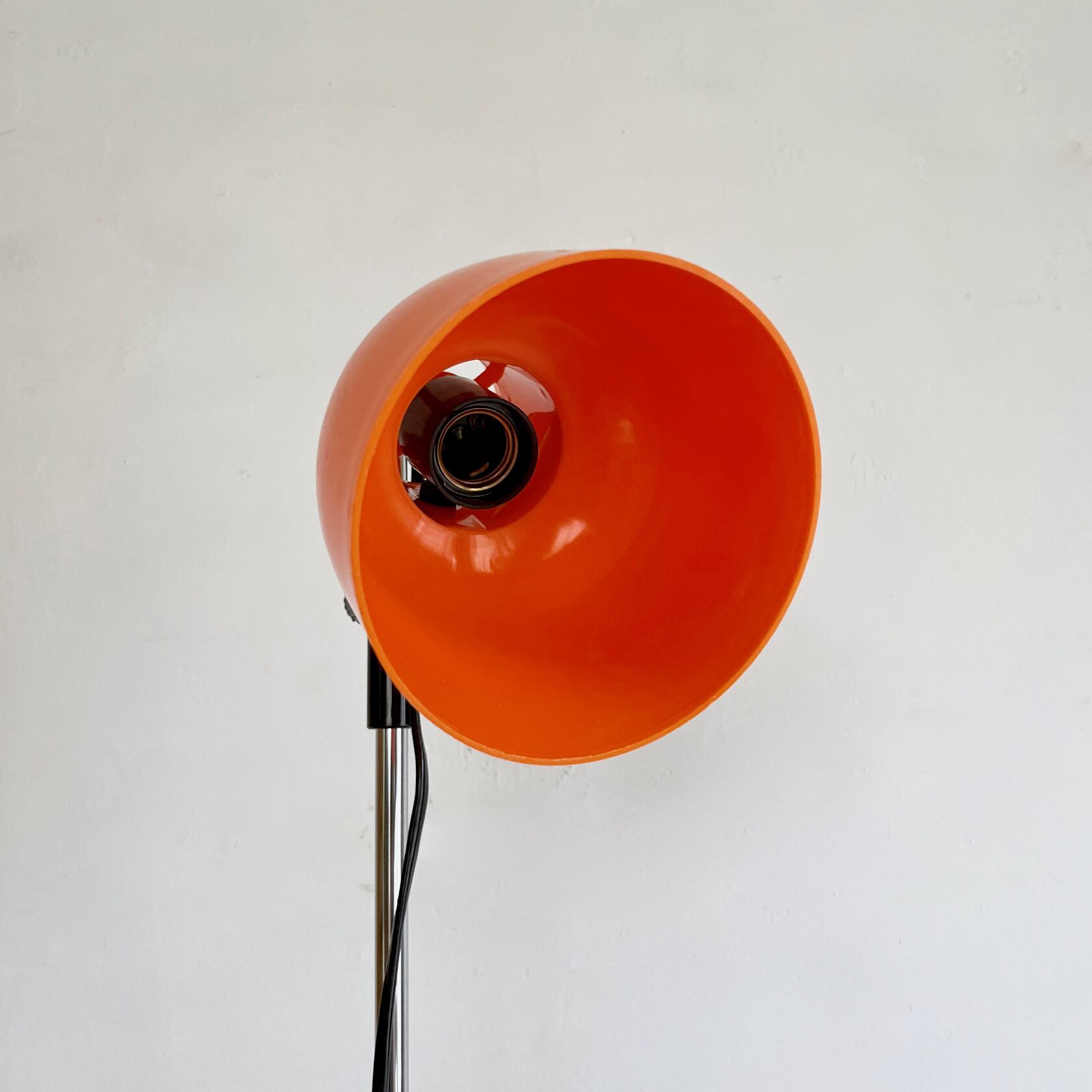 華奢なクロームの支柱に発色の良いオレンジのプラスチックシェード。